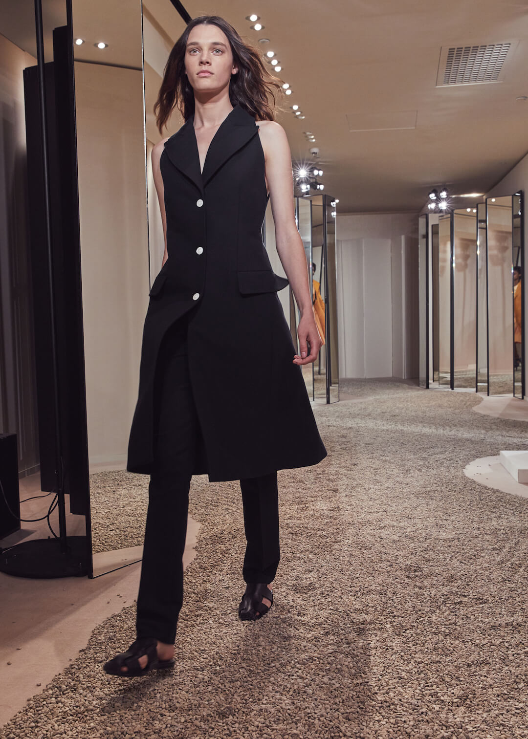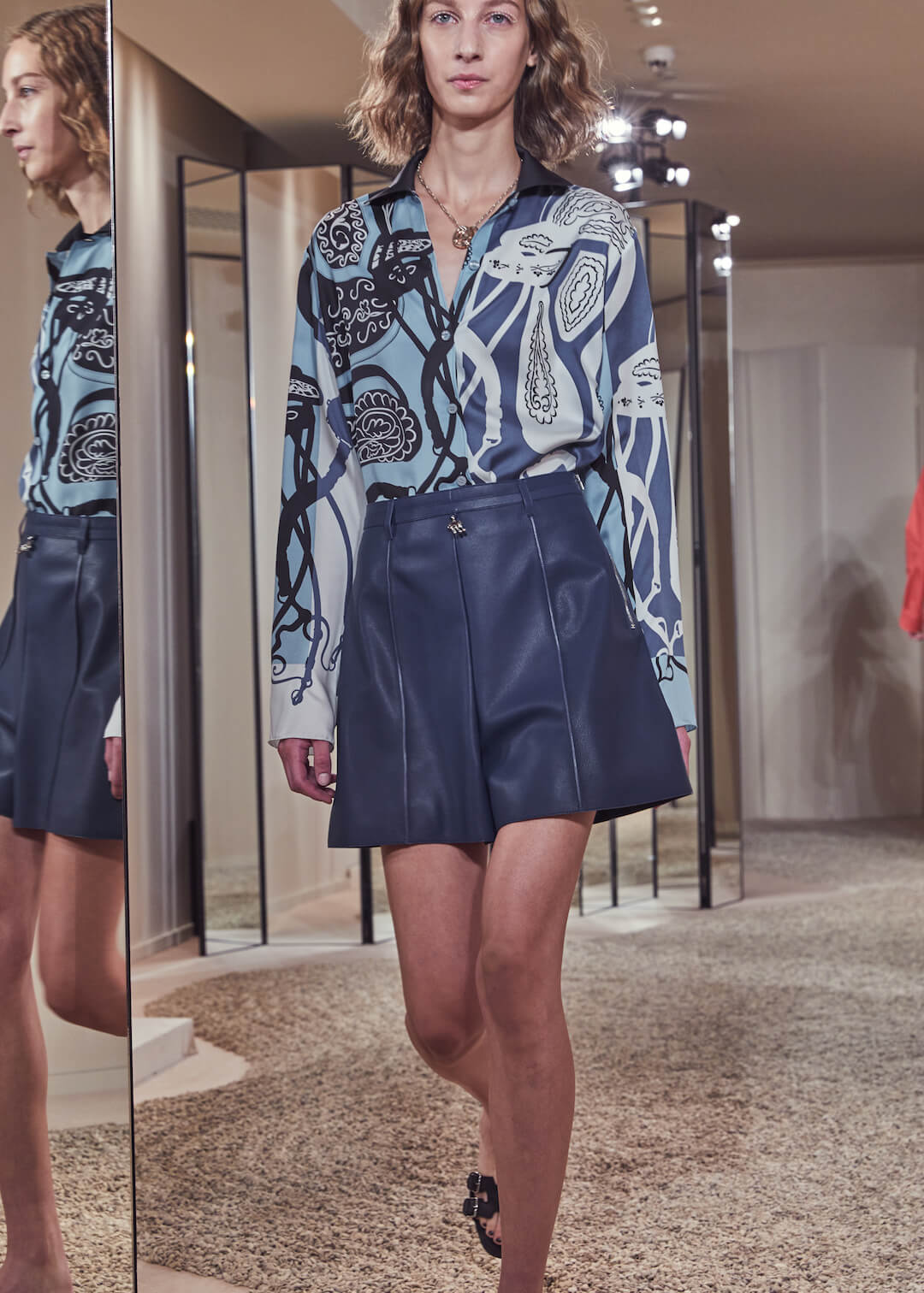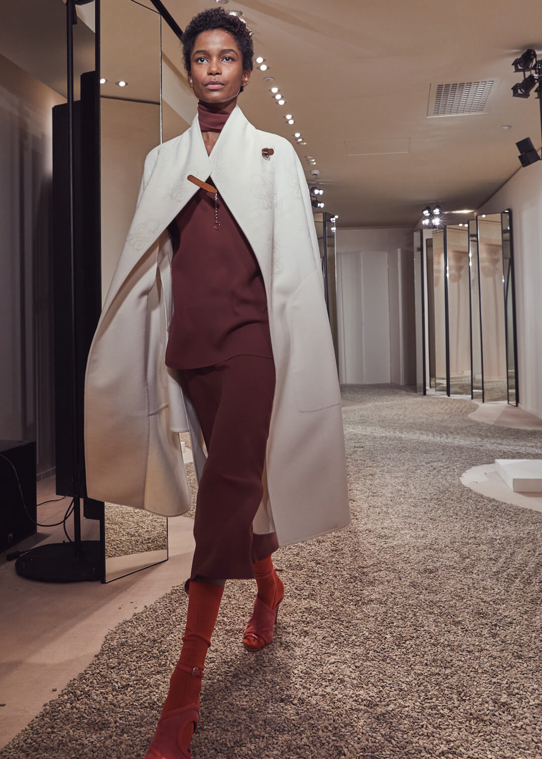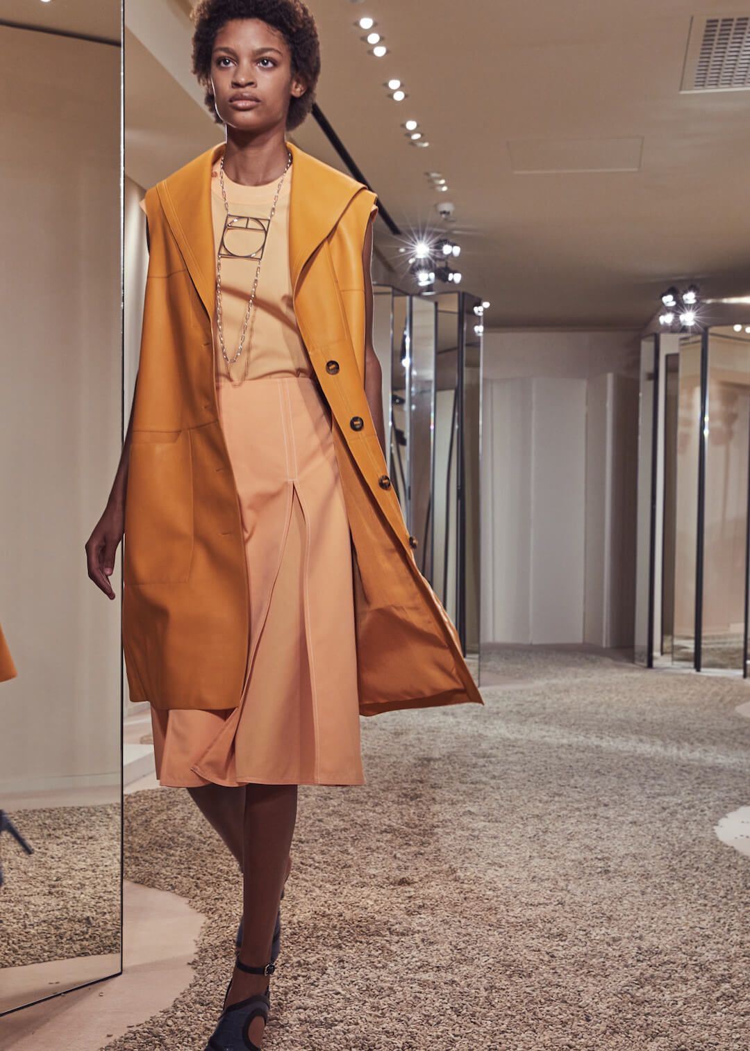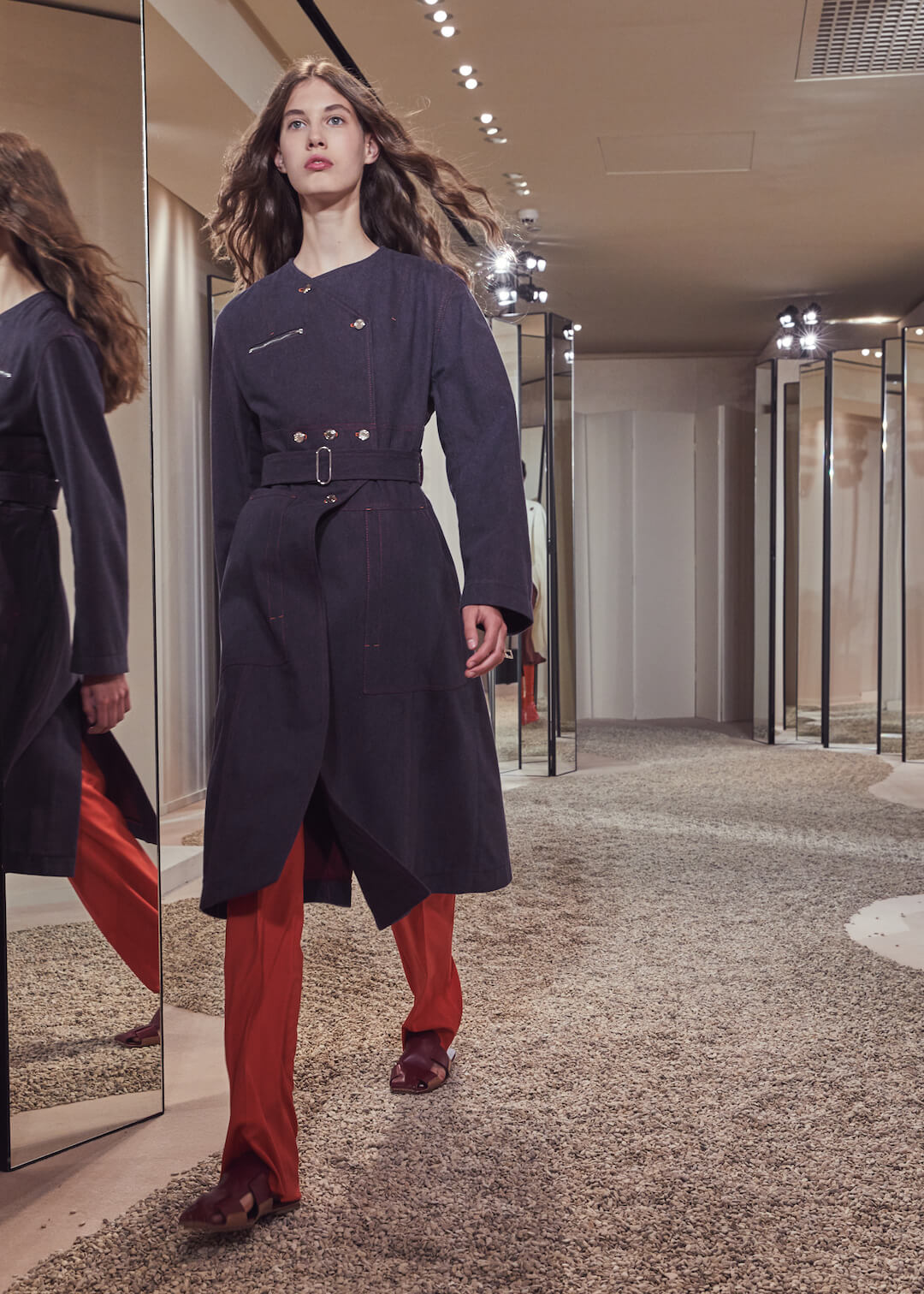 But what Nadège Vanhee-Cybulski is so adept at as Artistic Director (the first woman in the role) is taking the things that Hermès is known for – incredible leather, for one, those silk scarves, accessories – and refiguring the clothing that isn’t far from everyday life into something wholly, eye-wateringly luxurious. And it’s that mix that gives her womenswear an ease that is so appealing – to the casual viewer and the customer alike. The woman next to me was one of those – she’d flown in from Germany especially – circling away furiously at the looks she wanted to buy. And what better measure of a luxury house’s success than that? The will to buy buy buy? Nadège may not present clothes with fanfare – but she’s on to a very good thing.