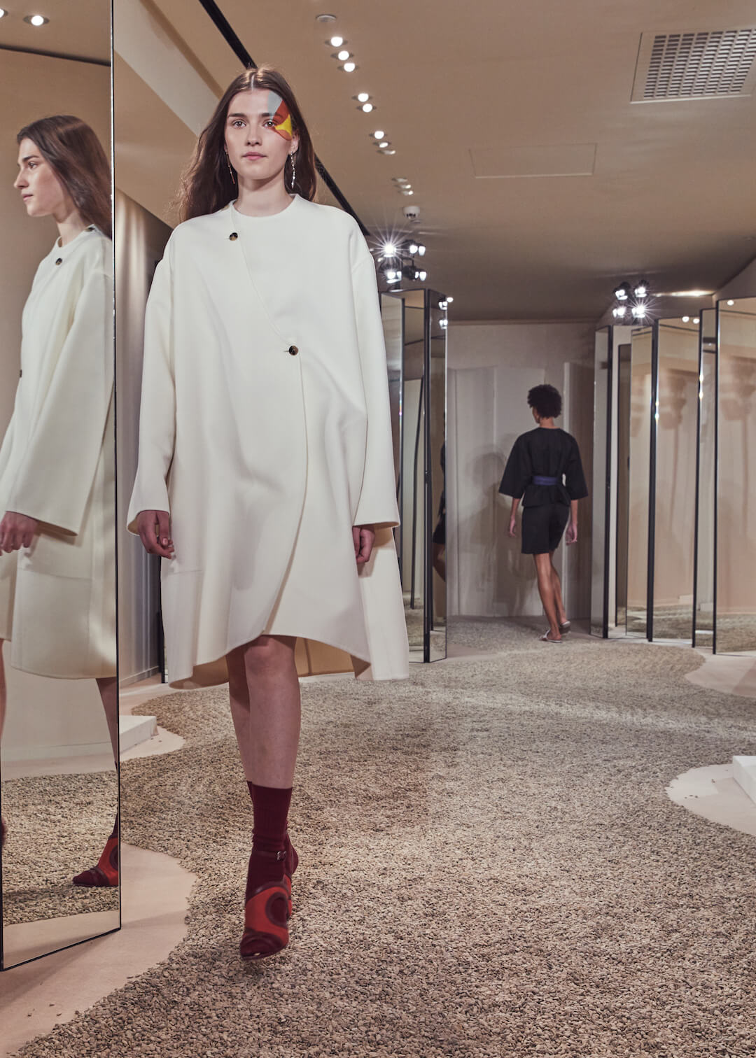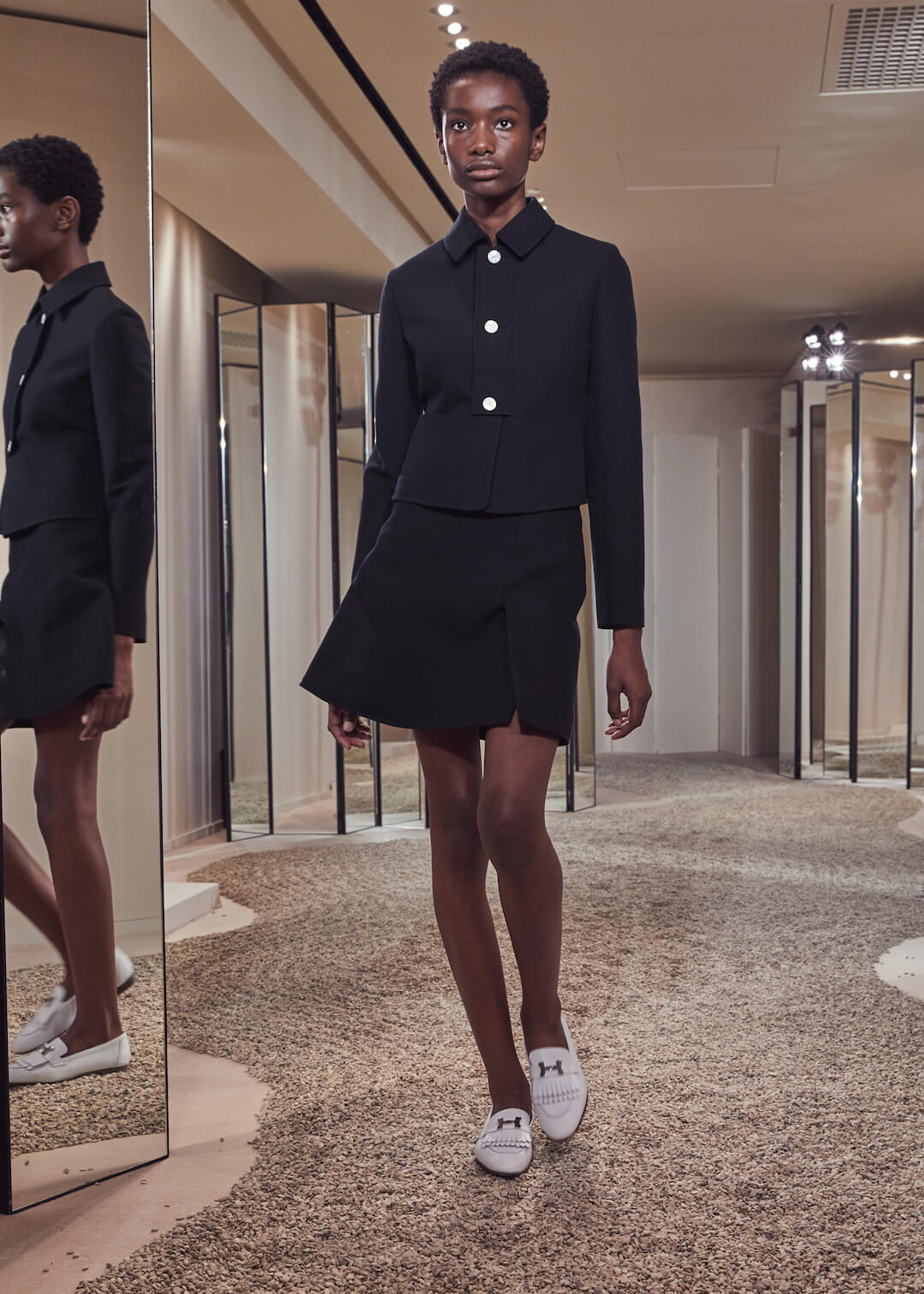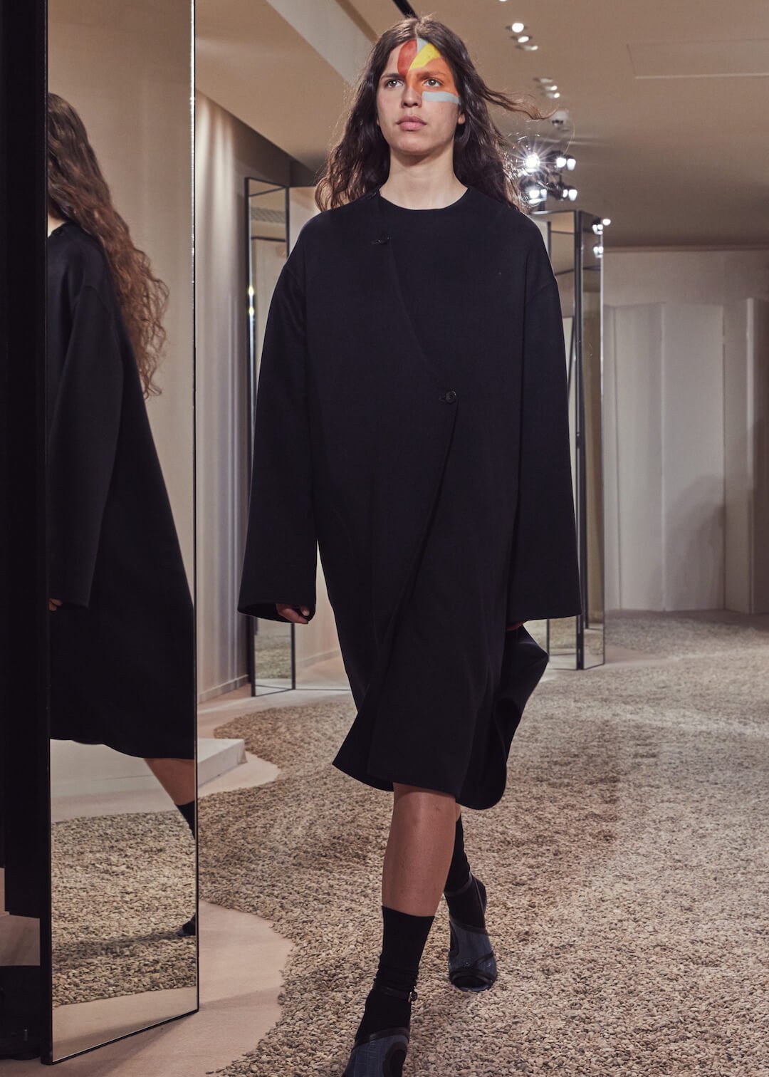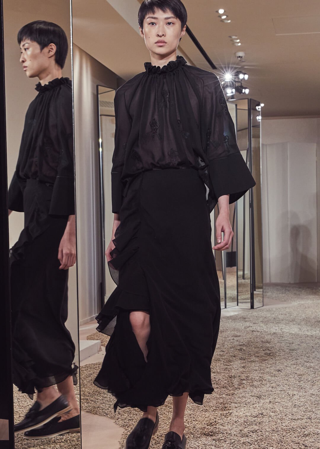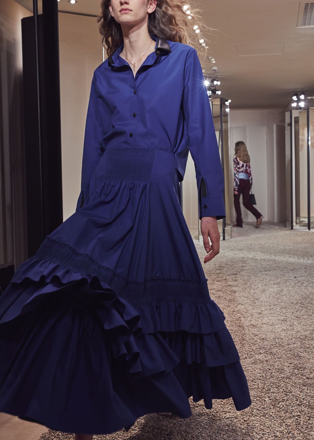 But what Nadège Vanhee-Cybulski is so adept at as Artistic Director (the first woman in the role) is taking the things that Hermès is known for – incredible leather, for one, those silk scarves, accessories – and refiguring the clothing that isn’t far from everyday life into something wholly, eye-wateringly luxurious. And it’s that mix that gives her womenswear an ease that is so appealing – to the casual viewer and the customer alike. The woman next to me was one of those – she’d flown in from Germany especially – circling away furiously at the looks she wanted to buy. And what better measure of a luxury house’s success than that? The will to buy buy buy? Nadège may not present clothes with fanfare – but she’s on to a very good thing.