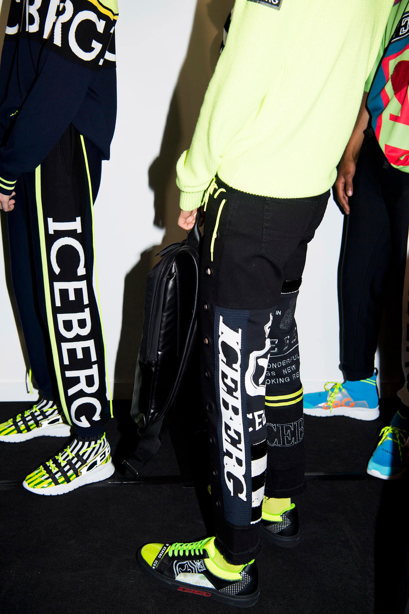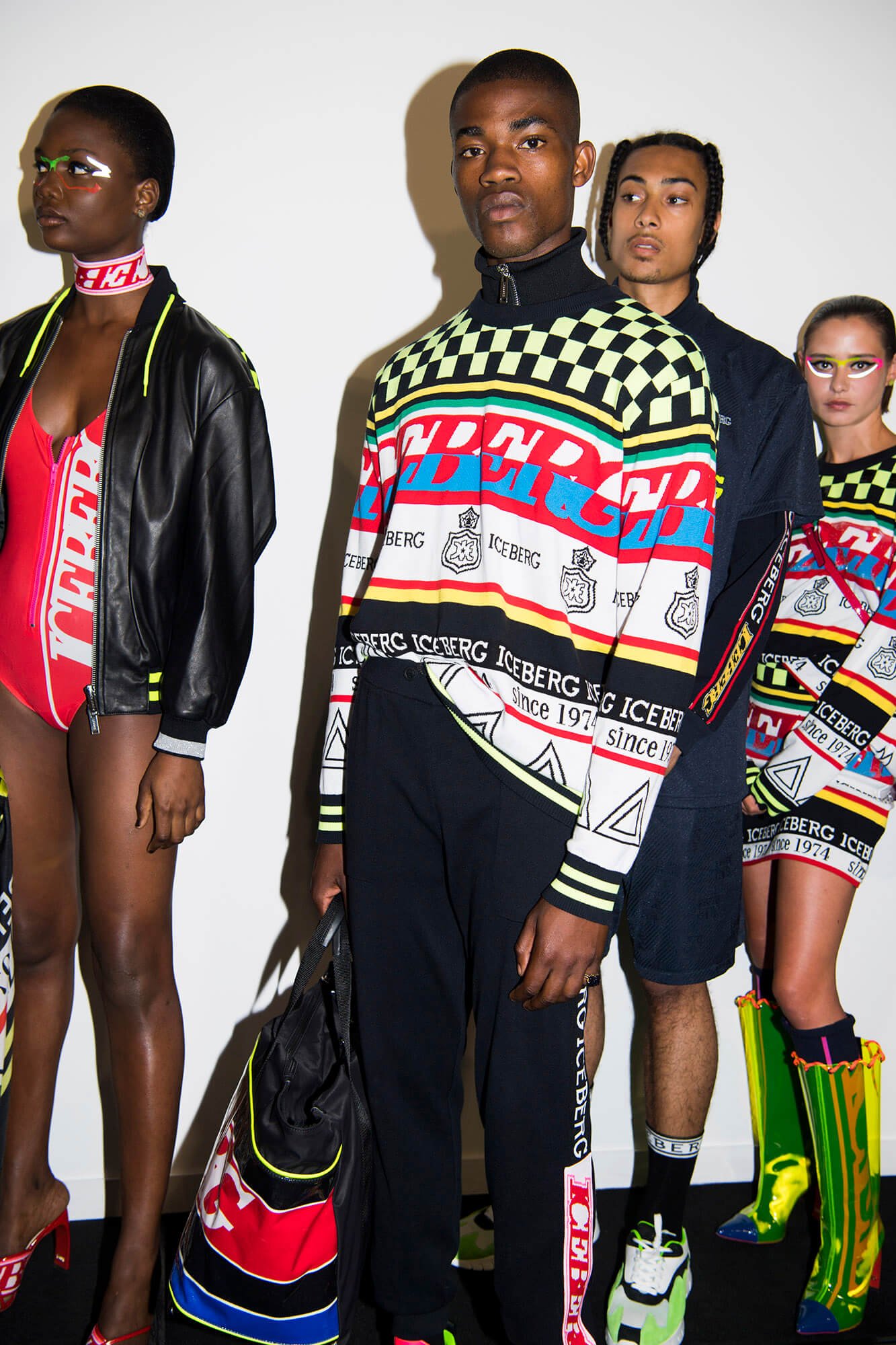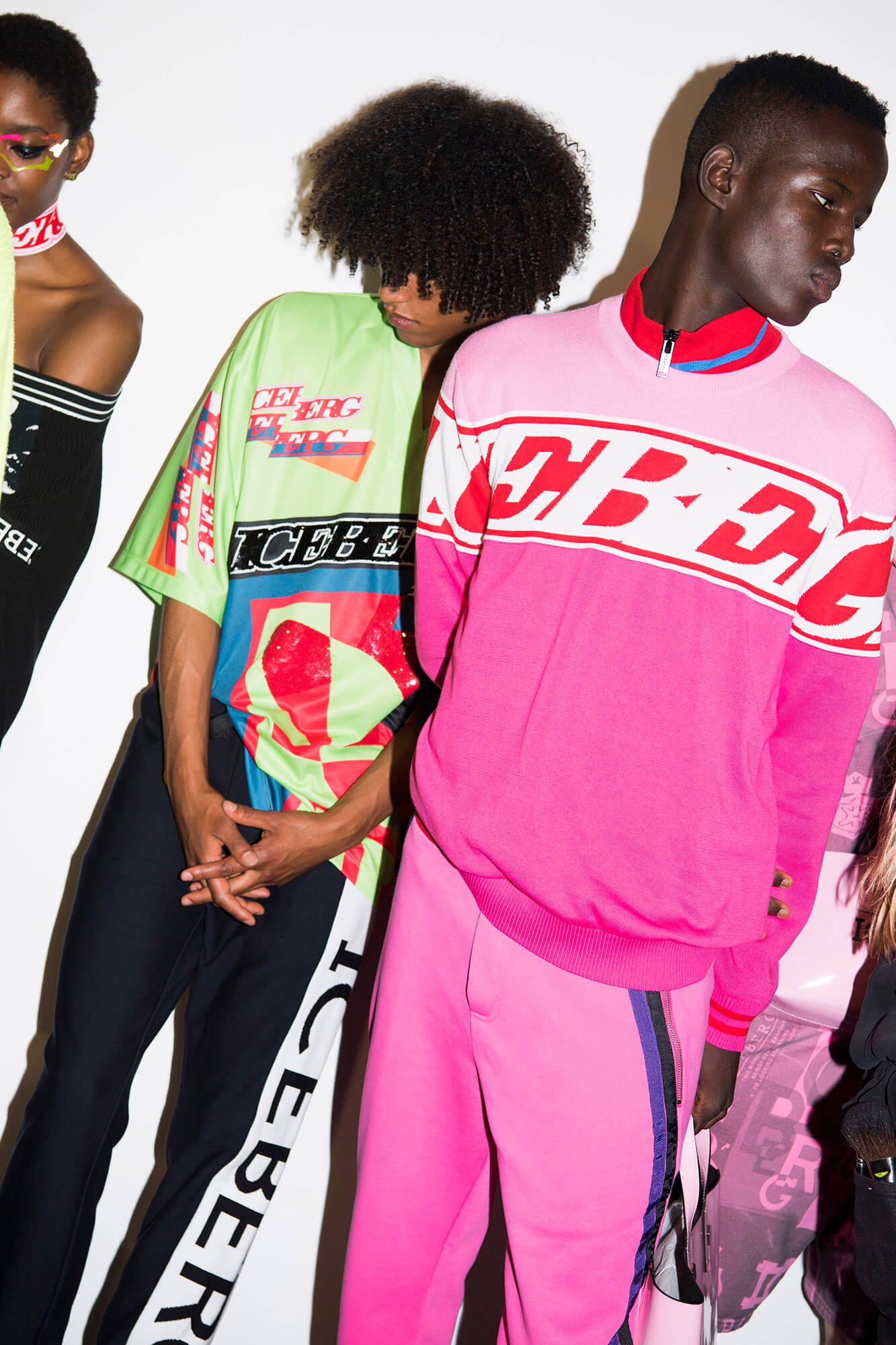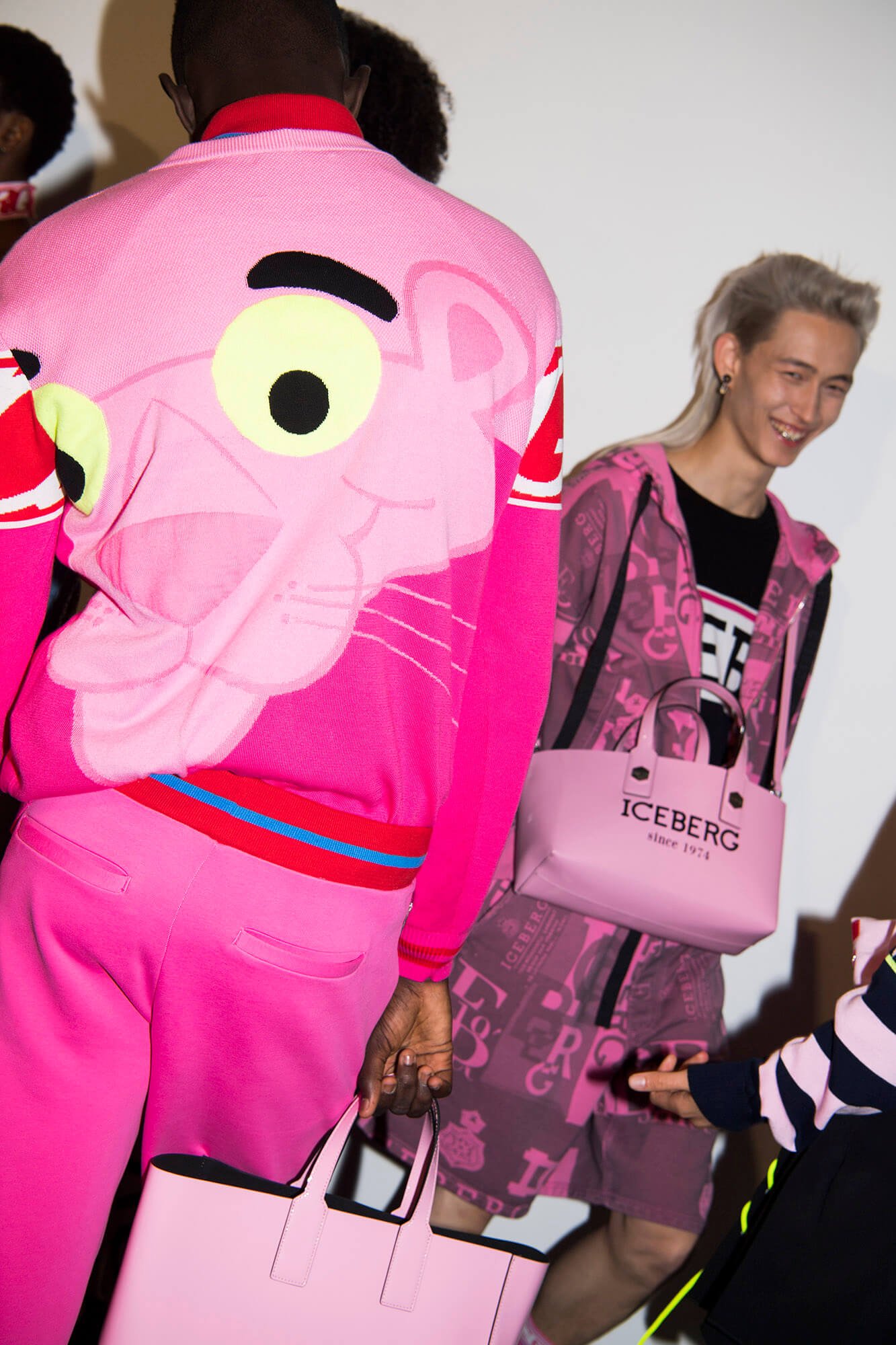 Ice(berg) Ice(berg) baby. Yes, it was cold in here, there was obvs some Iceberg in the atmosphere. Cooler than cool. Ice cold. Now that we’ve got all that out of the way, let’s focus on the important things: the clothes at Iceberg’s Spring/ Summer 2019 show that just kicked off London Fashion Week Men’s as Creative Director James Long brought the Italian label to his hometown for the first time. Iceberg feels good in London, in all its luxe streetwear sportiness that would also be right at home in a club. It began with Lil’ Kim and Mr Cheeks ‘The Jump Off’ and the vibe was confirmed. Iceberg was slashed across the front of matching tracksuit sets, fulfilling all our early 2000s That’s Hot vibes. The Pink Panther was on the prowl and Snoopy and Charlie Brown were floating down cartoon strips on swim shorts that felt right on such a vividly good collection. Iceberg’s sponsorship of the US Grand Prix back in the ‘90s was revived here, the Iceberg print used back then on podiums now reworked here in a new element. These ladies and gentlemen had the need for speed, further powered forward in what they’re calling sports drink colours. Yes, give us all the energy. It was all in the knits, duh, which were technical, woven, light and bright. It’s Spring Summer babes. Girls were partying it up in crops and mini skirt sets, elevated in multicoloured perspex heels. Lewks on lewks. Denim was crystallised and glimmering and ripped. A melting pot of everything we want right now. Iced out. Let the games begin.