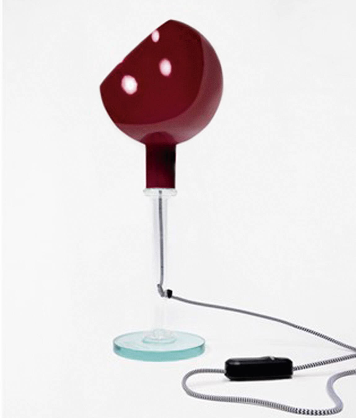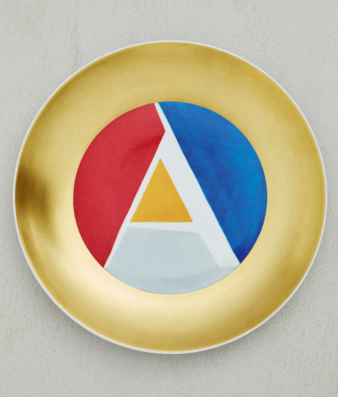 From left: Parola lamp by Gae Aulenti and Piero Castiglioni for FontanaArte, reissued in Ancora red by Gucci; ceramic plate from the Saint Laurent by Rive Droite collaboration with the Gio Ponti Archives and the Fundación Anala y Armando