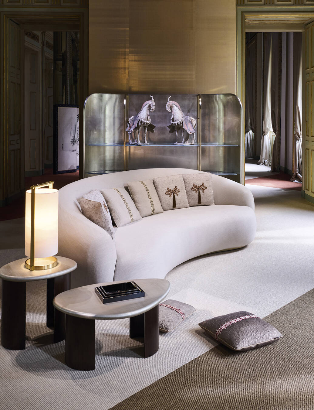 Onto another heavyweight, Versace, which staged its Versace Home collection reveal in Palazzo Versace on Via Gesù. Versace die-hards will know it was these hallowed halls where Gianni staged the 1991 runway show that gave birth to the supermodel; apt, then, that Donatella called this collection If These Walls Could Talk. The classic Versace emblems the Medusa, Barocco and Greca were lavished throughout, while an accompanying audio experience, created in collab with the online station Radio Raheem, explained the meaning of everything as we walked around each room. We may or may not have pretended to be Cindy, Linda, Naomi, Christy et al.