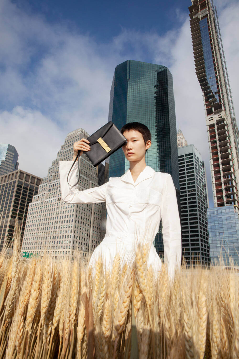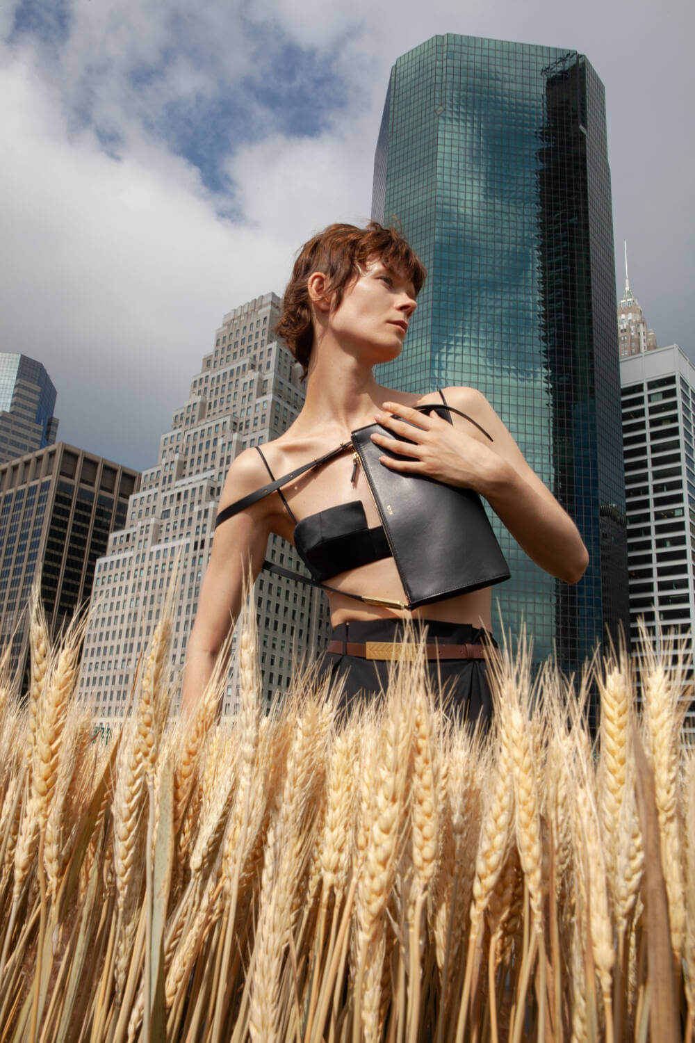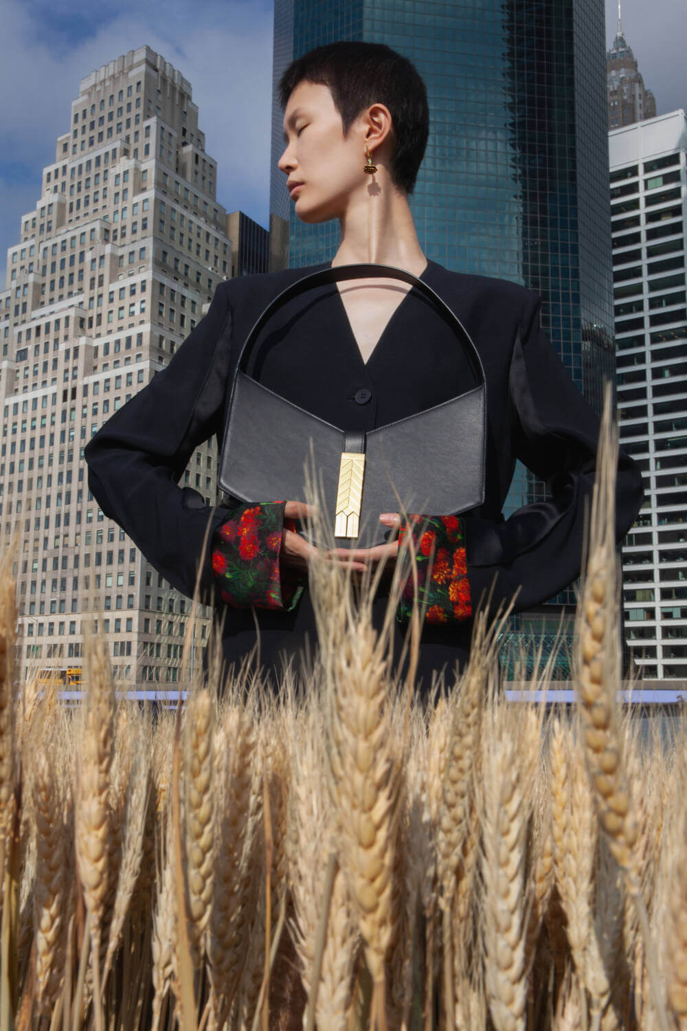 With every uber-chic collection, Bevza continues to implement fresh takes on its Spikelet design. Just yesterday, it released its SS24 bag collection, applying gold Spikelet hardware to five new styles; the Grain Bag, Baguette Clutch, Spikelet Flat Bag, Large Tote and Spikelet Clutch, which have arrived in lush Dusty Ivory or Black leather colourways. “Ukrainian [symbolism] or any other cultural symbolism should appear modern,” the creative director says, and these sculptural bags most certainly do. For the campaign, Bevza channelled Agnes Denes’ iconic 1982 artwork “Wheatfield – A Confrontation” which displays a two-acre wheatfield grown on an empty landfill next to the World Trade Center.
