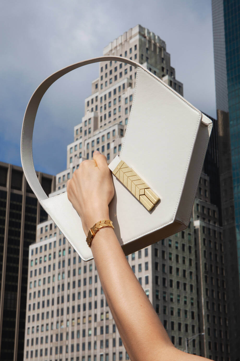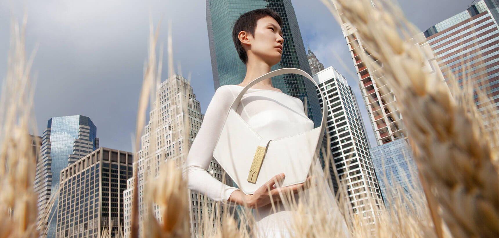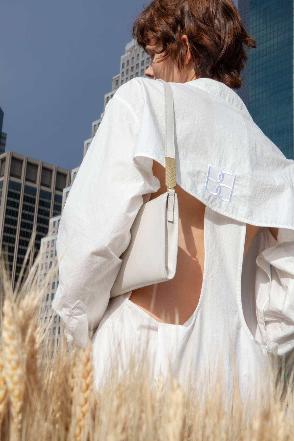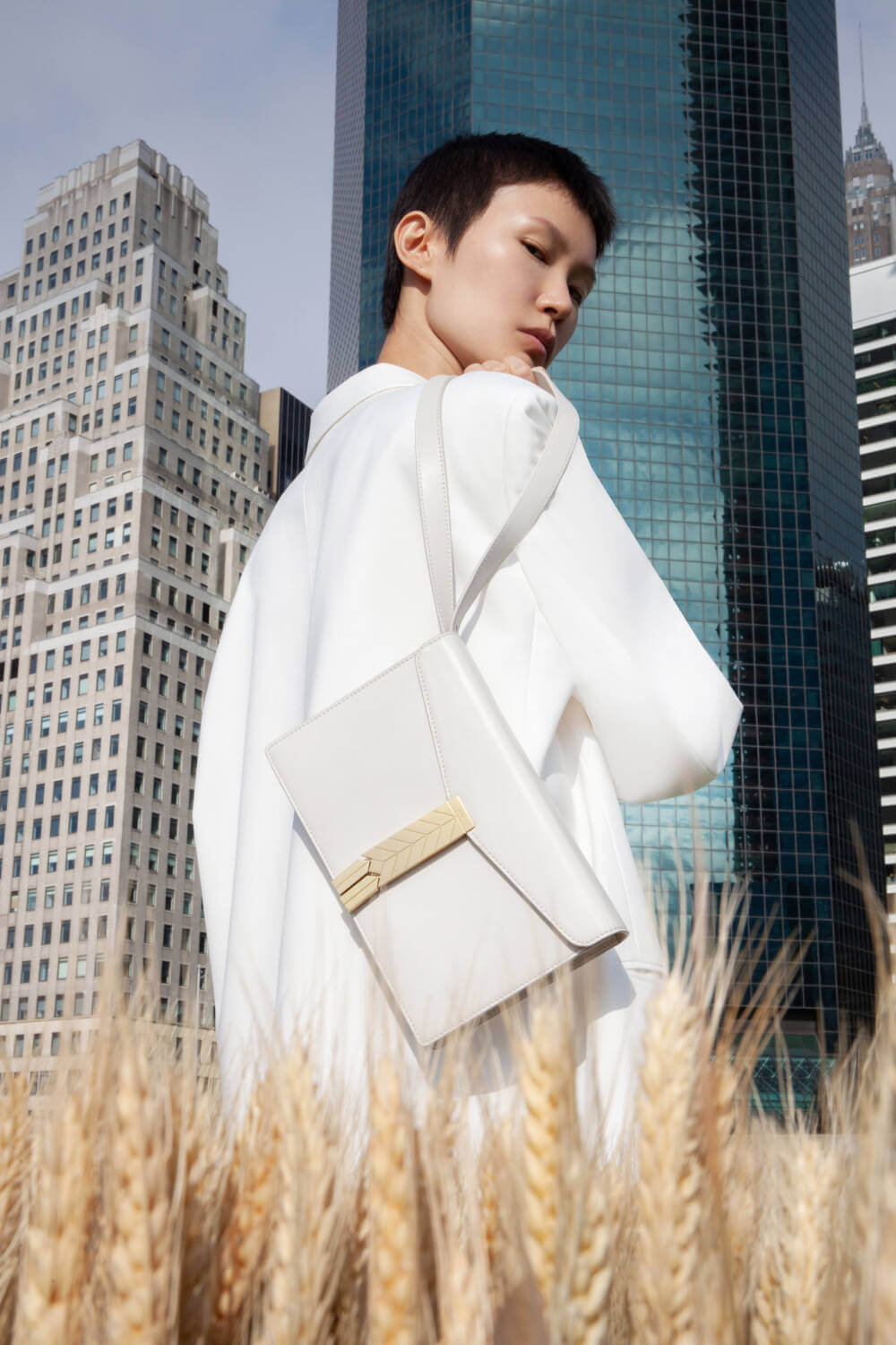 With every uber-chic collection, Bevza continues to implement fresh takes on its Spikelet design. Just yesterday, it released its SS24 bag collection, applying gold Spikelet hardware to five new styles; the Grain Bag, Baguette Clutch, Spikelet Flat Bag, Large Tote and Spikelet Clutch, which have arrived in lush Dusty Ivory or Black leather colourways. “Ukrainian [symbolism] or any other cultural symbolism should appear modern,” the creative director says, and these sculptural bags most certainly do. For the campaign, Bevza channelled Agnes Denes’ iconic 1982 artwork “Wheatfield – A Confrontation” which displays a two-acre wheatfield grown on an empty landfill next to the World Trade Center.