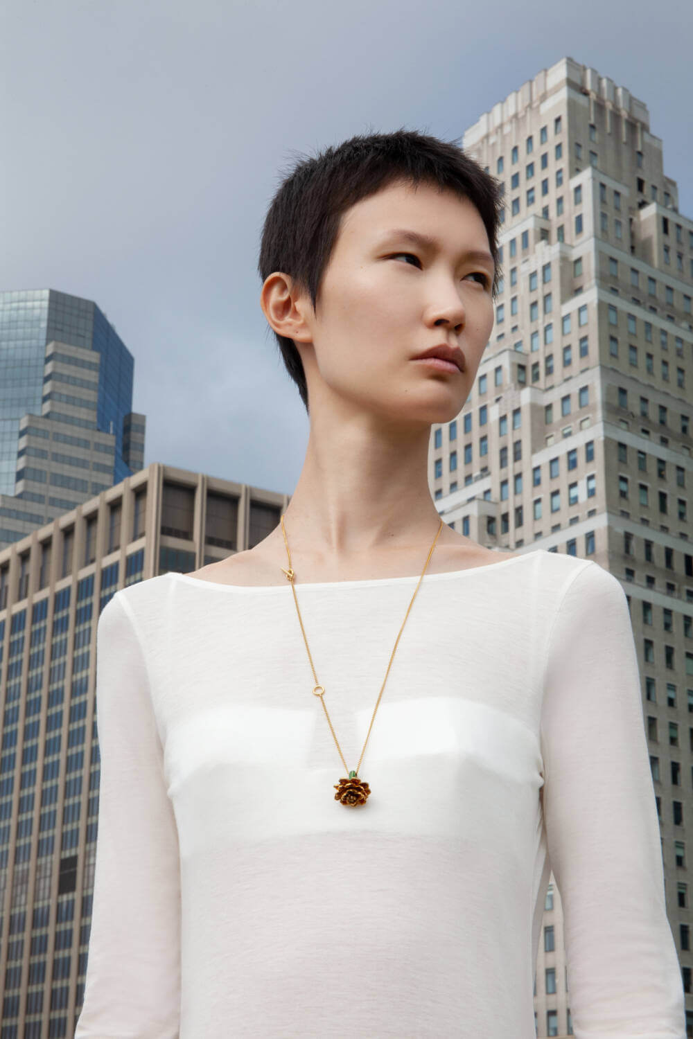 As part of its SS24 collection, Bevza featured Marigolds (or ‘Chornobryvets’ in Ukrainian), a vibrant and colourful flower that’s long been a symbol of optimism and revival in Ukrainian culture, adored by writers, poets and people alike. “Personally, I strongly associate marigolds with home. These were my grandfather’s favourite flowers and he contributed a lot to my upbringing as a Ukrainian. He once gave me some seeds, and I was growing the flowers in my Kyiv apartment for 13 years straight,” she reminisces. “Unfortunately, I can’t come back to that apartment now, on account of the war, but I wanted the marigolds to bloom somewhere else.” So, the ingenious designer skillfully incorporated the look of marigold flowers, via a vibrant red and orange marigold print, into both the clothing and the jewellery of the range and beauty bloomed.