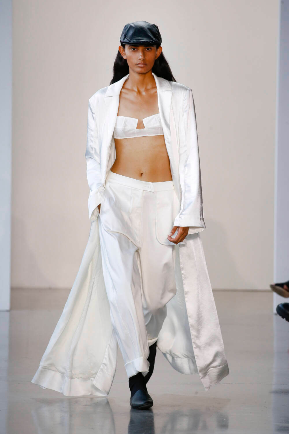 With a focussed approach to cut, tailoring and Ukrainian craftsmanship Bevza describes her practice as the “nature of intuition”. “I do what I like,” she declares. “When it comes to tailoring and designing, I make my decisions intuitively. I’ve noticed that if I do it that way, it is more demanding.” Drawn to architectural silhouettes and lines because “they show character’ according to the designer, Bevza’s skirts, shirts, vests and trousers are usually carefully pleated in place. “But I also add a touch of sensuality to my designs,” she adds, “[because] a woman is a complex being, a complex creation; she consists of multiple facets.”