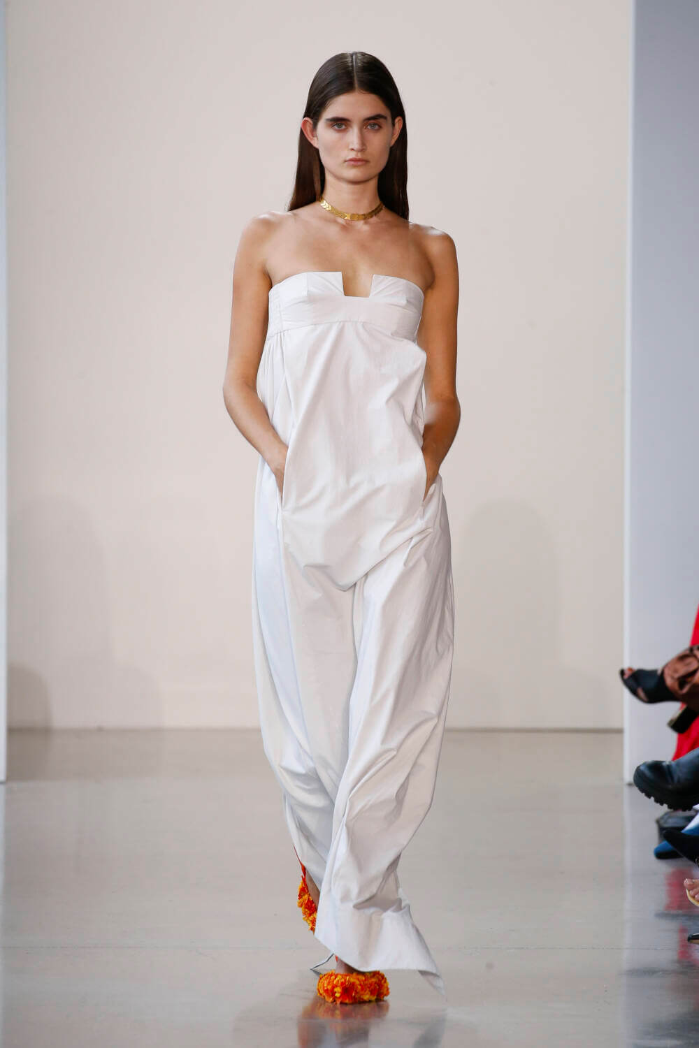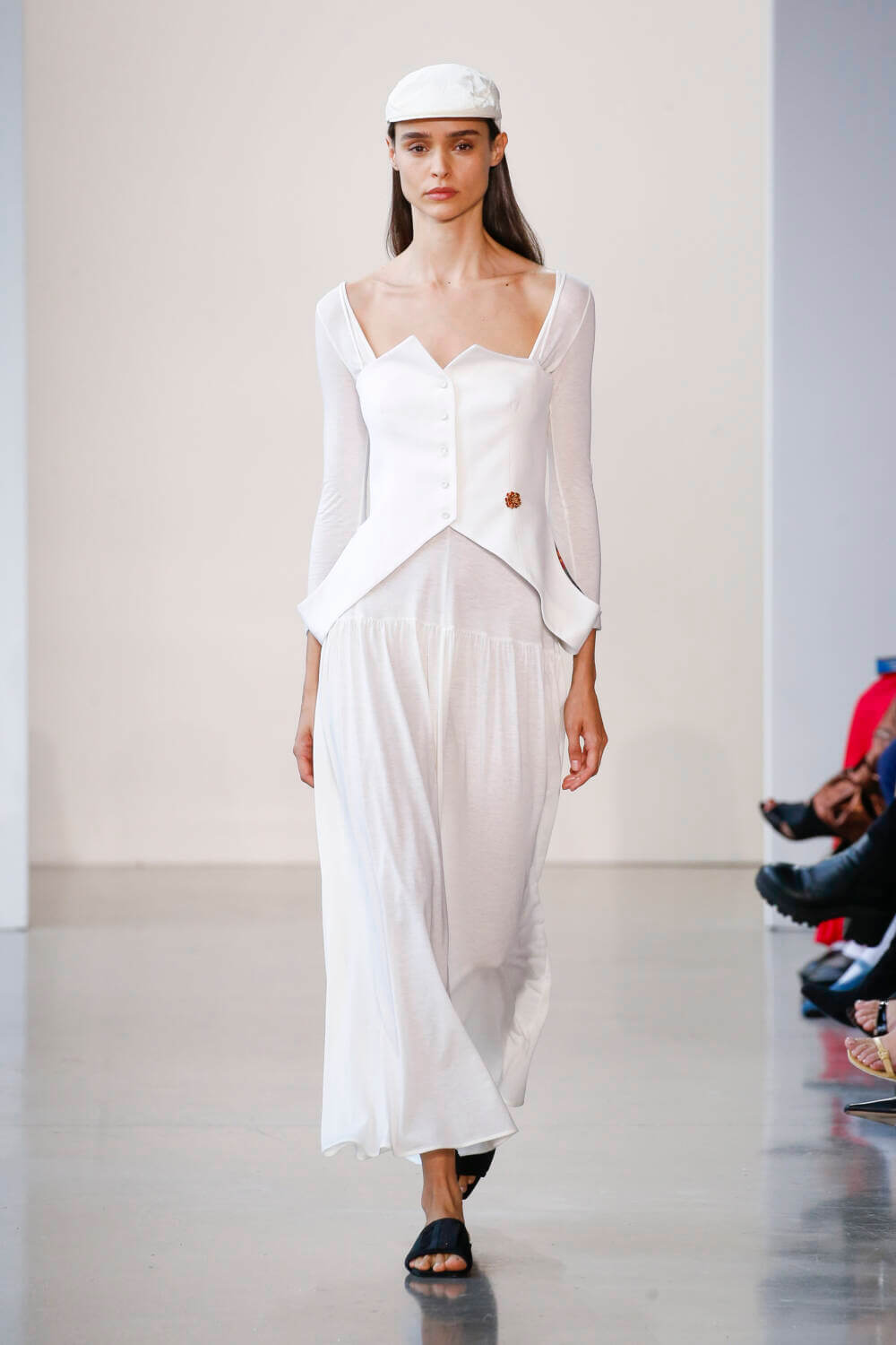 Since its start, the sophisticated label has showcased a vast versatility of its designs, combining elements of traditional Ukrainian dress with modern ideas and simple, blank-canvas creations (Bevza is known for playing into the precise edge of white) to create a completely unique brand identity. Even before the war, Bevza was built on the national symbols that its founder holds close to her heart. “These [symbolic] ideas came to me quite genuinely. But I had to walk a fine line, in order to not turn the brand into a replica of Ukraine’s national attire,” she shares, referring in particular to the Spikelet accessories, inspired by Ukrainian culture, that she creates. “[I follow a] minimalist foundation, on which I apply the important messages that I want to convey to my audience. As a designer, I believe that it’s necessary to form your visual style naturally. It should not come from a place of being similar to someone or something else. Actually, delivering your own stylistic message is a responsibility.”