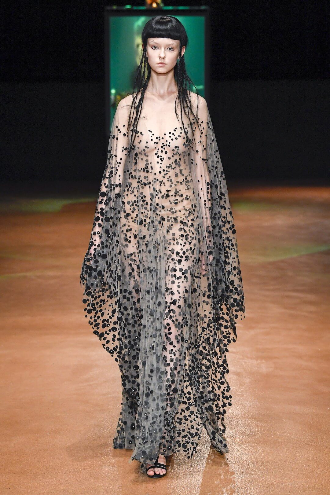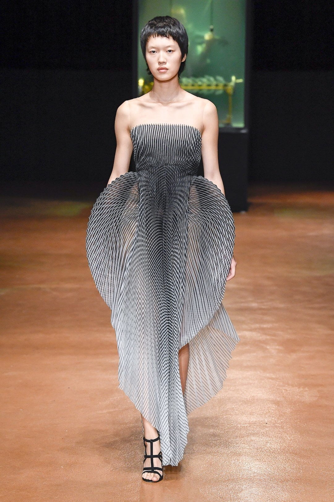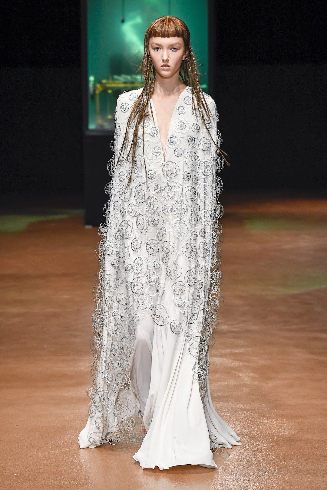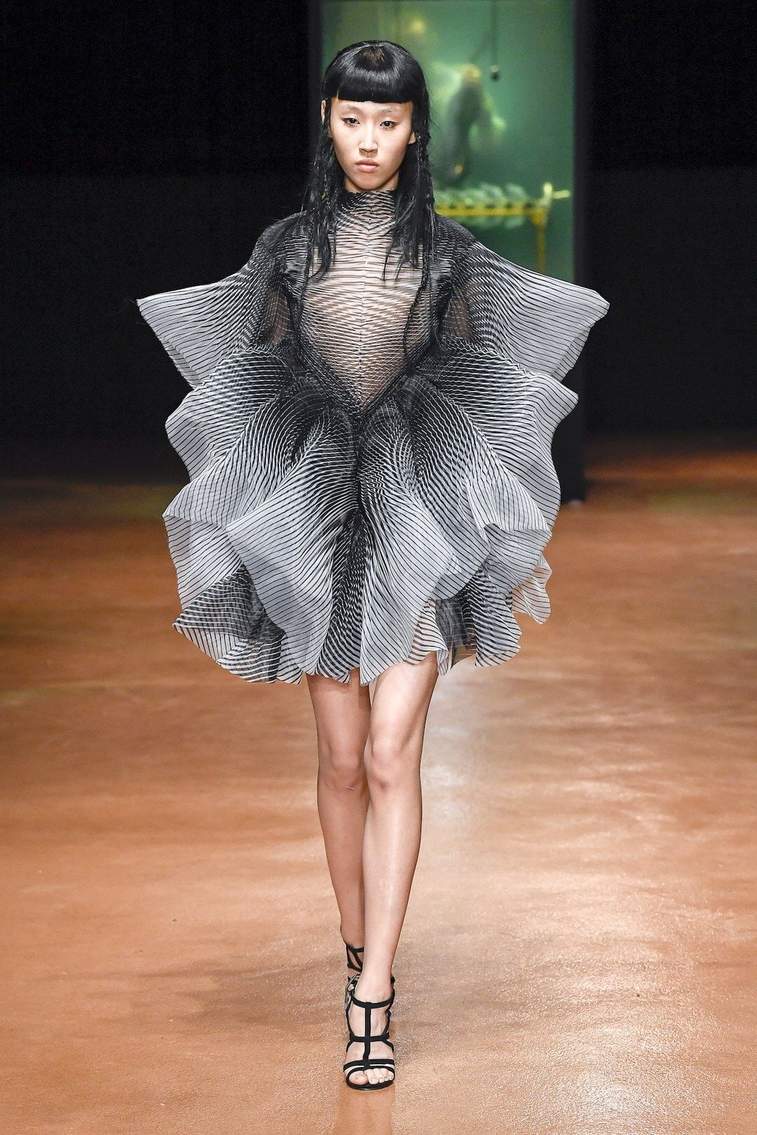 There’s never a dull moment with Iris is there? Let’s start with the basics: this collection was called Aeriform, which has something to do with air and water that we don’t entirely understand. We’ll take her word for it. On the catwalk there were tanks. Tanks filled with water, and in that water, a submerged person. That submerged person was playing an instrument. All very David Blaine. Iris said she chose the Danish artists, Beyond Music, because she was fascinated by the way they created noise in a space where there was no air.