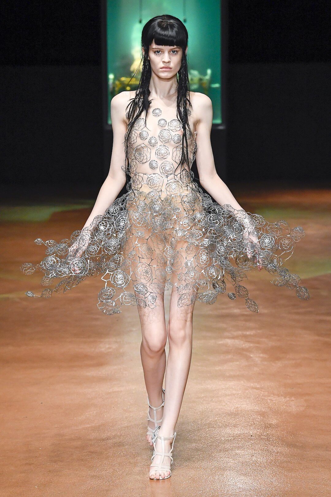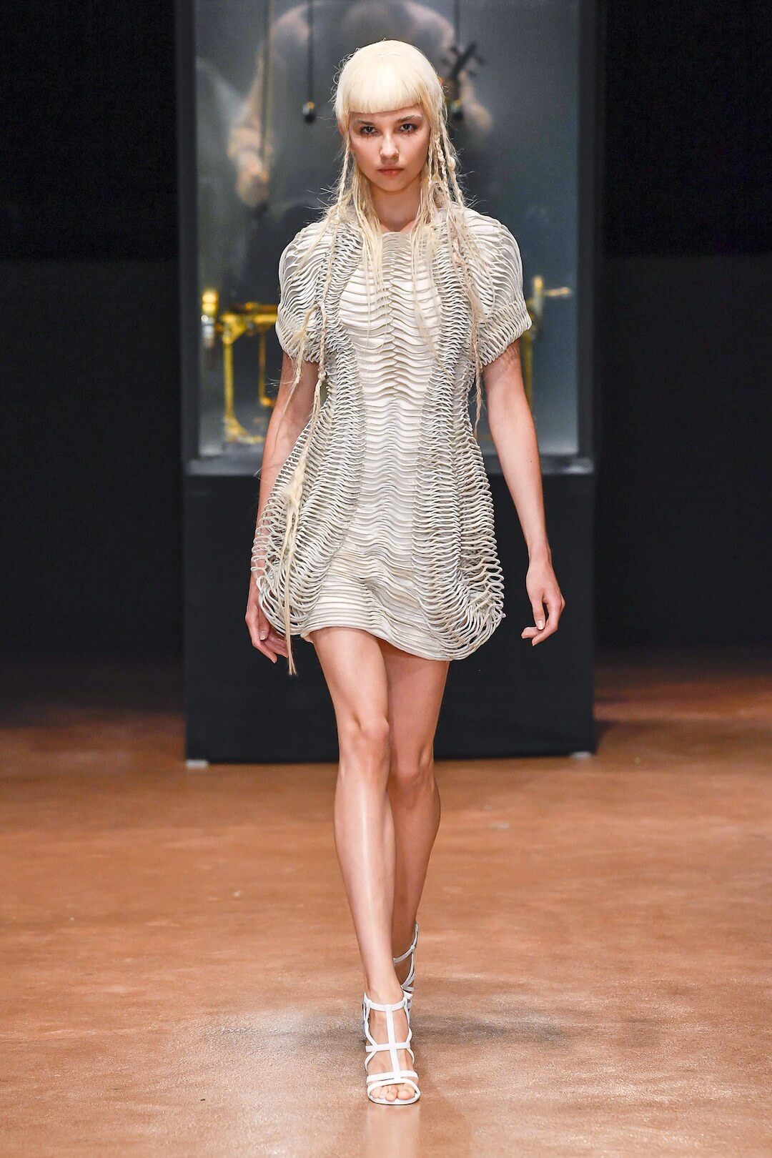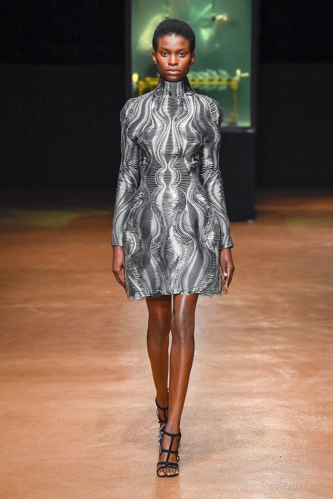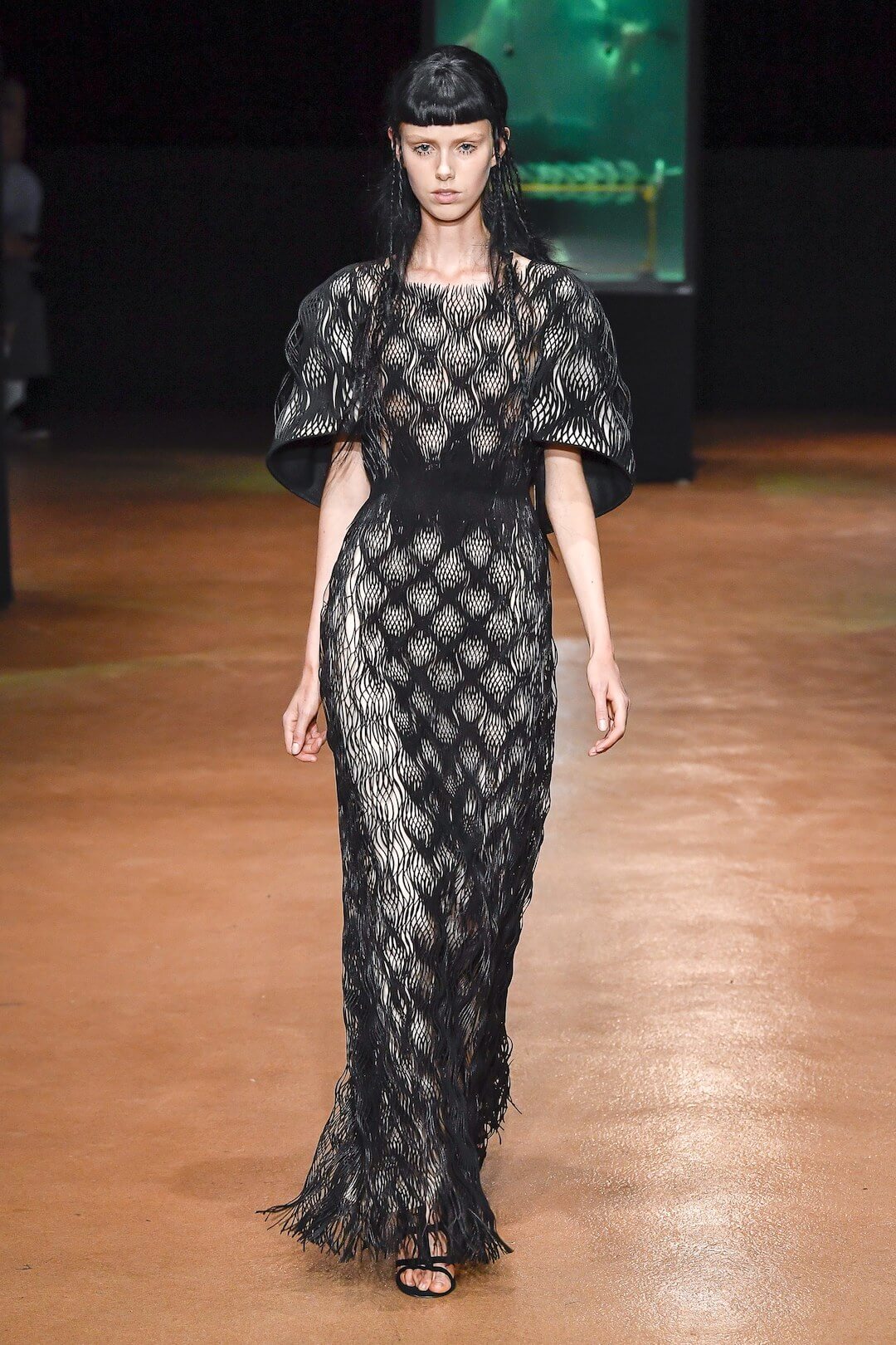 We’re not usually lost for words, but it really was quite breathtaking. Clothes themselves were typically fascinated with the intersection of fashion, sculpture and technology – here looking at that through the filter of air and water – rippling patterns, sheer layering and these “biomorphic” gowns made from delicate, feather-light metal, mapping the surface of the model’s bodies. Iris spoke of the whole thing coming from first listening to Beyond Music’s work, saying: “it motivated me to dive into the contrasts between water and air, between outside and inside, between lightness and darkness.” Clothing for the futuristic fashion fiend. He’s to the next ten years.