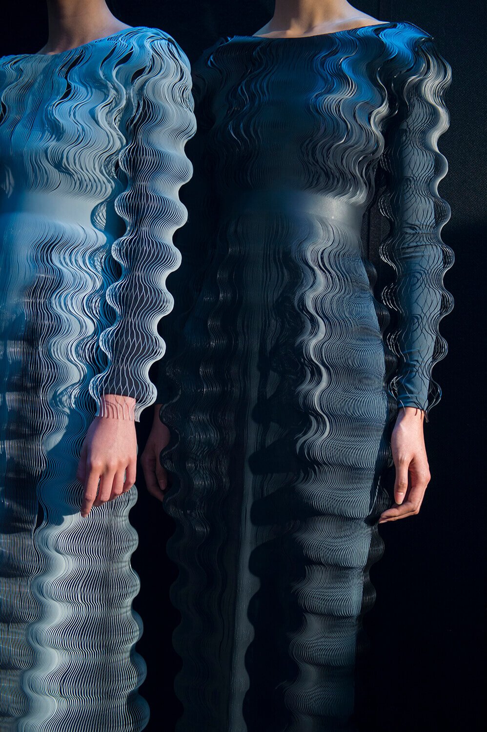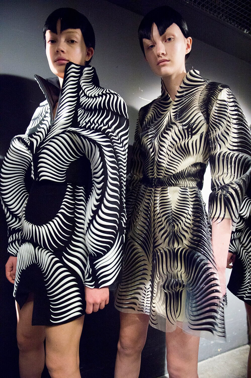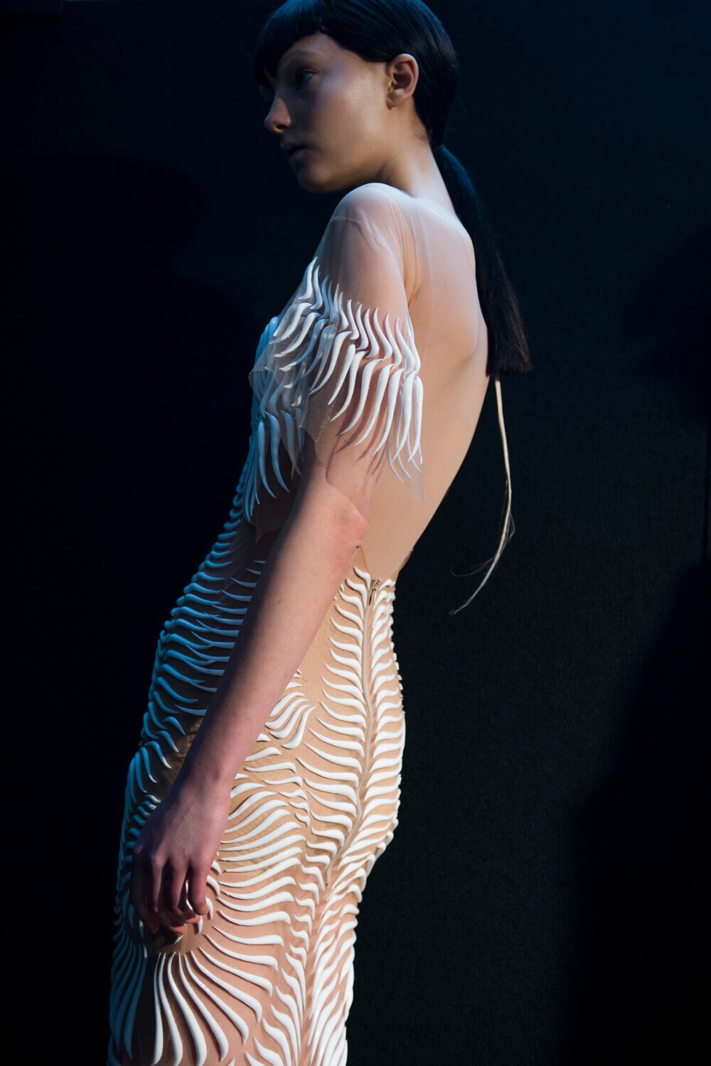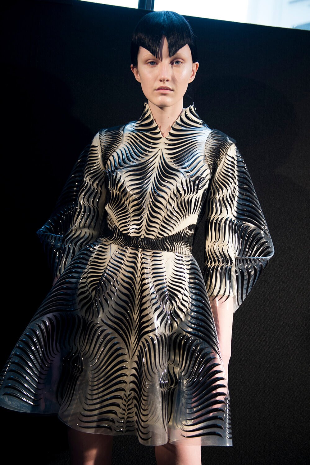 Made from processes we can’t quite understand (3D hand-casted PU fabrics and hand painted injection moulding? Huh?) so, with no time for a quick Wiki-tutorial, we shall instead enjoy Iris Van Herpen’s latest offering in a purely aesthetic way. Because this was, as Van Herpen is so adept, breathtaking fashions – clothing that looks as if it has been delivered to earth via space transportation, possibly from a distant utopia ruled entirely by powerful self-procreating women. Because this is a futuristic kind of beauty, instilled with a mythical power – clothes that make woman appear otherworldly, that almost live and breath – some layered like the back of an armadillo, others like they had been made from tiny droplets of water. Or those hypnotising, slinky-like curves. Final dress – a shimmering structure that looked something like a giant snowflake. Feels like we don’t even have a vocabulary for this. Clothing for the futuristic fashion fiend.