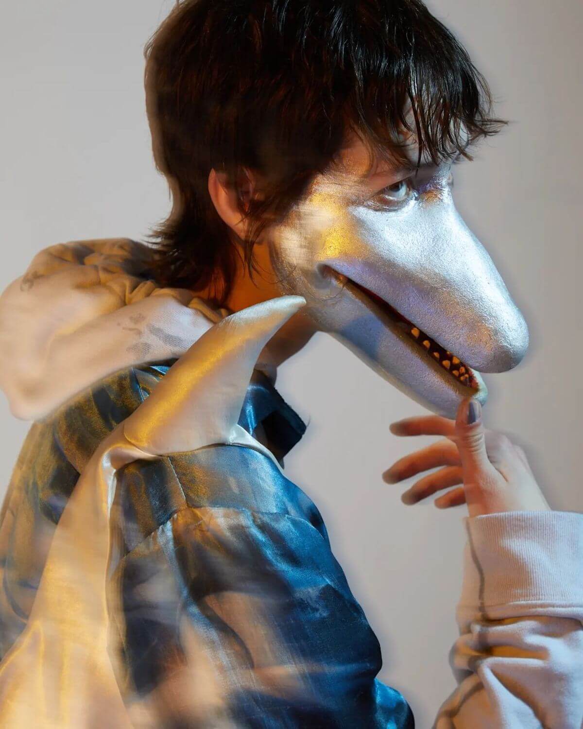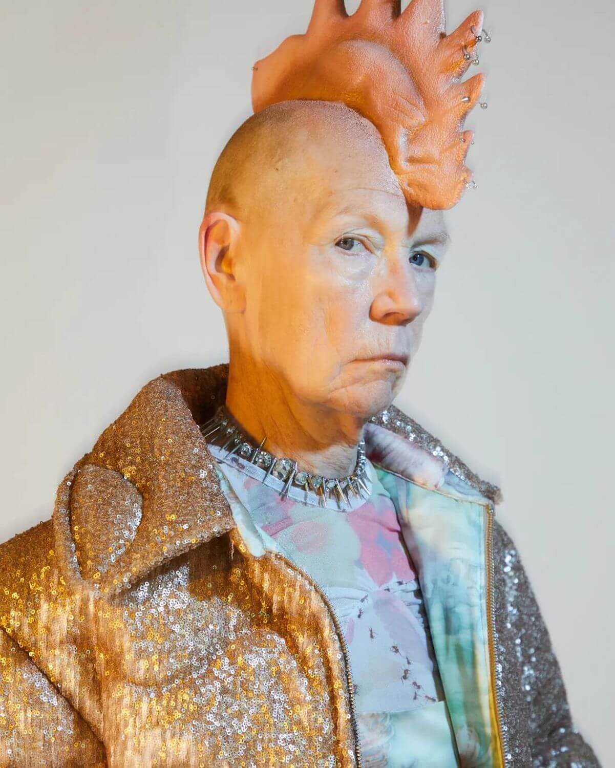 Ffrench studied industrial design at university, but eventually dropped out of CSM feeling that the course wasn’t “conceptual enough”. Hustling on the side, she had a job doing “body painting and kids’ face painting”, which would eventually lead her to a body painting gig with i-D Magazine. Then the bookings began rolling in, and the rest is history. Ffrench quickly garnered a reputation for disruption, wearable artforms and impeccable product design. “It’s come full circle now,” she says. “So much of what I learnt at university – like injection fold techniques, 3-D printing, design, using software – has really helped form my relationship with objects and how I approach design. What’s really important to me, with everything I make, is that people have some sort of relationship with it. I think that’s what makes a design successful.”