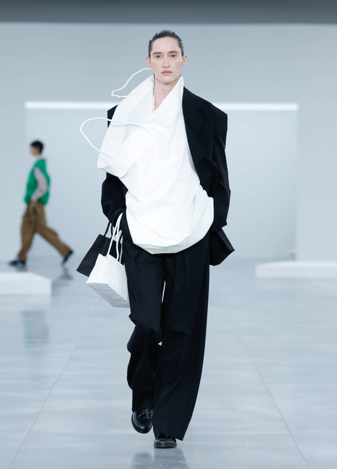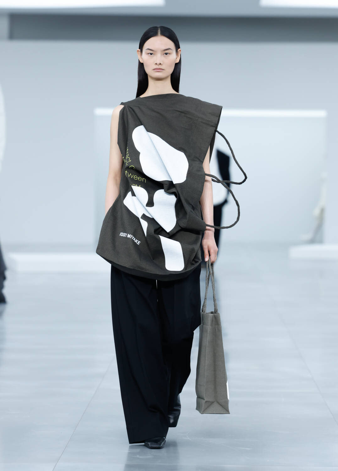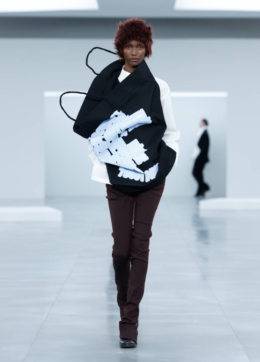 Steel emptiness, flickering lights and the silent swell of moving material. Issey Miyake’s AW25 show, [N]either [N]or, was fashion in its purest, most contemporary form. Staged at the Carrousel du Louvre in the centre of Paris, the collection unfolded like a living sculpture inspired by Erwin Wurm’s One Minute Sculptures.