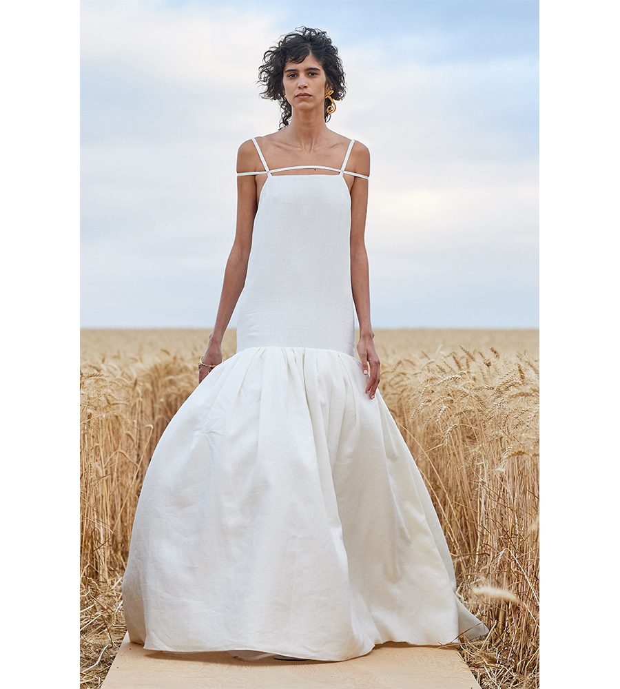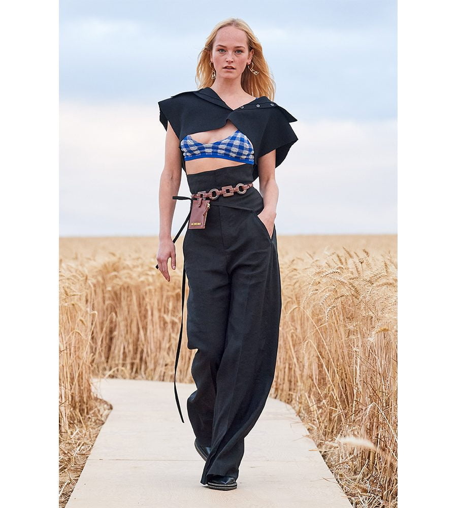 It’s become a bit of a tradition for Simon Porte Jacquemus to drag the fashion pack outside of central Paris and into the countryside for his shows. This season was a little different. The designer’s SS21 showcase held a small audience of 100 people. Mostly made up of family and friends, everyone sat socially distanced across a 600km-long catwalk buried within field of wheat an hour away from the city. Two seasons back, the designer opted to show co-ed, twice a year, during the menswear shows. “This decision ended up saving us this season,” said the designer, who was able to receive both the fabrics and resources needed to create the collection before the world went into lockdown.