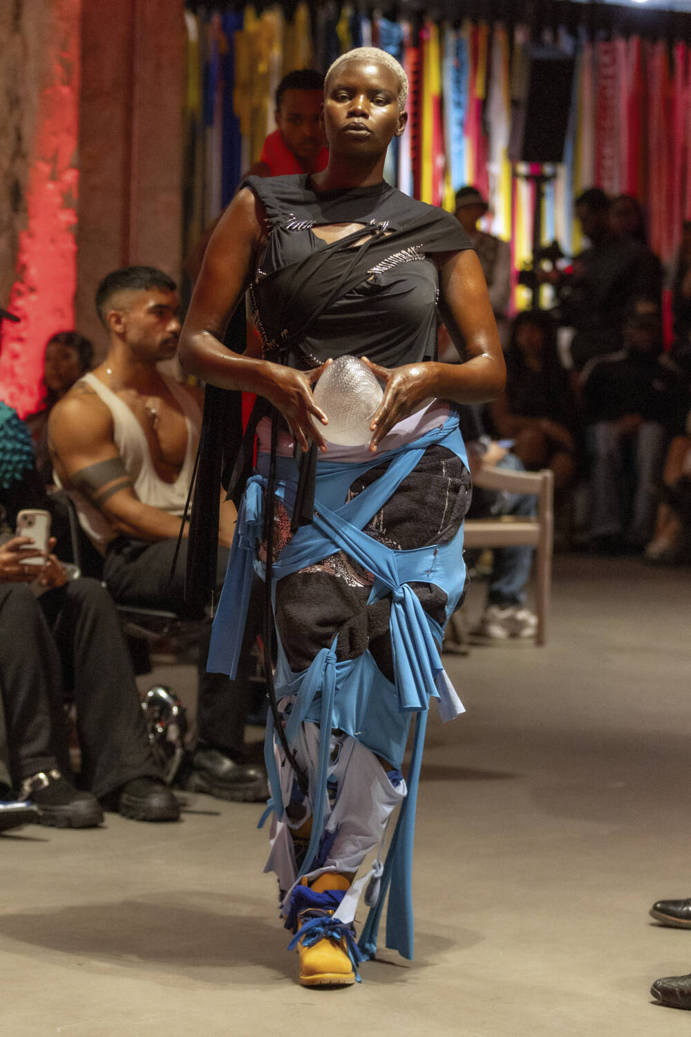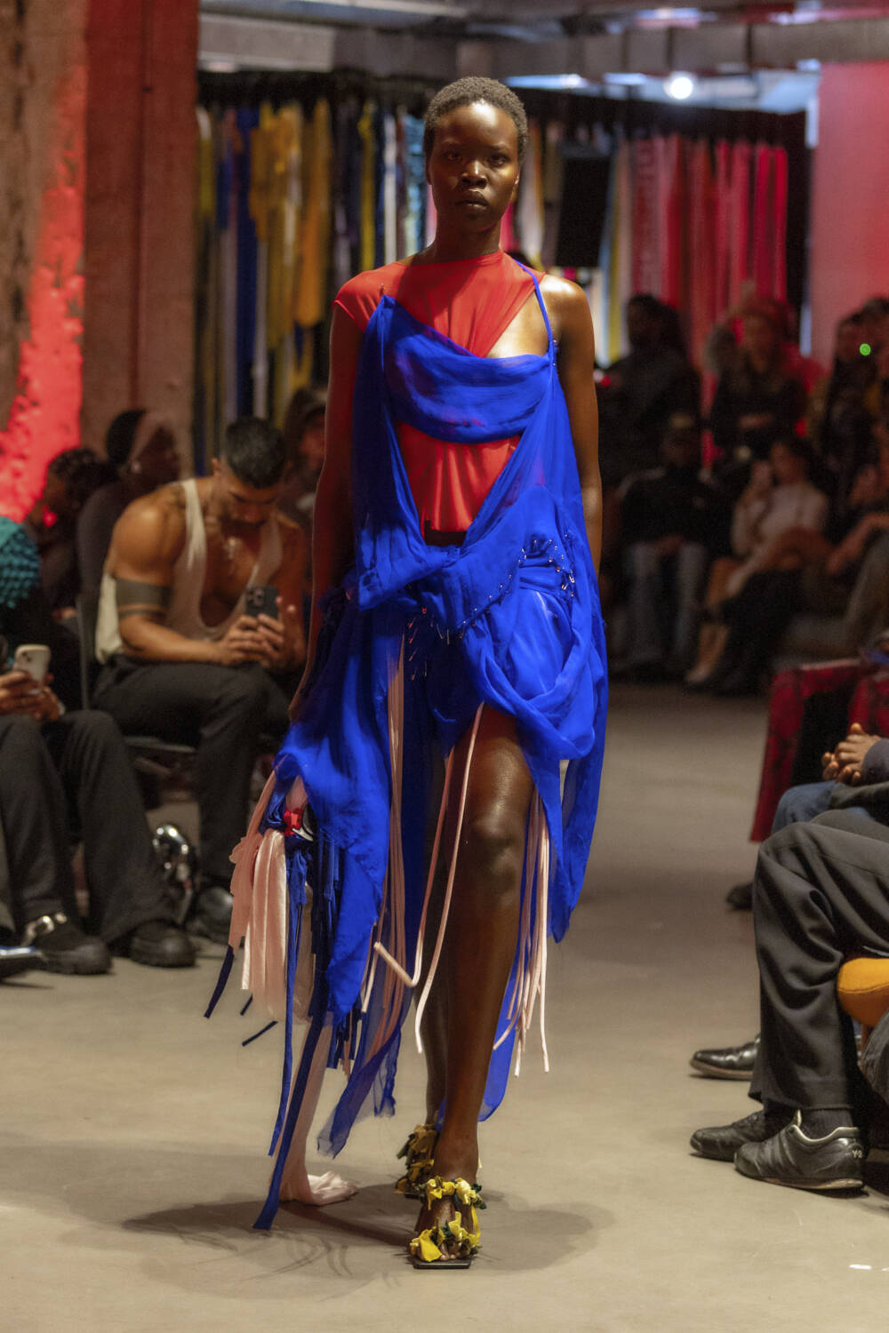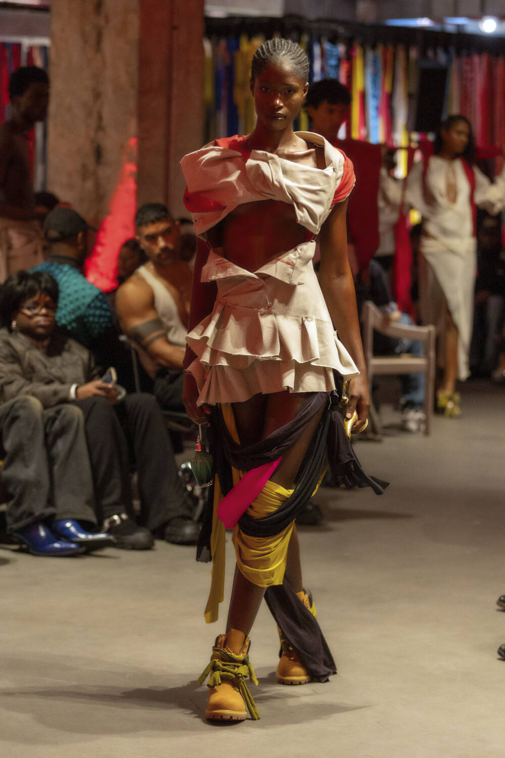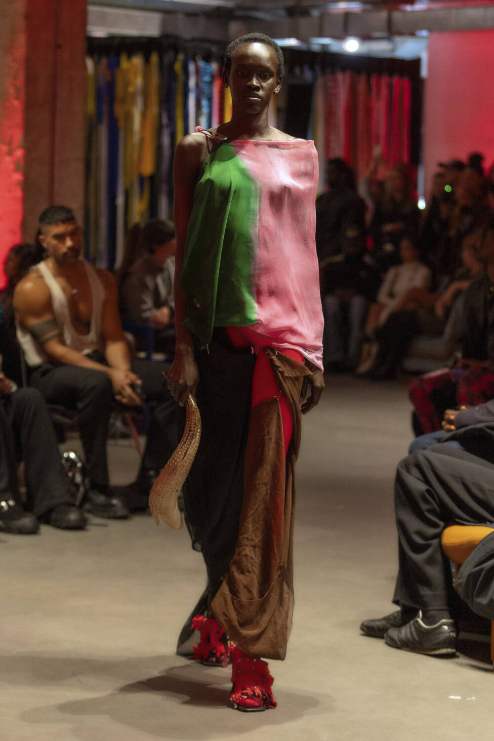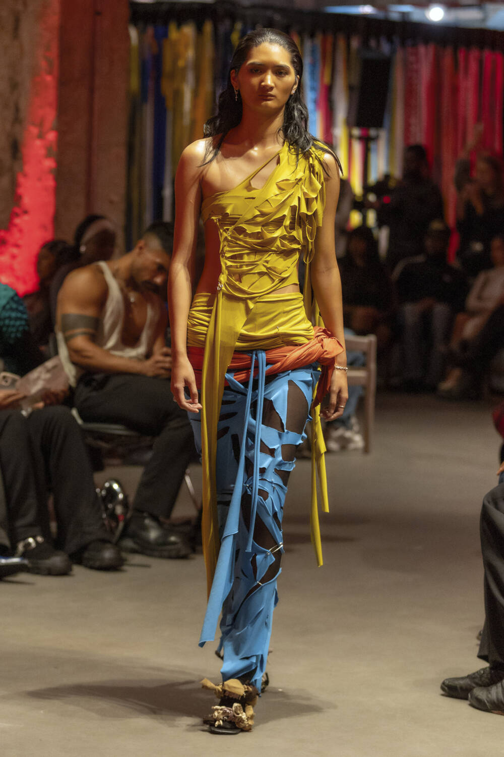 All eyes are on Jawara Alleyne. The Fashion East-alum’s profile has sky-rocketed in the last 12 months thanks to some pretty epic celebrity endorsements, with Rihanna even going on to name him as her new favourite designer in an interview. It’s a testament to Alleyne’s immense talent. There’s serious star quality to his design hand. His deft draping ability allows him to envision gorgeous frocks safety-pinned together using multi-coloured layers of fabric. Totally artisanal in his approach, he knots, bends and twists garments into sensual, abstract silhouettes.