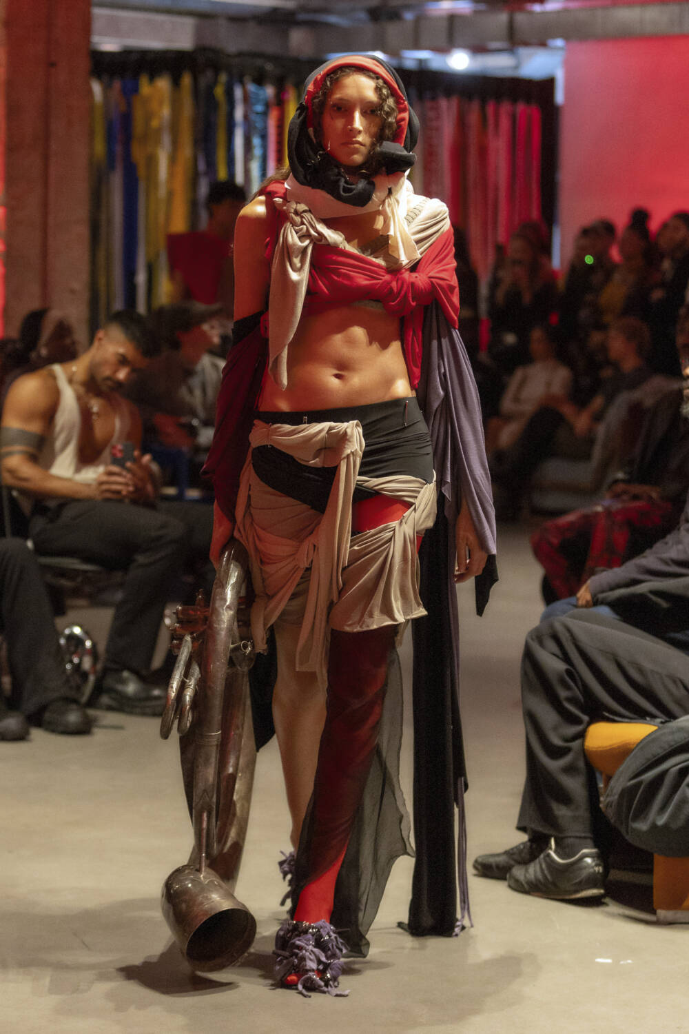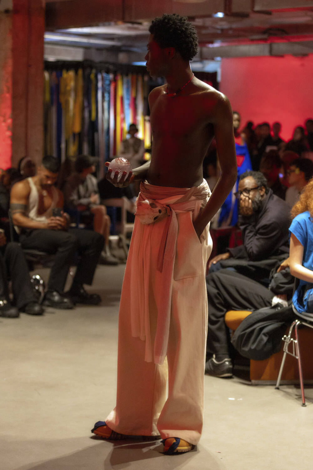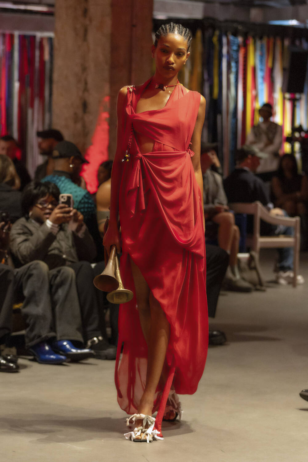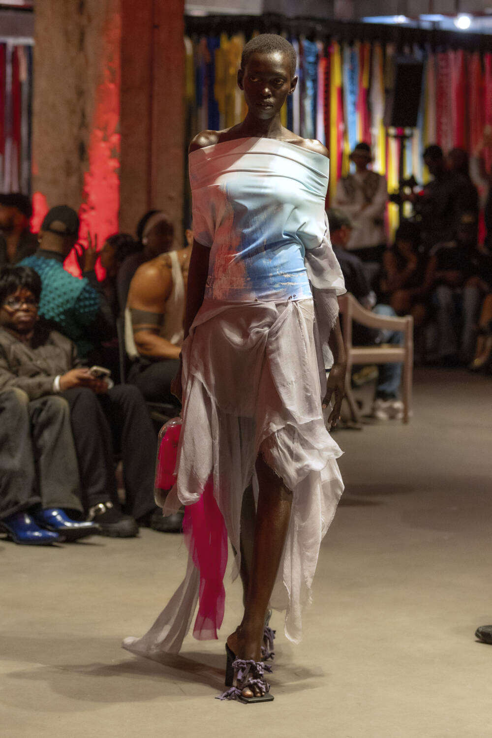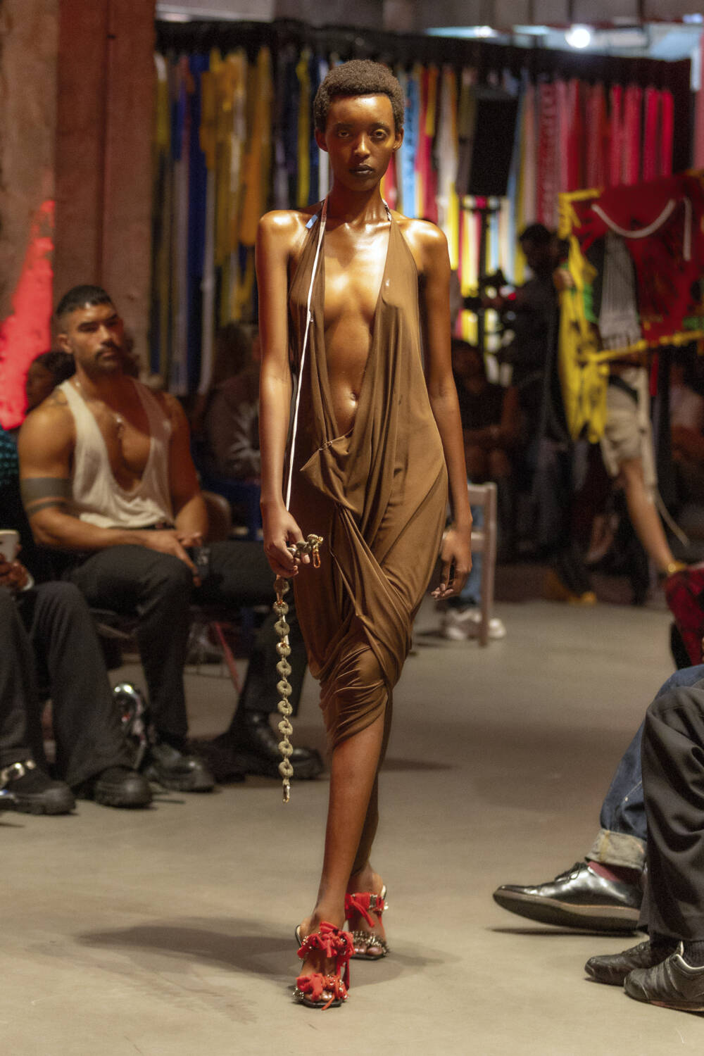 All eyes are on Jawara Alleyne. The Fashion East-alum’s profile has sky-rocketed in the last 12 months thanks to some pretty epic celebrity endorsements, with Rihanna even going on to name him as her new favourite designer in an interview. It’s a testament to Alleyne’s immense talent. There’s serious star quality to his design hand. His deft draping ability allows him to envision gorgeous frocks safety-pinned together using multi-coloured layers of fabric. Totally artisanal in his approach, he knots, bends and twists garments into sensual, abstract silhouettes.