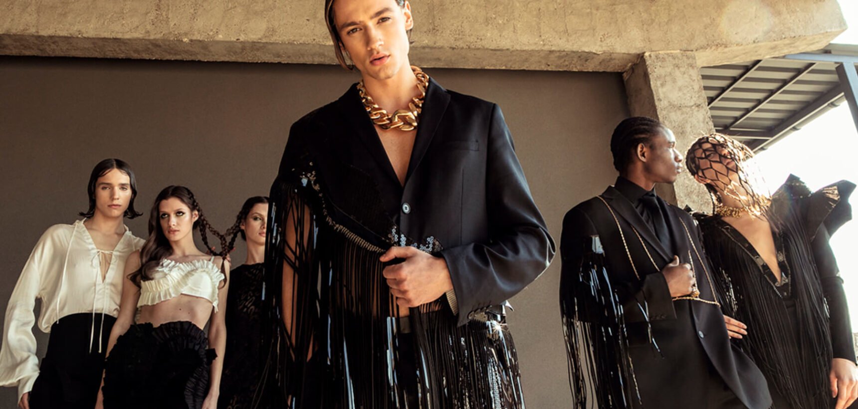 This is his tenth year as the head of his fashion brand, having built a name for himself as a designer with a strong vision and as something of a showman. He has previously shown his collections at surprising venues, including a supermarket, an airport, a train station, a boxing club and an ice hockey rink. In February 2017, he made his debut in London as part of the British Council’s International Fashion Showcase alongside five others selected from Ukrainian Fashion Week – Flow the Label; Alina Zamanova; Frolov; Yana Chervinska; Dzhus; and The Coat by Katya Silchenko. “London is so my city, I love this vibe so much,” he said. In 2013, he won the Harper’s Bazaar Ukraine Fashion Forward Prize, which included a short course at Central Saint Martin’s as part of the prize. “I have the best memories from that period of my life,” he said. Despite his success, and showing his collection as part of London Fashion Week in September 2019, he dreams of returning and possibly doing an MA somewhere in Europe, “You know, just maybe for one year, to refresh.”