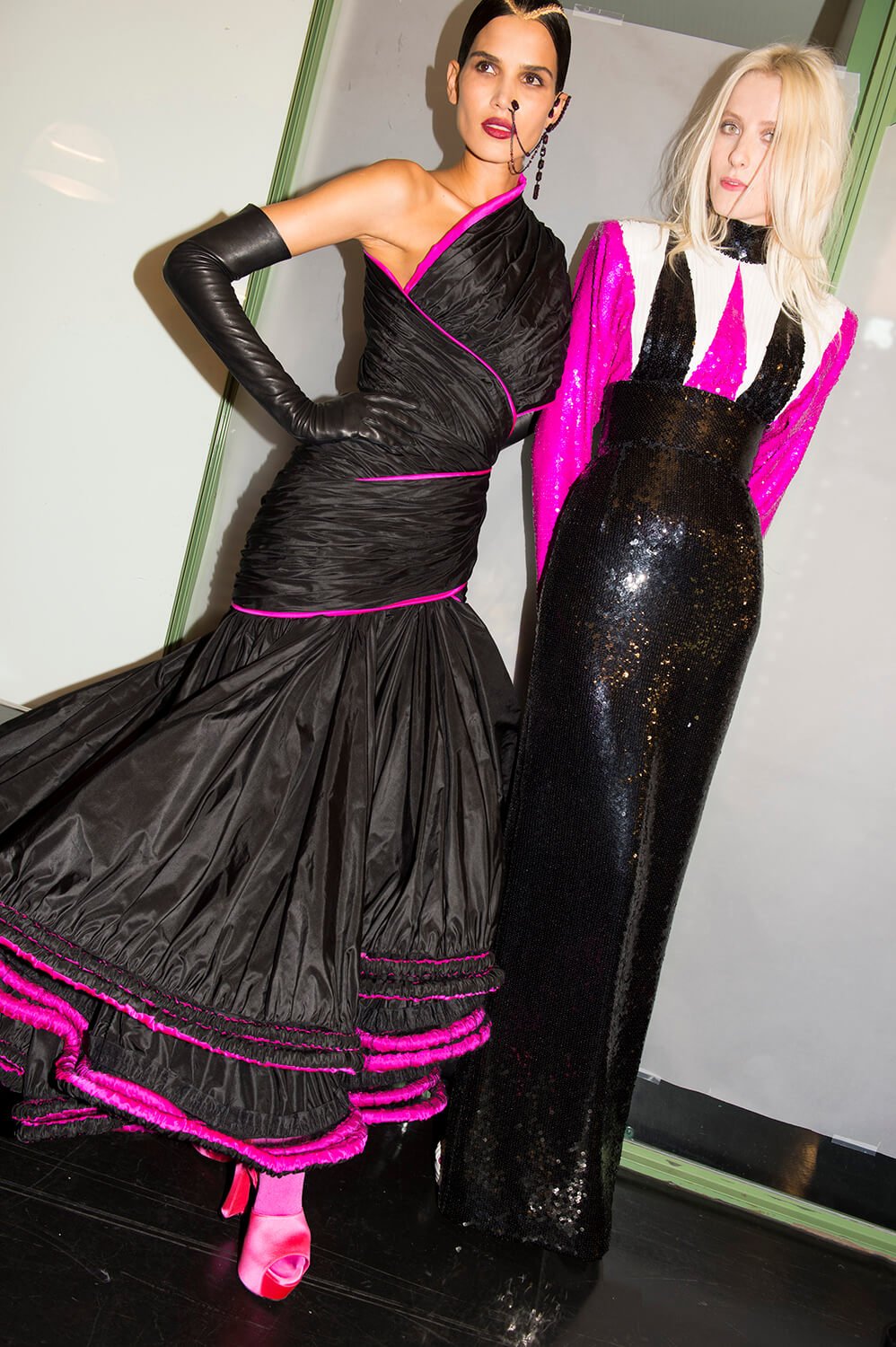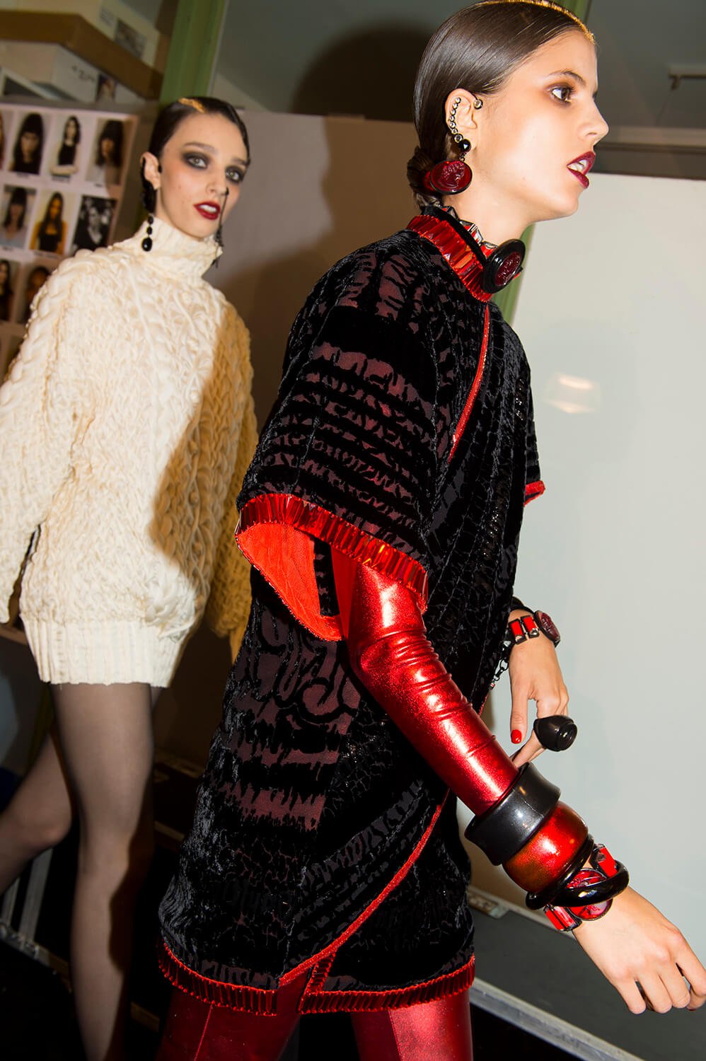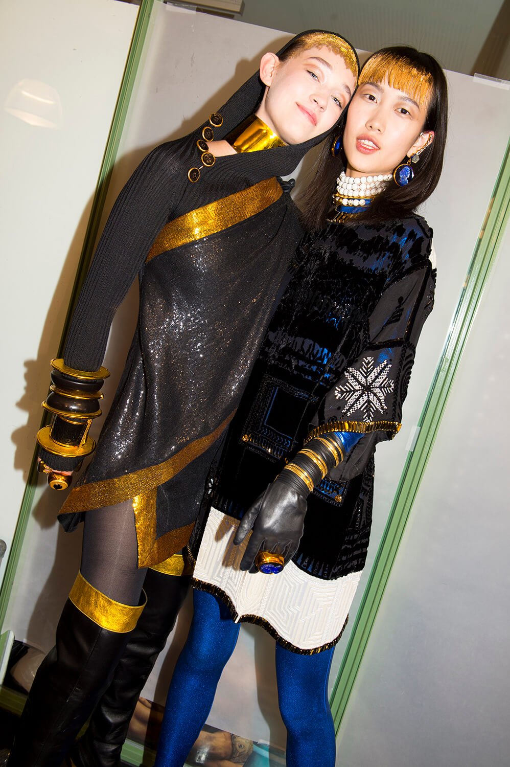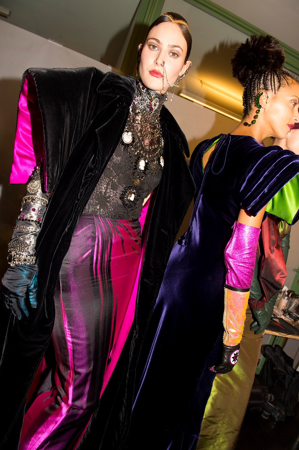 Woolly hats, that kind of thing. But then it all got a bit mashed-up into what I’m going to, in a completely unqualified way, say was a bit Russia meets India. Turn of the century Tsarina meets the rich drapes of a sari meets Alpine ski resort (the names of which marked the seating zones). Which all sounds a bit much, and really it was, but JPG does a bit much better than just about anyone. Case in point: Coco Rocha cycling a sleigh-themed tuk-tuk down the runway to the sounds of Mariah Carey’s All I Want for Christmas is You. And there’s really not much more to say than that.