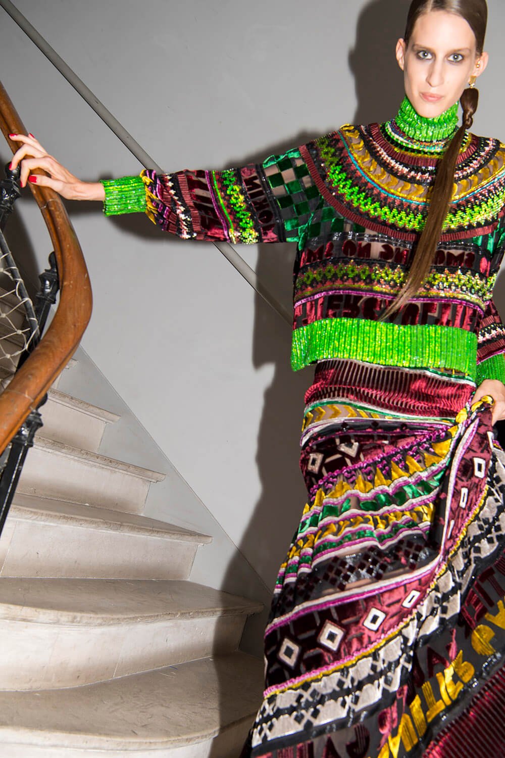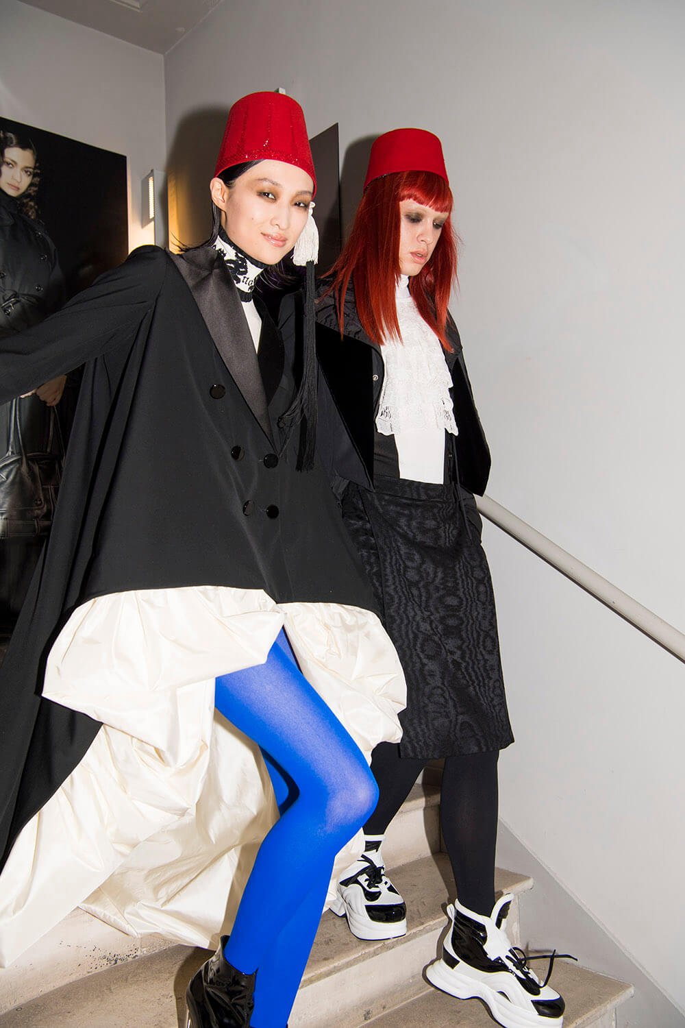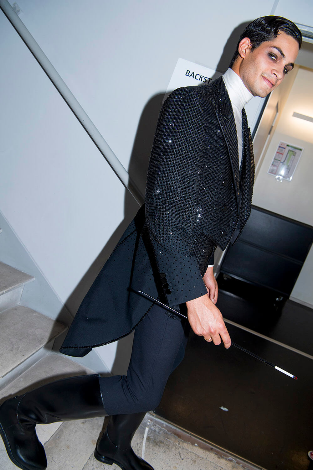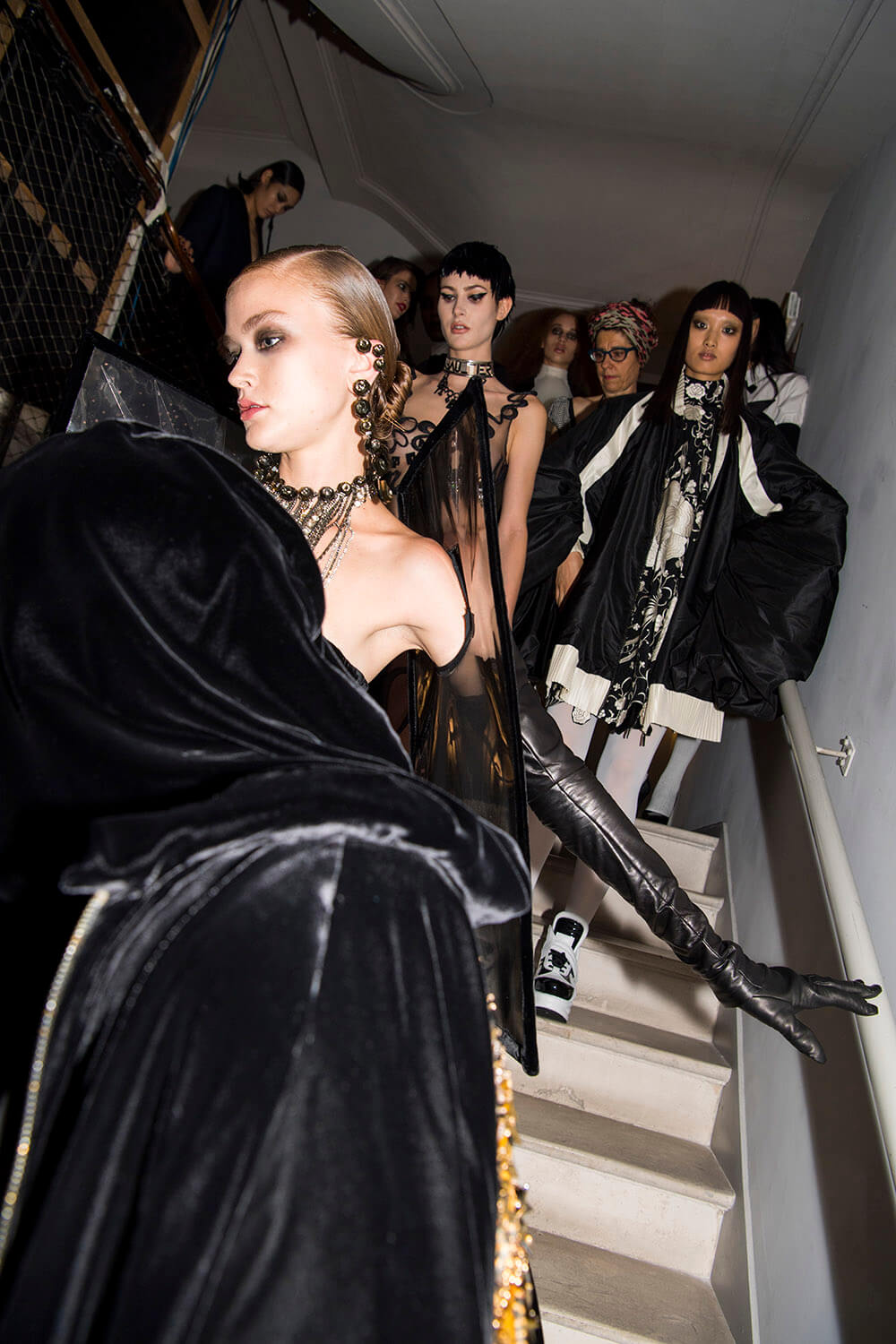 Warning: Smoking Kills. But Le Smoking can be positively life affirming. Jean Paul Gaultier based his couture show on the idea of tuxedo dressing and tuxedo attitude, both for men and women. The designer, who stepped away from ready-to-wear to focus on couture in 2014, riffed freely on tux dressing, happily blurring gender boundaries as he went. For men, the cummerbund was made in polished patent leather and widened so it became a corset. For women the frills on a masculine dress-shirt were exaggerated into a mini dress. There were witty his ‘n’ hers exits with men in black sequin maxi skirts or swagged bustiers and women in tux trousers with a spray of black feathers serving as a top. Every manipulation of the theme showcased Gaultier’s cutting skills. As for the health implications of smoking, Gaultier literally made light of it, with outfits bearing names that translated to: “Do you have a fag?” “Smokin’ Hot” and “Die Another Day. One model strode the runway in a smoke grey chiffon gown, trailing gossamer plumes of fabric behind her. Oh the glamour! Gaultier can remember a time when fags along with warm champagne, wicked gossip (and maybe a line or two) were the fuel of fashion. Now smoking is banned backstage and fashion is powered by the smoke and mirrors of social media. Pouf.