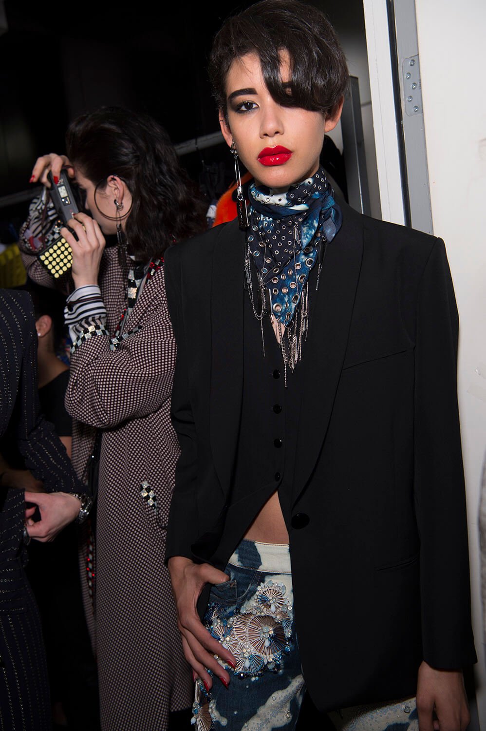 Jean Paul Gaultier take the hauteur out of haute couture. He always has. He devoted his spring/summer 2017 show to Le Palace and its legendary demoiselles – Edwidge, Paloma, Pat Cleveland, whose daughter Anna strutted the catwalk. The doors stood at the top of the catwalk, the scene inside getting increasingly rowdy until the curtain dropped at the end and Gaultier came out dancing in velvet Converse. What happened before, and behind those doors? A show of super souped-up party wear, glittering crystal chain-mail, cleverly chopped us suits, louche pyjama dressing. Chic stuff, but with Gaultier’s trademark anarchic chic, so evening dresses came bleached out like denim, mink was cut into casual bombers, and evening dresses were spotted by models in Bowie drag. Edwidge Belamore died back in September. A shame. She would have loved this.