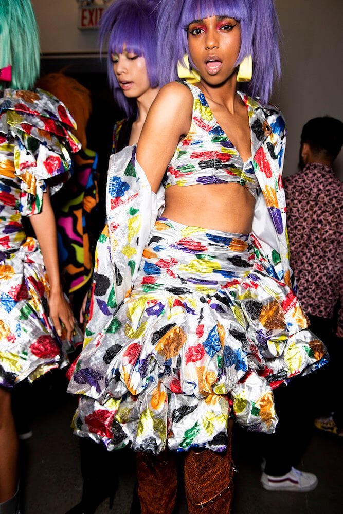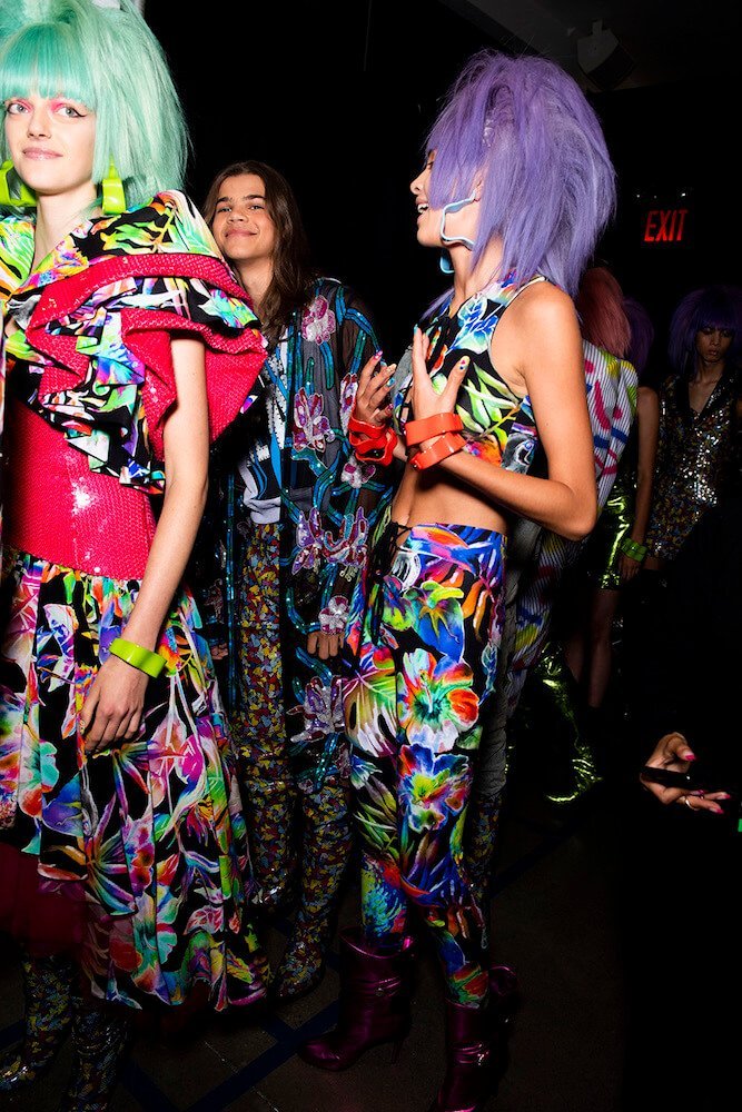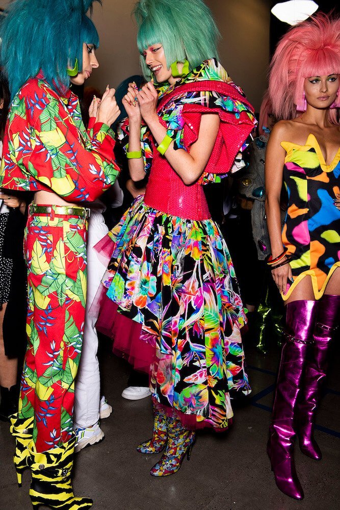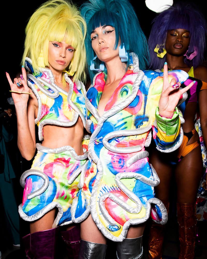 Ladies, gentlemen and everyone in between, please welcome to the stage – Jem and the Holograms! Well, kinda sorta. Booking a one-way ticket to a galaxy far, far away, Jeremy Scott took his brand into a retro-futuristic direction for SS20, one where psychedelia and disco collide. 1980s party dresses and neon prints, wild Party City wigs in every colour of the rainbow, and Karla DeVito’s hard rock bop playing in the background. “Is this a cool world or what?” she asked the question in her haunting 1981 track, making the perfect soundtrack for the sort of escapist ideas Scott presented on the New York catwalk.
