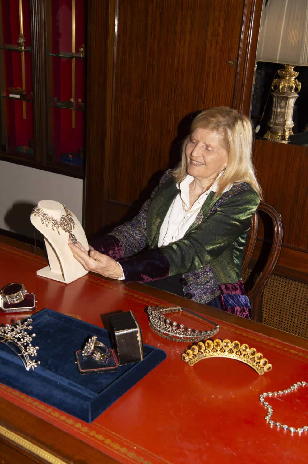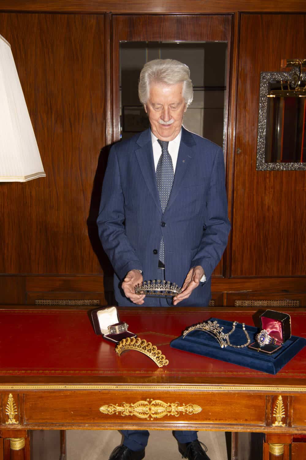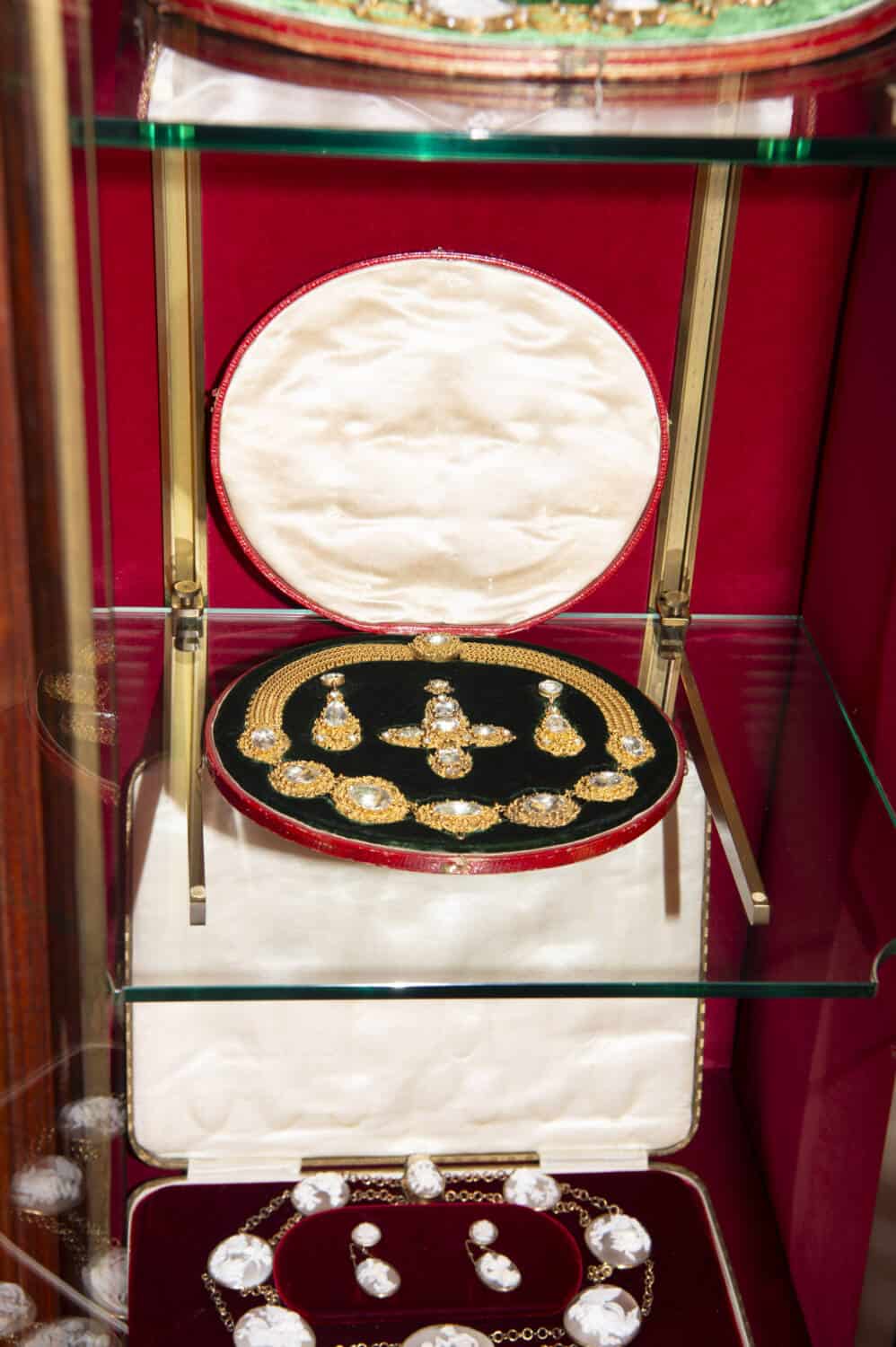 The Alfredo Ravasco collection, made between 1930 and 1950, which is on display and open to the public, is one such example. A presentation ring given by the Austrian Emperor Franz Joseph as a special prize to students and luminaries and a cameo bracelet given by Napoleon to his biographer during his exile on the island of Saint Helena are others. Elsewhere, an Egyptian Revival platinum set in its original box and chains full of charms made in Naples in the 18th century to ward off evil spirits also hold a special place in the safe.