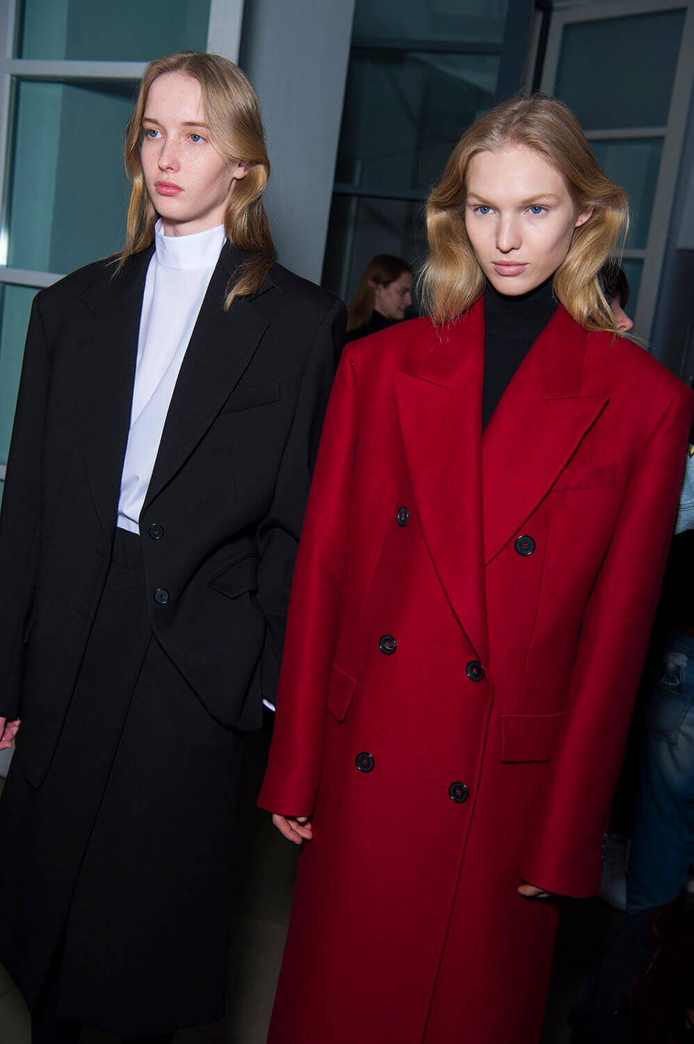 Jil Sander’s girls are getting their glitz on. They don’t let their hair down often (call them disciplined) so take this as an occasion. Because the show ended with a glitzy metallic moment (we’re sniffing a bit of a trend here, Bottega’s ladies earlier were similarly molten) coming through in wide-shouldered drapey lurex and lame dresses, some that wrapped around the waist like tied sleeves. Can’t help but reference Quality Street here – something about a coloured metallic situation always summons up a strawberry cream. Elsewhere, there was that play on tailoring that Rodolfo has made a bit of a signature, big and boxy – here in red wool and black leather, that shape becoming softer, more rounded as the show went along – the sleeves on dresses and blazers curved, the silhouette pumped up with puffa jackets that sat on top. It ended with a bit of a fashion whisper – would this would be Rodolfo Paglialunga’s final collection for Jil? If (and we emphasise “if” here) this is the case – then how better to make your exit than with a bit of sparkle?