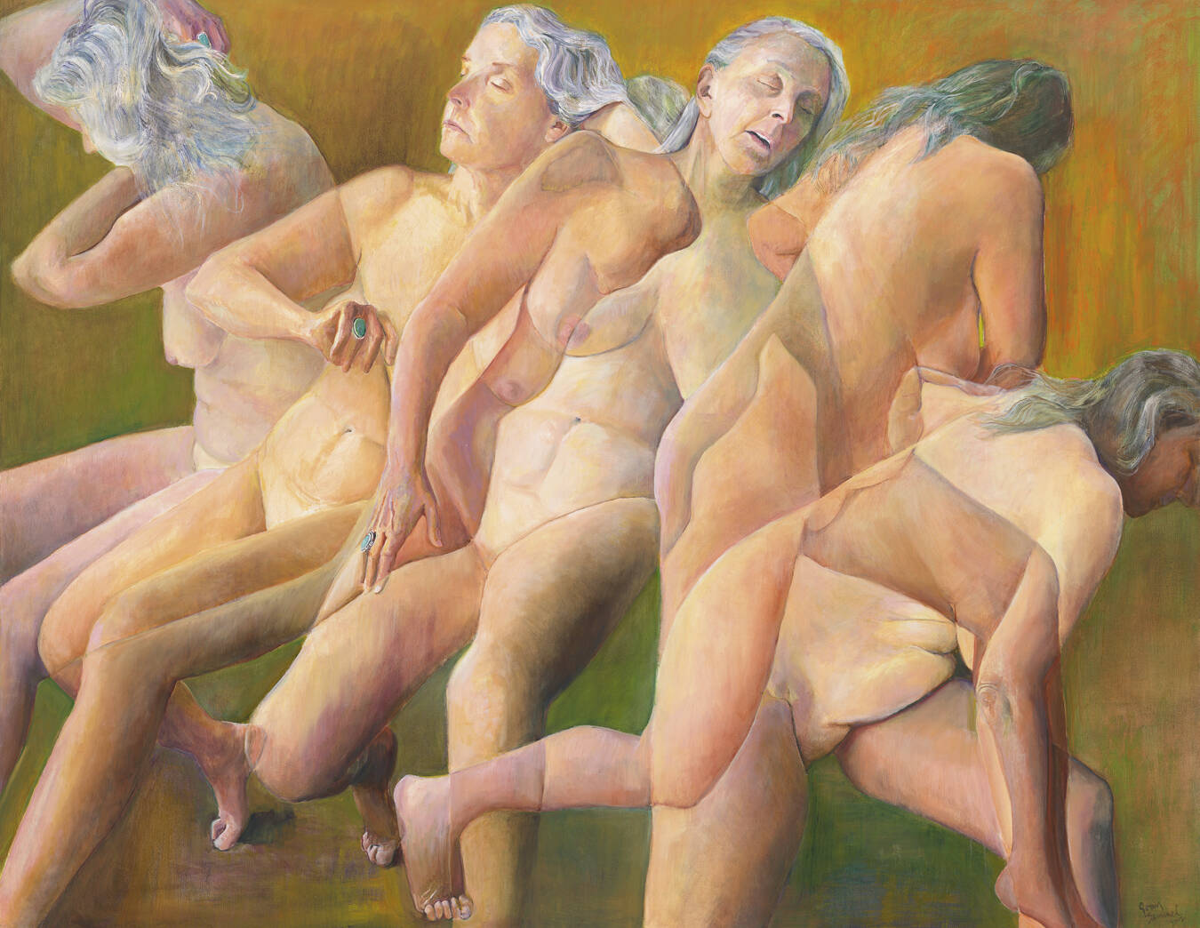 Her form of visual realism has historically traced women’s sexuality, with its wrinkles, smile lines, folds, softness, the business of ageing, all of it, naturally encouraging self-acceptance. Although, she says, “I don’t think it’s because I paint so realistically… I imagine that might be helpful to people who can respond to something recognisable more than something more abstract. I think from that point of view it’s important, but the return to figuration has happened out of developments and the art community. [I think] it has to do with a shift from abstraction back towards more representation.”