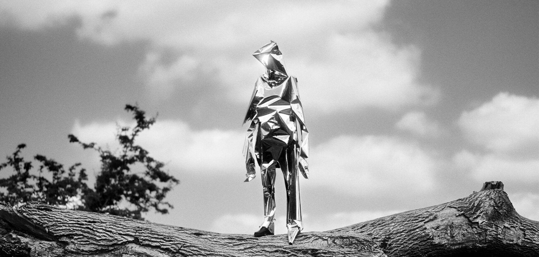 Flicking through One For Sorrow, that figure takes shape as a tin man. “He shines and reflects the light, all the while inside he suffers, suffocating in his own costume of reflection,” Hight explains. On a fallen tree the tin man stands, his alloyed exterior gleaming against the panoramic UVs, instigating an intimacy that is both tender and alienating. It evokes uncertainty, conjuring the uncanny and unleashes an ocean of emotions upon the onlooker. Hight constructs an apocalyptic, post-reality universe, placing the viewer in the midst of the chaotic compositions alongside the tin man, so that they cannot be certain of what it is they are seeing, where they even are, or what might happen next.
