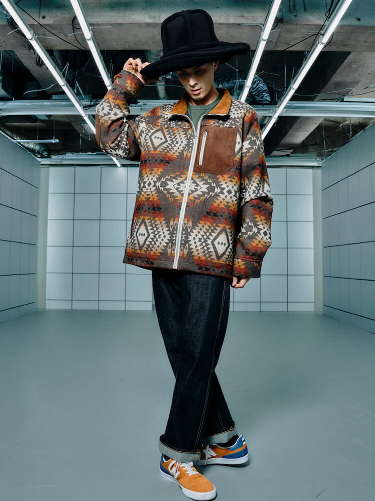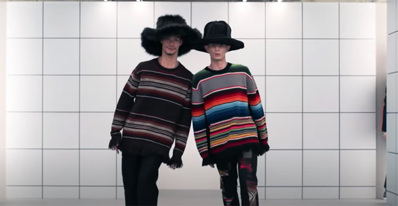 Throughout, Watanabe uses Navajo patterns and Mexican serapes to fashion his pieces. The designer is quick to dismiss accusations of cultural appropriation, noting in his press release that both the Secretariat of Culture of Mexico and Pendleton Woolen Mills were involved in the creation of the collection.