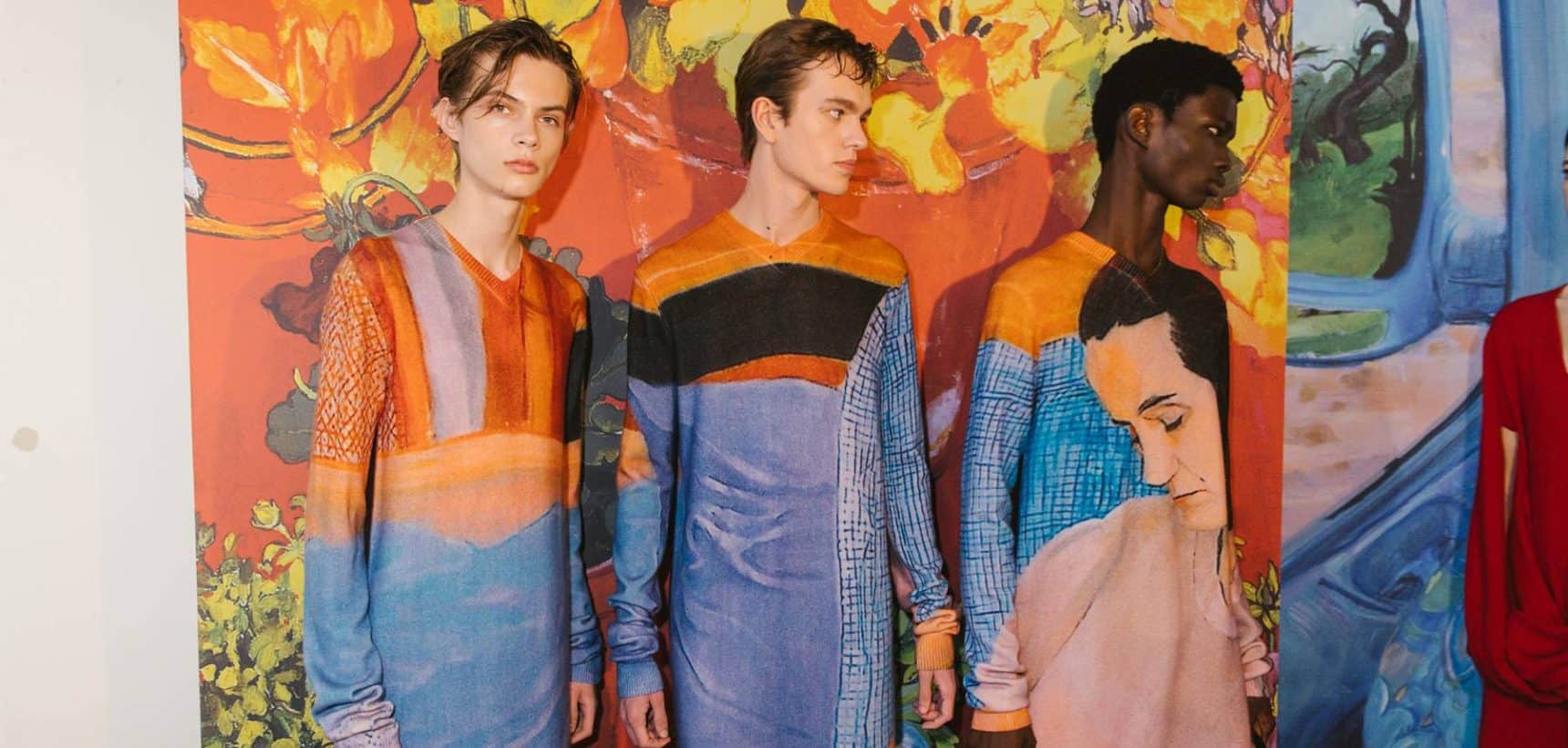 From tasseled curtains to its crimson interiors, one of the first things that stuck out to the designer was the paintings that hung on the walls. They were the creation of the director’s wife, Christiane Kubrick, whose artworks were lifted and woven into his JW Anderson AW24 men’s collection. Floor-length column dresses, colourful knits and a series of bags were decorated with the artist’s kitschy drawings, lacing the collection with a sense of foreboding that suffocates the film.