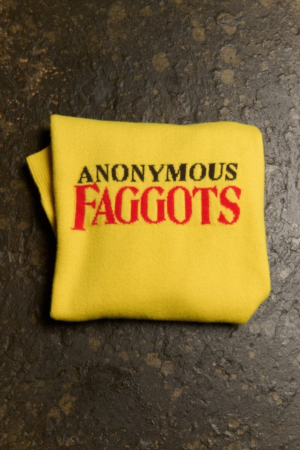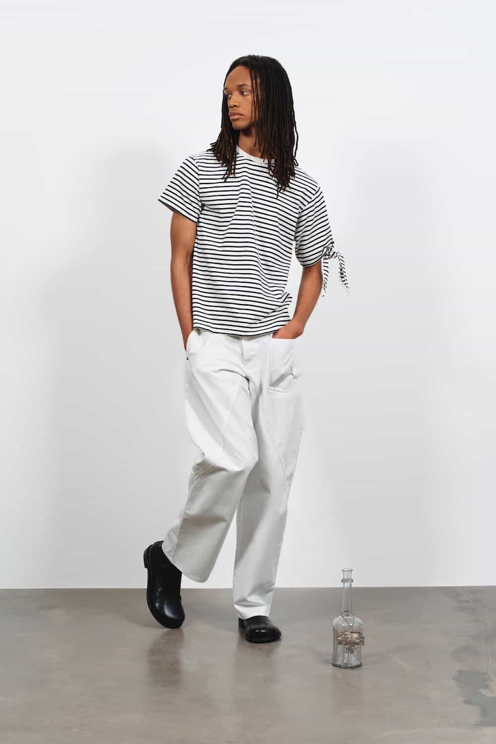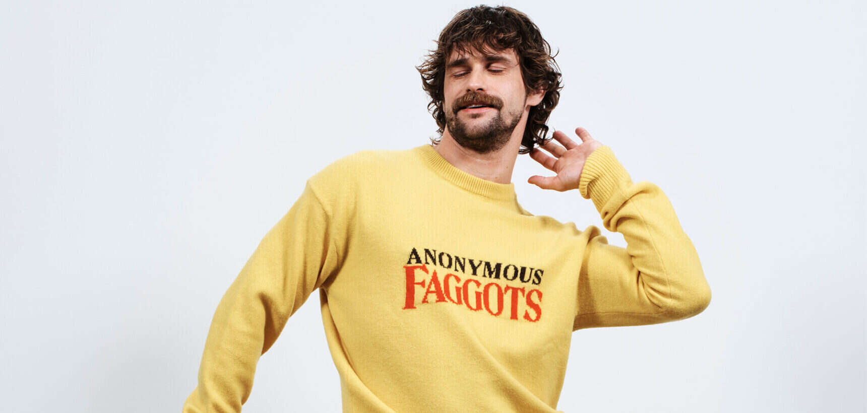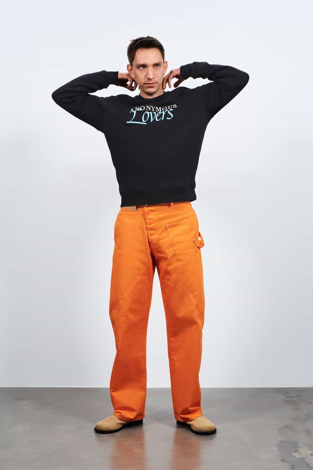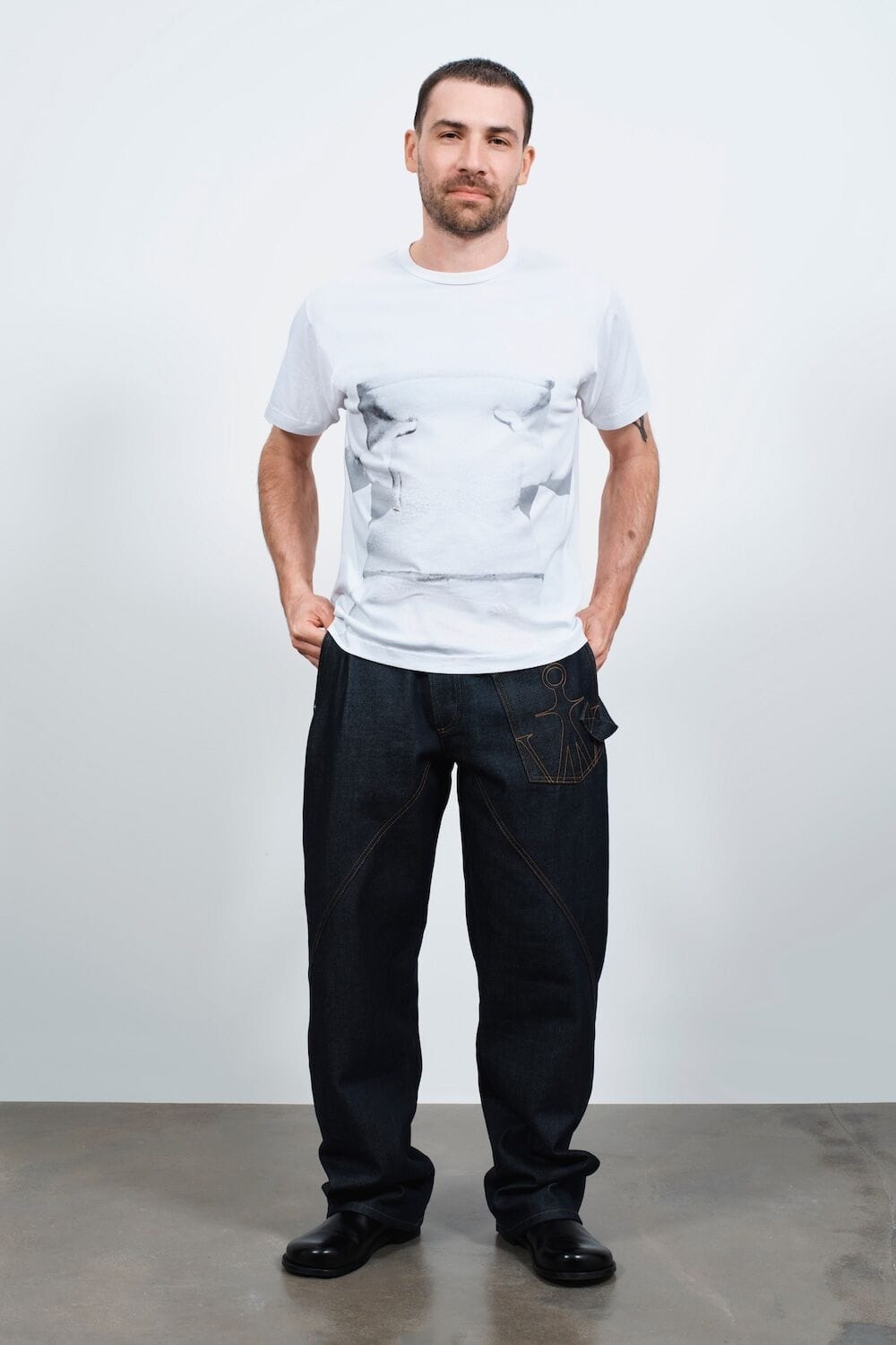 This one’s for the gay boys – and the boys they meet under cover of night. Dean Sameshima’s lavishly embroidered ‘Anonymous Trade’ pullover flirts shamelessly, serving up a subtle wink and a not-so-subtle nod to all those hush-hush encounters that come from late-night Grindr encounters. The artist, splitting his time between LA and Berlin, brings his signature cruisy, clandestine energy to this casual cotton piece: a navy blue number decked out with bold white and sky blue typography that all but dares someone to ask what it means. JW Anderson keeps it casual – but you both know exactly what’s up.