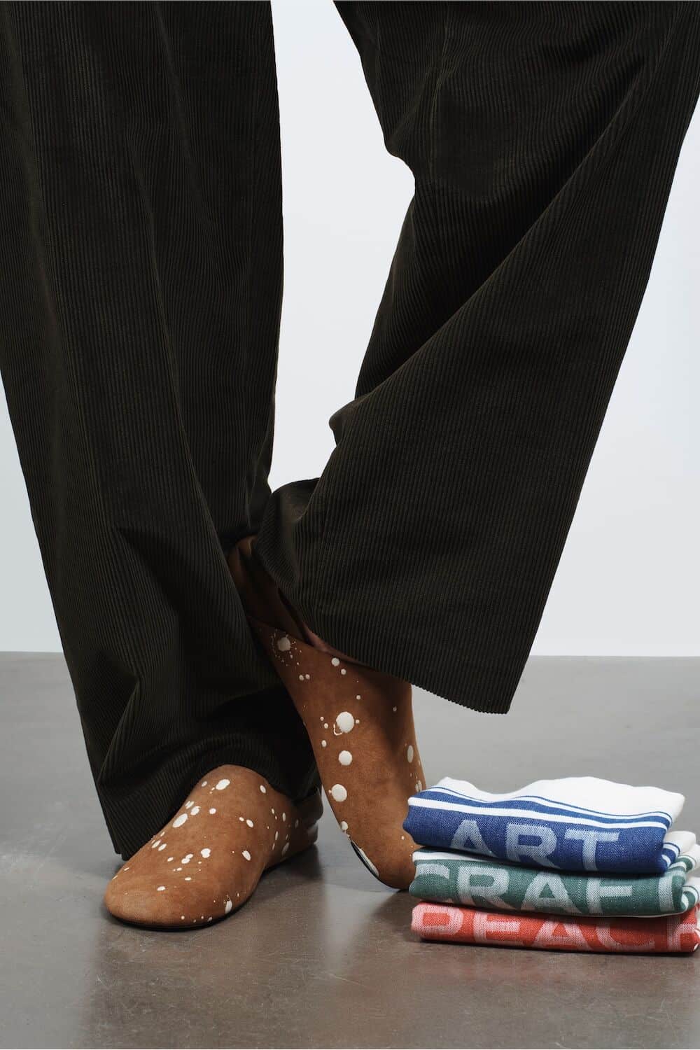 Where JW Anderson is concerned, craft comes in full force. (While at the helm of Loewe Jonathan Anderson has been a tireless champion of the maison’s annual Craft prize celebrating artisans from around the globe). And so under this new brand identity, comes a graphic triptych of Irish tea towels – “Art”, with a cotton stripe of blue, “Craft”, with a cotton stripe of red, and “Peach”, with a cotton stripe of green. Keeping your kitchen looking chic and the cutlery sparkling, these towels do it all. Drying your dishes never looked so suave.
