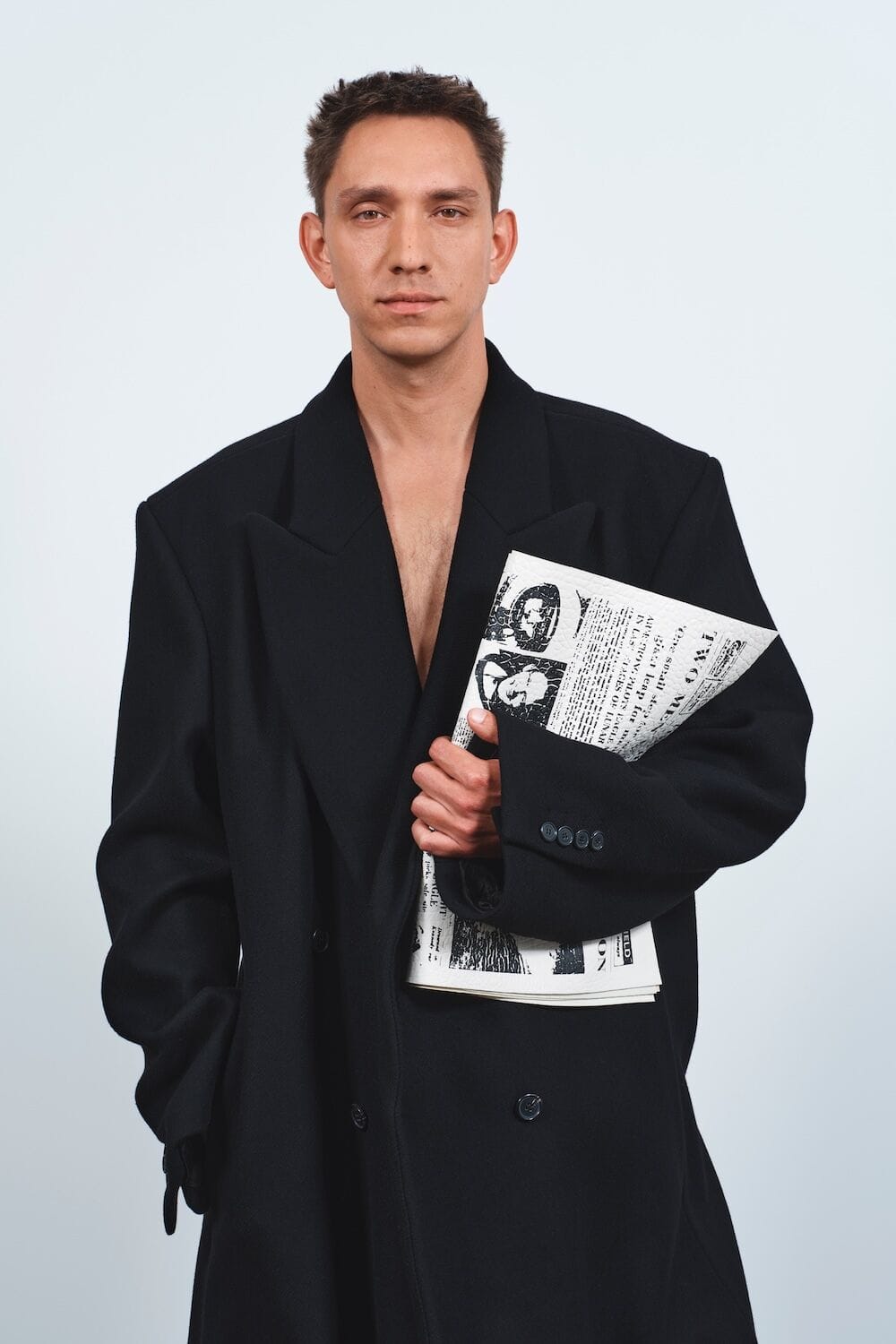 Your morning commute just got easier. As you dart into the underground, dodging elbows, coffee cups and yesterday’s regrets, you’ll find you no longer need to stop to grab the morning paper. That’s because, with the JW Anderson Newspaper Coat, your daily updates are built right in. A louche greatcoat cut from the finest black wool felt, it wraps you in headlines, gossip and a dash of intrigue – so you’ll always be the most informed (and best dressed) on the platform. Who needs breaking news alerts when you are the headline?