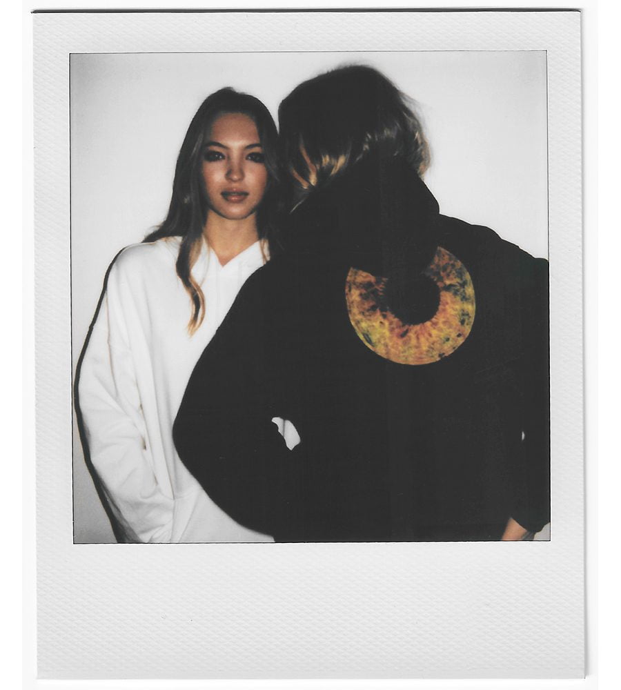 The mother-daughter duo has come together to launch Eyescapes: a series of tees, totes and hoodies that take inspiration from Rankin’s 2013 series of the same name. Kate explains that, “since everyone was living in hoodies in lockdown the team at the agency and I decided it would be fun to create some merchandise of our own.” The result is an easy-going collection featuring a close up of Kate’s eye taken by the legendary photographer which comes plastered across each piece. Flashes of green and amber make for one striking iris. As for Lila – who made her catwalk debut back in October at the football-inspired Miu Miu show – her favourite piece is the black hoodie, “it is super cosy and the perfect item to throw on with any look,” she explains.