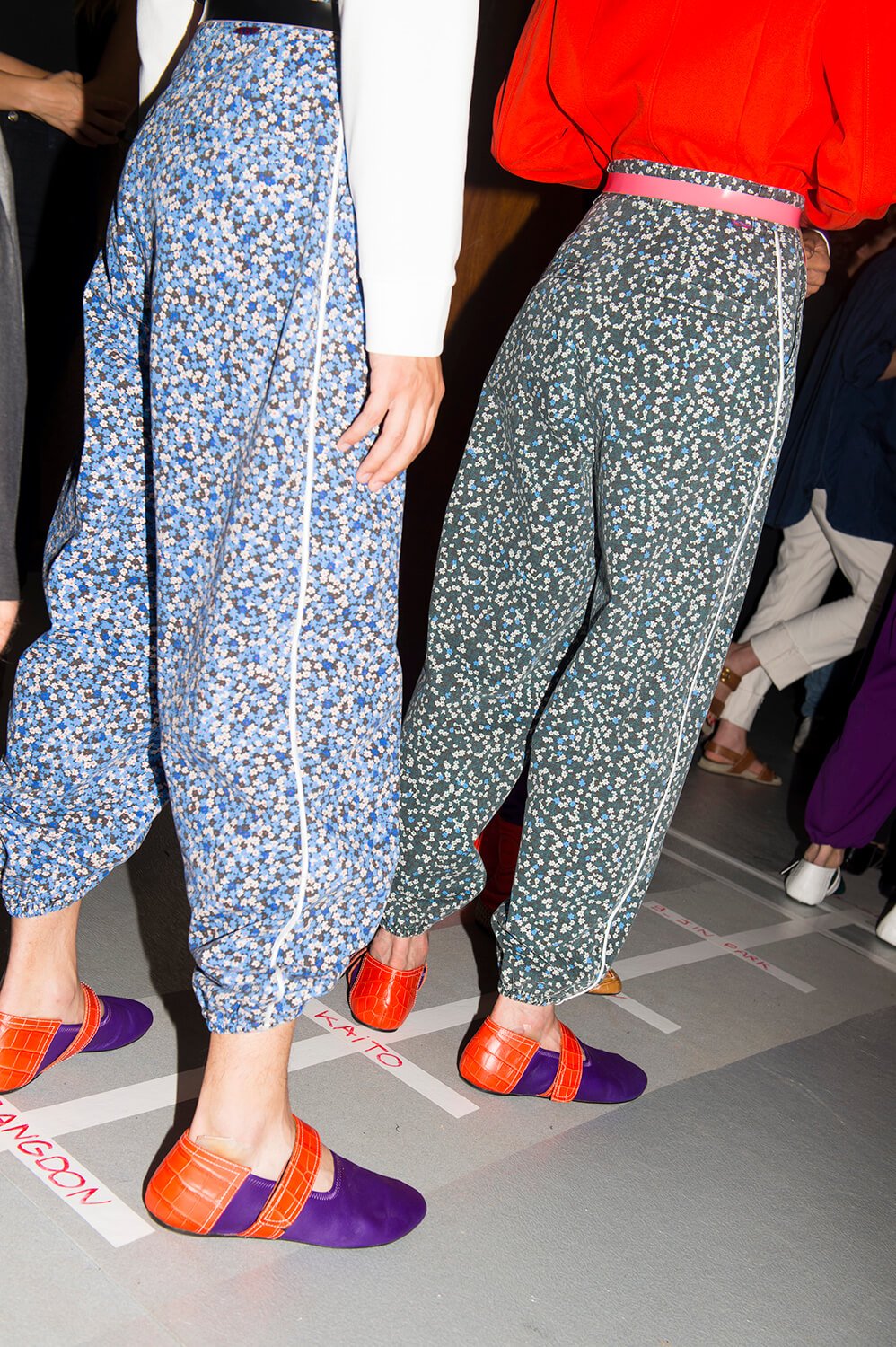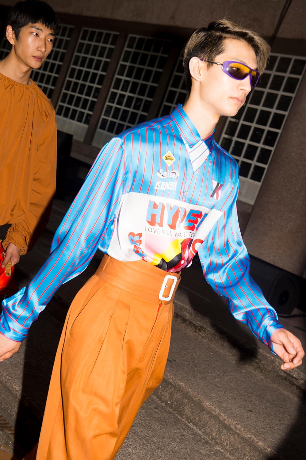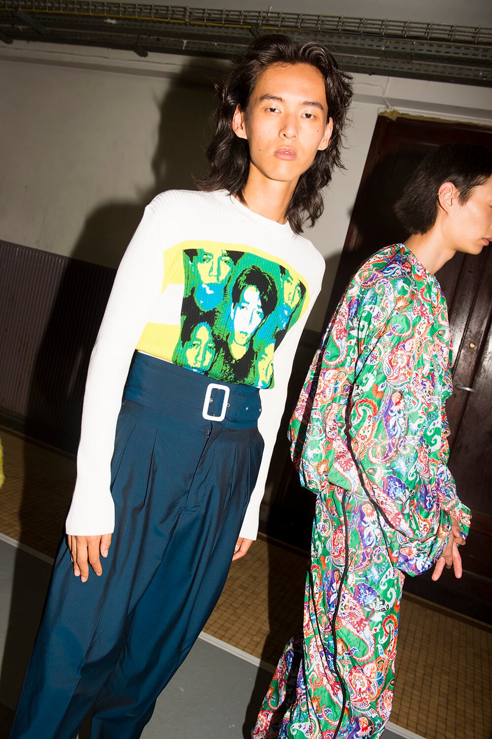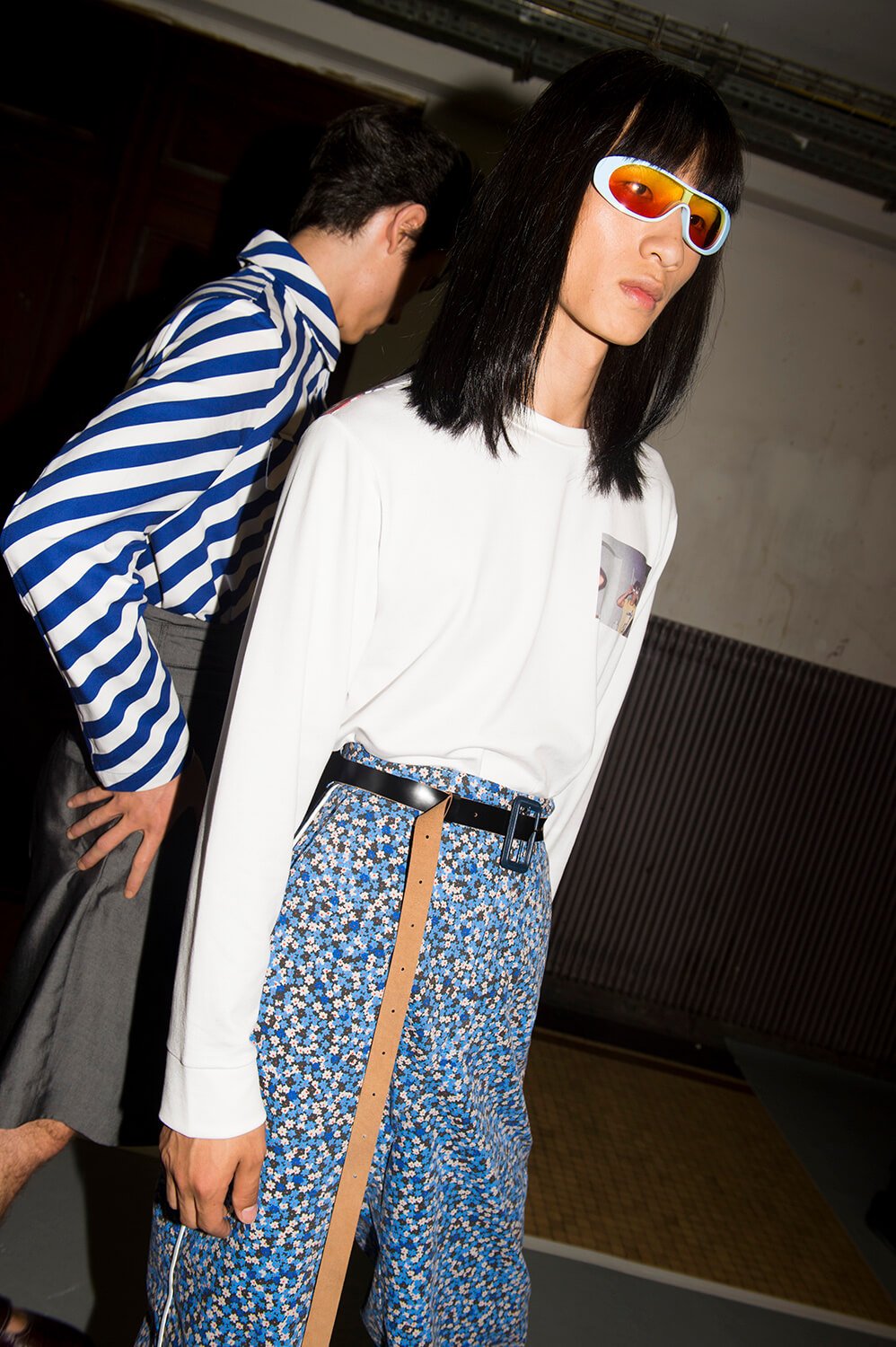 So that’s what the pair did here – graphic florals sat next to the same print in a clashing colour, stripes met stripes, t-shirts were emblazoned with sporty racing prints. Slashes of sequins, metallic silks, hippyish paisleys. The women’s silhouette riffed on the era that the designers so often refer to – the 1980s – loads of ruffles, asymmetric dresses that fell off the shoulders, dresses that rushed along the body and sleeves. Menswear was a little bit more restrained – clean, strong-shouldered tailoring was worn with high-waisted 50s style trousers, a cut found throughout. It meant everything was tucked-in – fluffy neon jumpers, t-shirts printed with Ryuichi’s face, bold, boxy shirting. Honestly there’s so much more good stuff to say here, but we have actually run out of words. All you need to know it that we liked it. We really really liked it. And with that, over and out Paris. We’re off to lie in a darkened room.