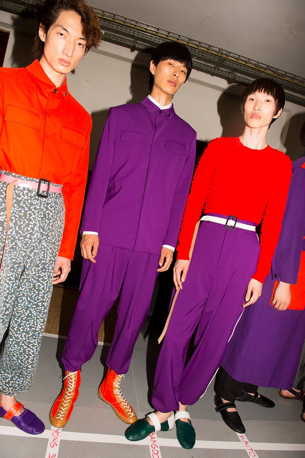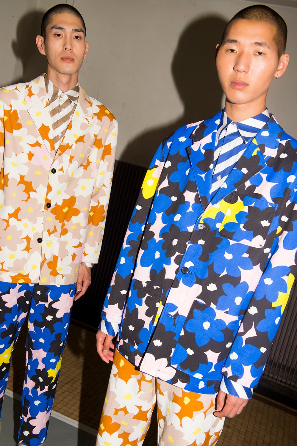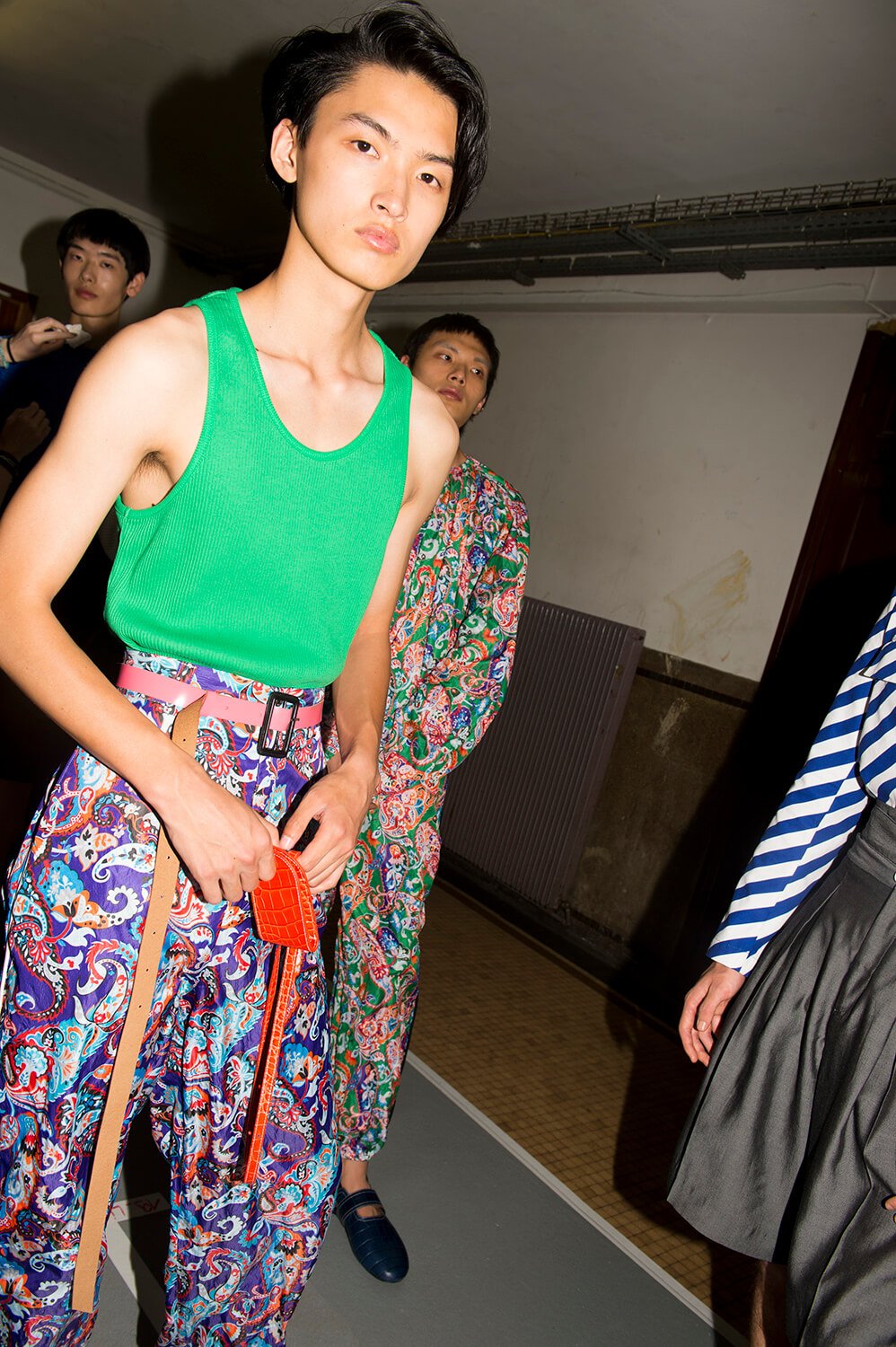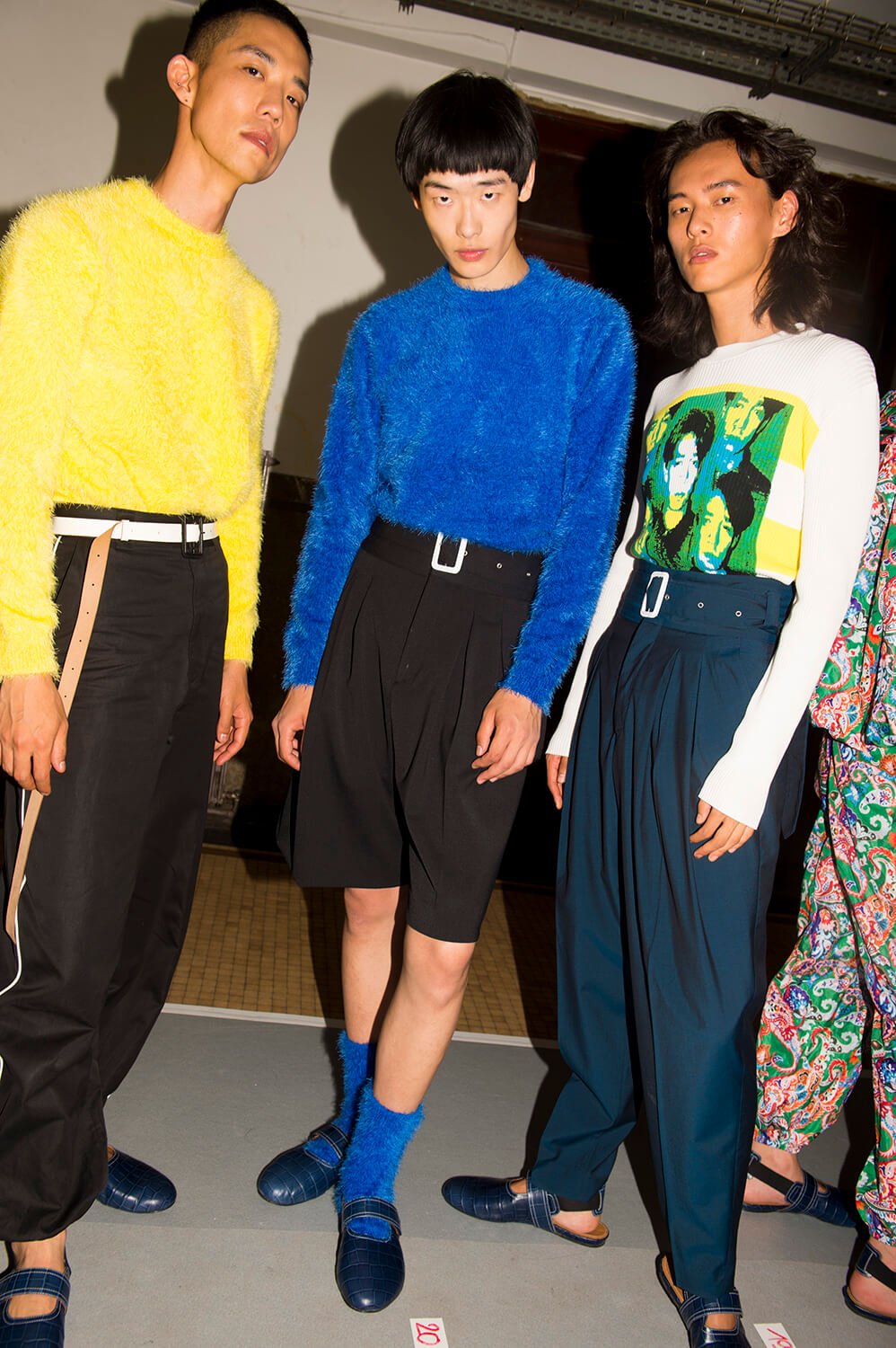 So that’s what the pair did here – graphic florals sat next to the same print in a clashing colour, stripes met stripes, t-shirts were emblazoned with sporty racing prints. Slashes of sequins, metallic silks, hippyish paisleys. The women’s silhouette riffed on the era that the designers so often refer to – the 1980s – loads of ruffles, asymmetric dresses that fell off the shoulders, dresses that rushed along the body and sleeves. Menswear was a little bit more restrained – clean, strong-shouldered tailoring was worn with high-waisted 50s style trousers, a cut found throughout. It meant everything was tucked-in – fluffy neon jumpers, t-shirts printed with Ryuichi’s face, bold, boxy shirting. Honestly there’s so much more good stuff to say here, but we have actually run out of words. All you need to know it that we liked it. We really really liked it. And with that, over and out Paris. We’re off to lie in a darkened room.