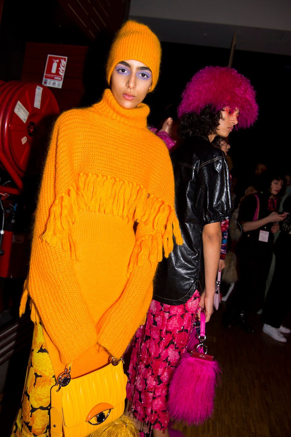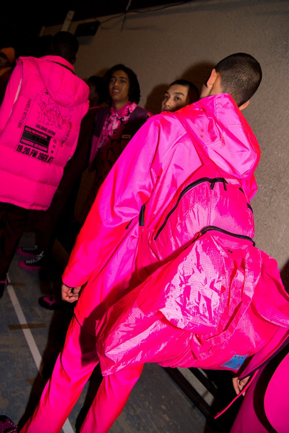 Kenzo speaks to the millennial and Gen-Z shopper and to the “plugged-in” – those, who consume on all forms of social media. The pair’s plays on the hiking gear worn by tourists and their professional guides in the Peruvian mountains will be retail sell-outs. The all-weather outerwear with reversible linings and detachable pockets, and those brilliant trekking boots were best. The traditional weaving and colour-ways were not only reflected in the excellent knitwear but also on the walls. Giant murals by the artist Pablo Amaringo. Bags – a big seller for the brand – came fused when a backpack met with a shopper. Clever stuff.