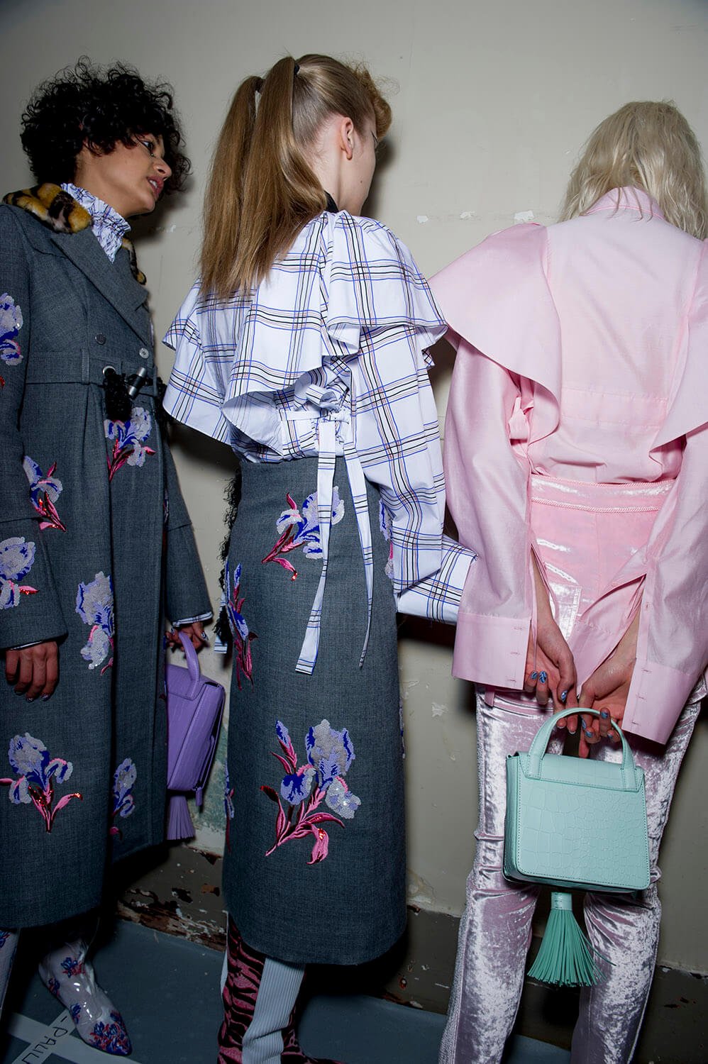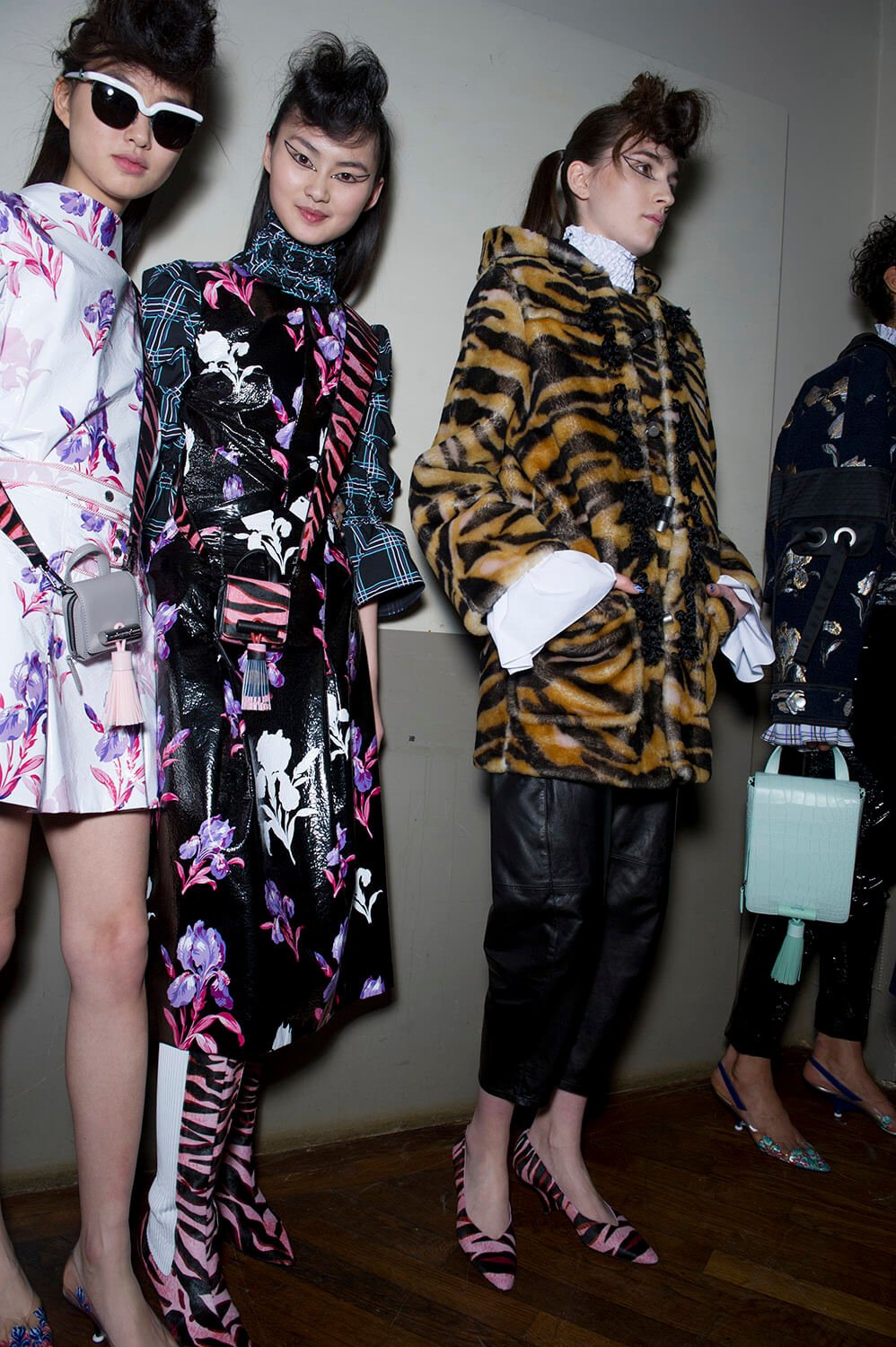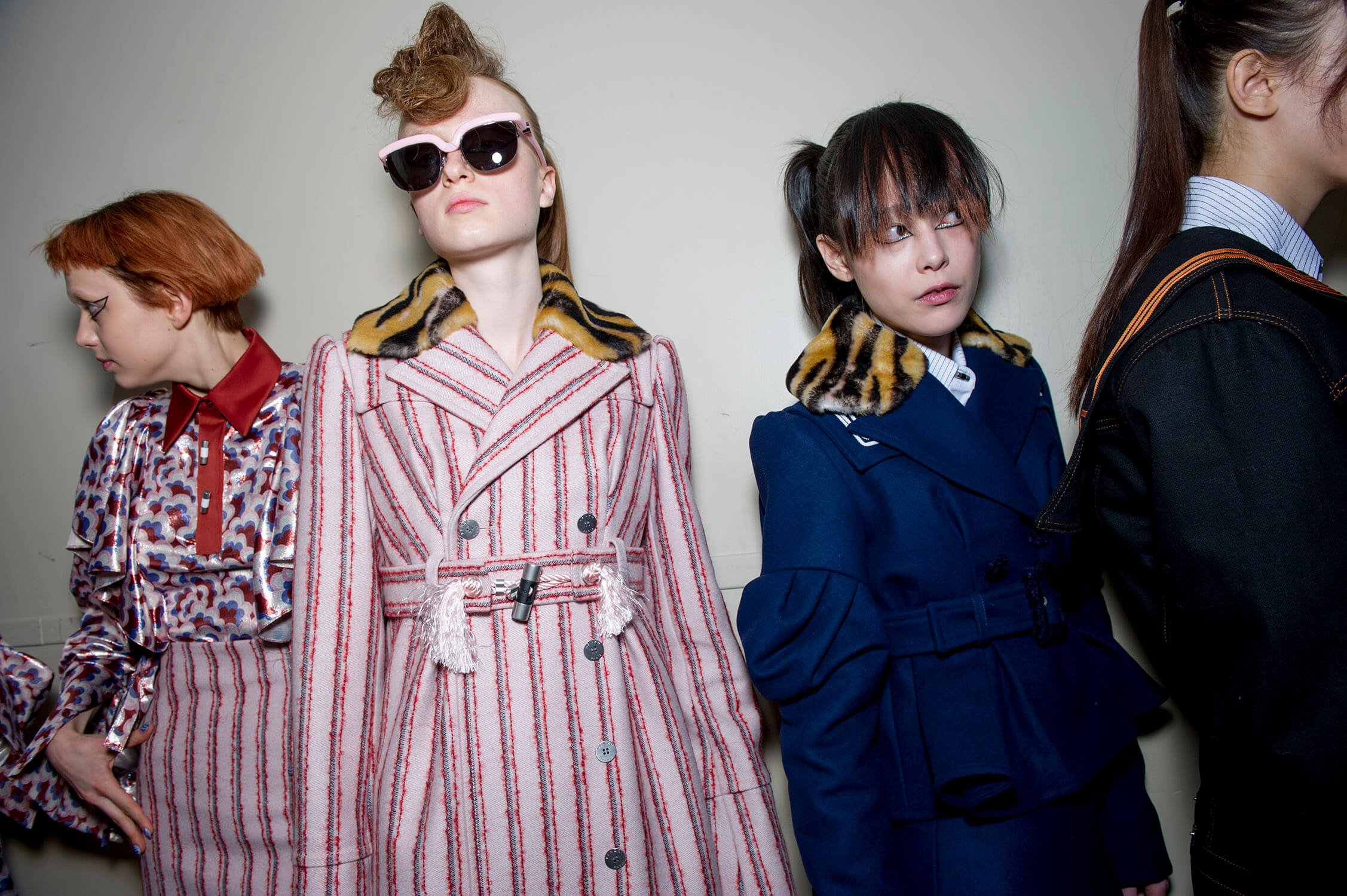 The anime outlook of Sailor Moon was an inspiration for Carol Lim and Humberto Leon at Kenzo this winter. Their woman wasn’t cartoonish, although the colours slightly were – neon pinks and yellow ramping up the contrast on crazy leopards for puff-sleeve jacquard coats and narrow-shouldered suiting. Sleeves trailed over hands, fluffing and puffing prettily, their ruffles and pleats kind of catching onto a Lolita vibe, like kids playing dress up in Harajuku. That’s where the bright florals came from, glowing under hit lights. A fun, bright, poppy and peppy outing. Made us want to jump the next flight to Tokyo.