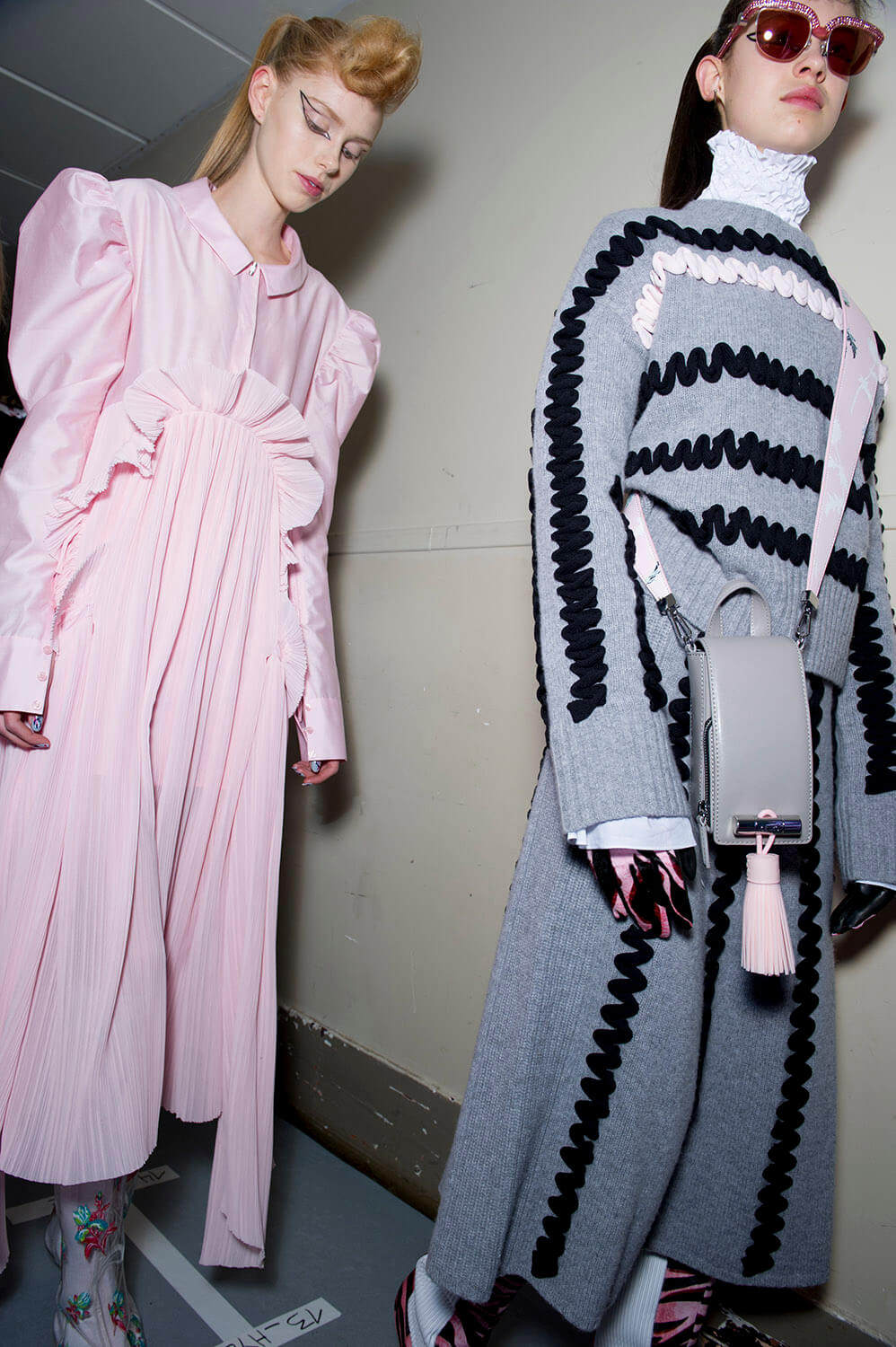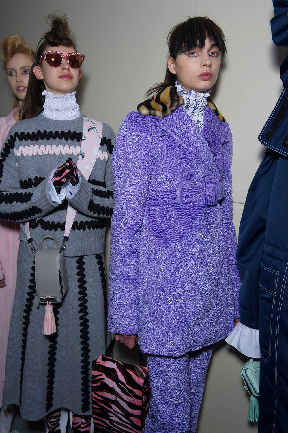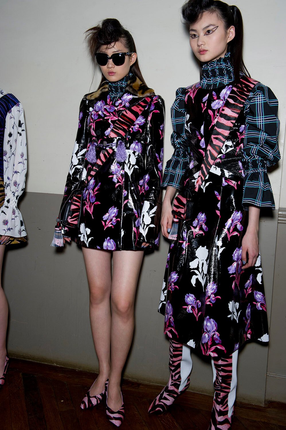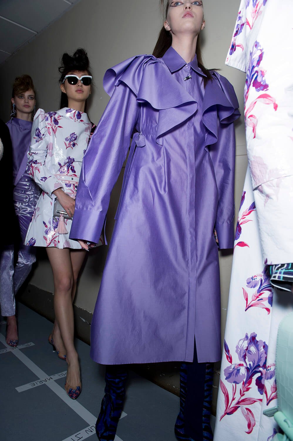 The anime outlook of Sailor Moon was an inspiration for Carol Lim and Humberto Leon at Kenzo this winter. Their woman wasn’t cartoonish, although the colours slightly were – neon pinks and yellow ramping up the contrast on crazy leopards for puff-sleeve jacquard coats and narrow-shouldered suiting. Sleeves trailed over hands, fluffing and puffing prettily, their ruffles and pleats kind of catching onto a Lolita vibe, like kids playing dress up in Harajuku. That’s where the bright florals came from, glowing under hit lights. A fun, bright, poppy and peppy outing. Made us want to jump the next flight to Tokyo.