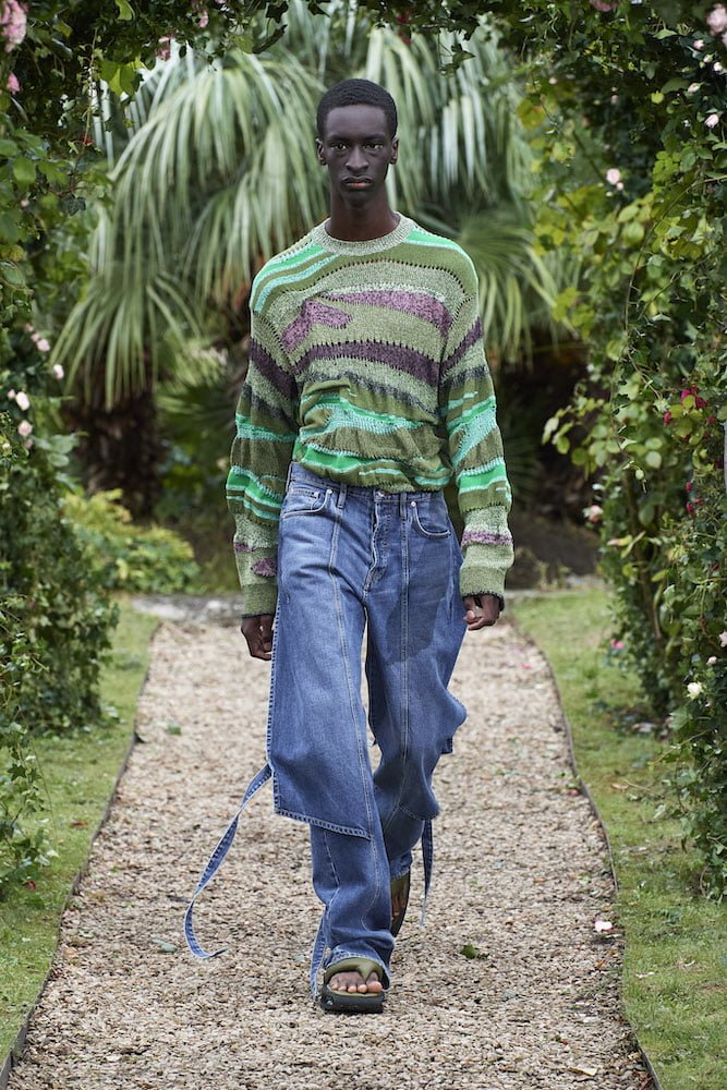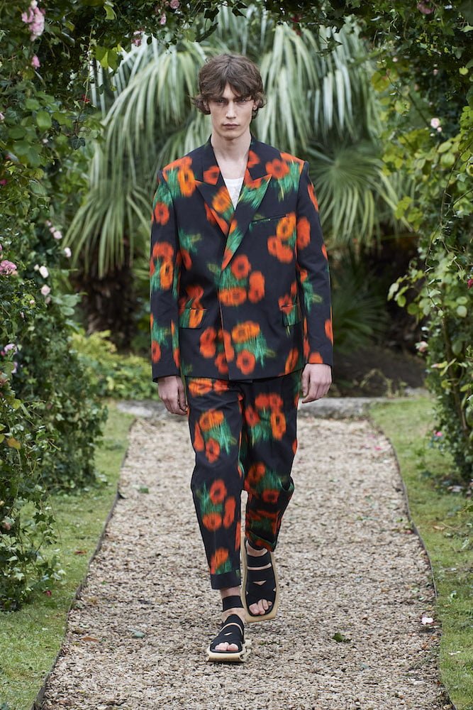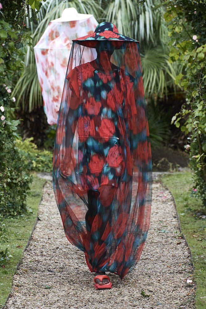 The models walked through a formal, walled garden in Paris, as the audience sheltered under umbrellas. The designer layered sheer fabrics for men and women and put a new spin on Kenzo’s famous prints. “The world is crying,” he said and modified the house’s archival poppy and hortensia prints with a weeping flower design. This designer is making a name for himself with modern clothes that you can move in, shelter beneath and express yourself with. He called his approach, a version of punk. It feels right for 2020 and beyond.