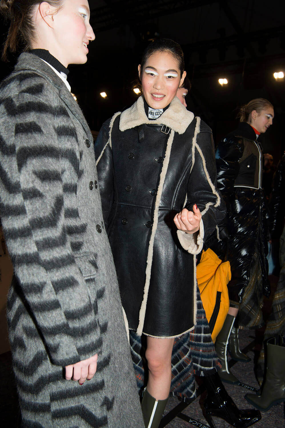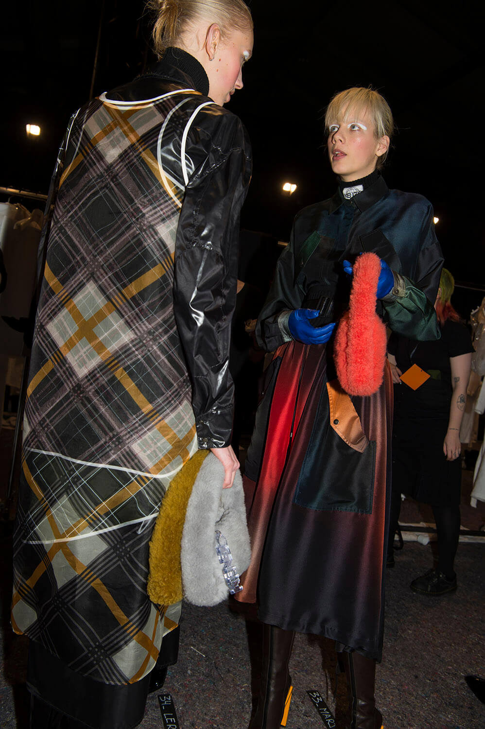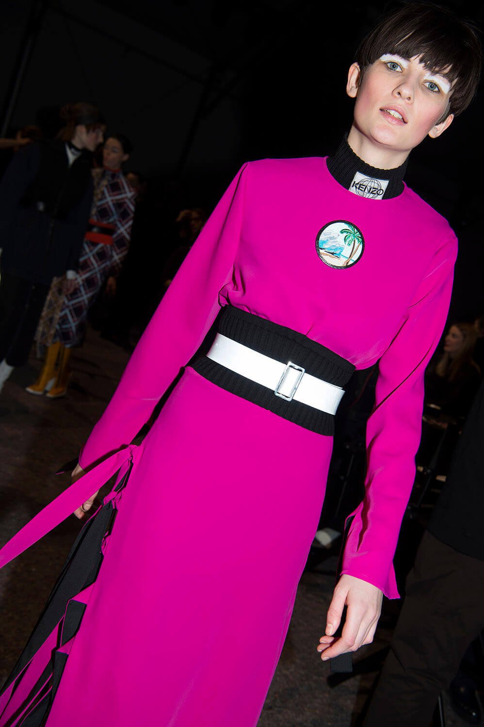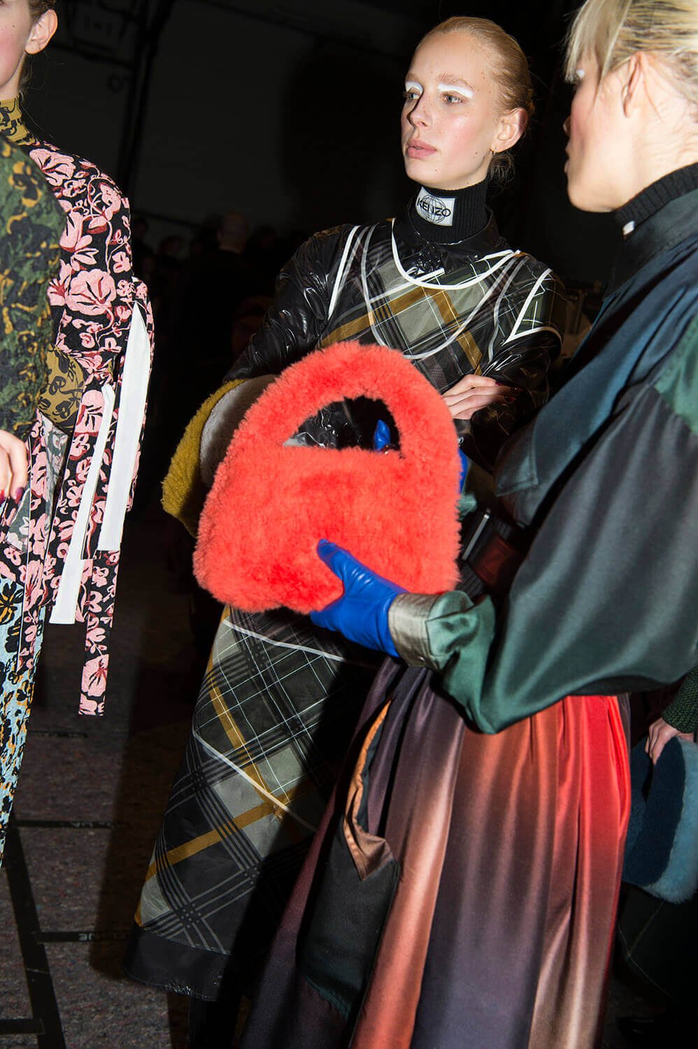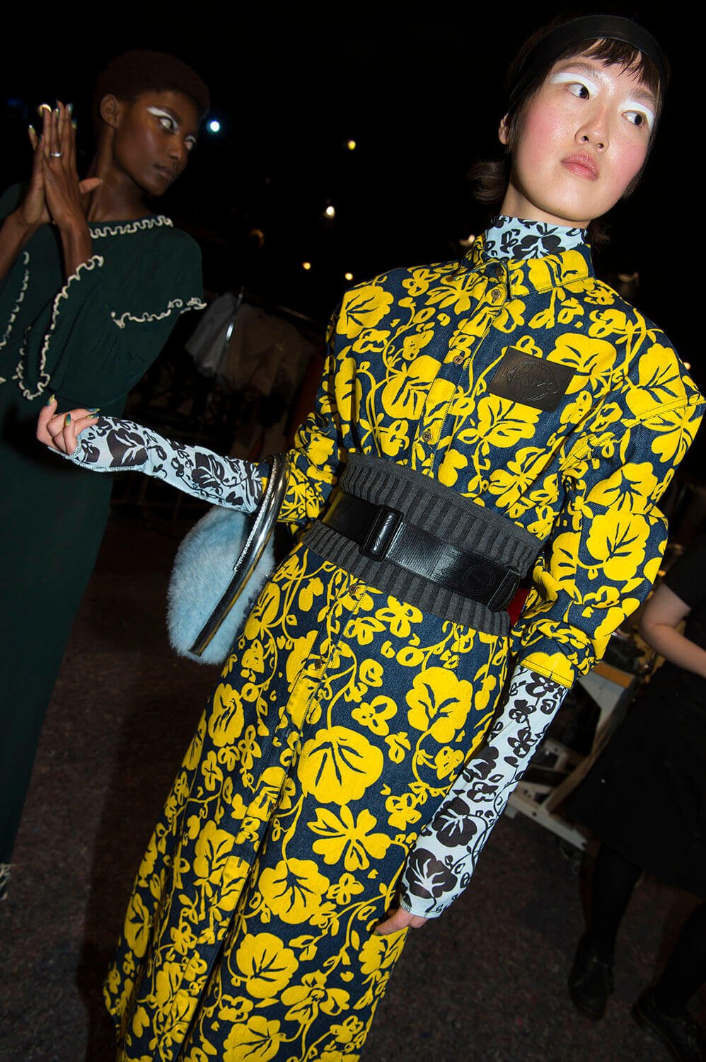 Correct me if I’m wrong, but to (possibly incorrectly) utilise a term learnt in GCSE English, is this not what one would call the breaking down of the fourth wall? The drawing back of the curtain? Because this evening, for Kenzo’s AW17 show (their first combined mens and womenswear outing) the backstage became front of stage. Line-up, hair and make-up, backstage photogs. All on show. A meta-moment. Which was a choice, apparently, made for sustainability purposes in association with charity Ideas For Us. Makes sense – who needs a fuck off fashion show when you have some really great clothes? And really great clothes Humberto and Carol gave us, inspired by, as the notes told us, a subculture of Arctic surfers. Which, from what we can gather, are like the normal type of surfers, but a bit colder. Point Break on ice. And a necessity, one would presume, for such cold weather based pursuits is warmth. Protection against the elements. So that became the kind of raison d’être of the collection – technical outerwear, from puffas to cinched ski jackets, anoraks (one, two, three’s a trend) and heavy snowboard-style boots. Knitwear that extended over the head, balaclava style. But all enlivened with that sort of haze of hippie day-glo surfer – long degrade jumpers, floral Hawaiian prints, harlequin diamonds. A zingy colour palette of orange, lemon yellow and glacier blue. It was rad. And, with that, our adventures in the land of menswear end come to an end for another season. It’s been a blast. Over and out…