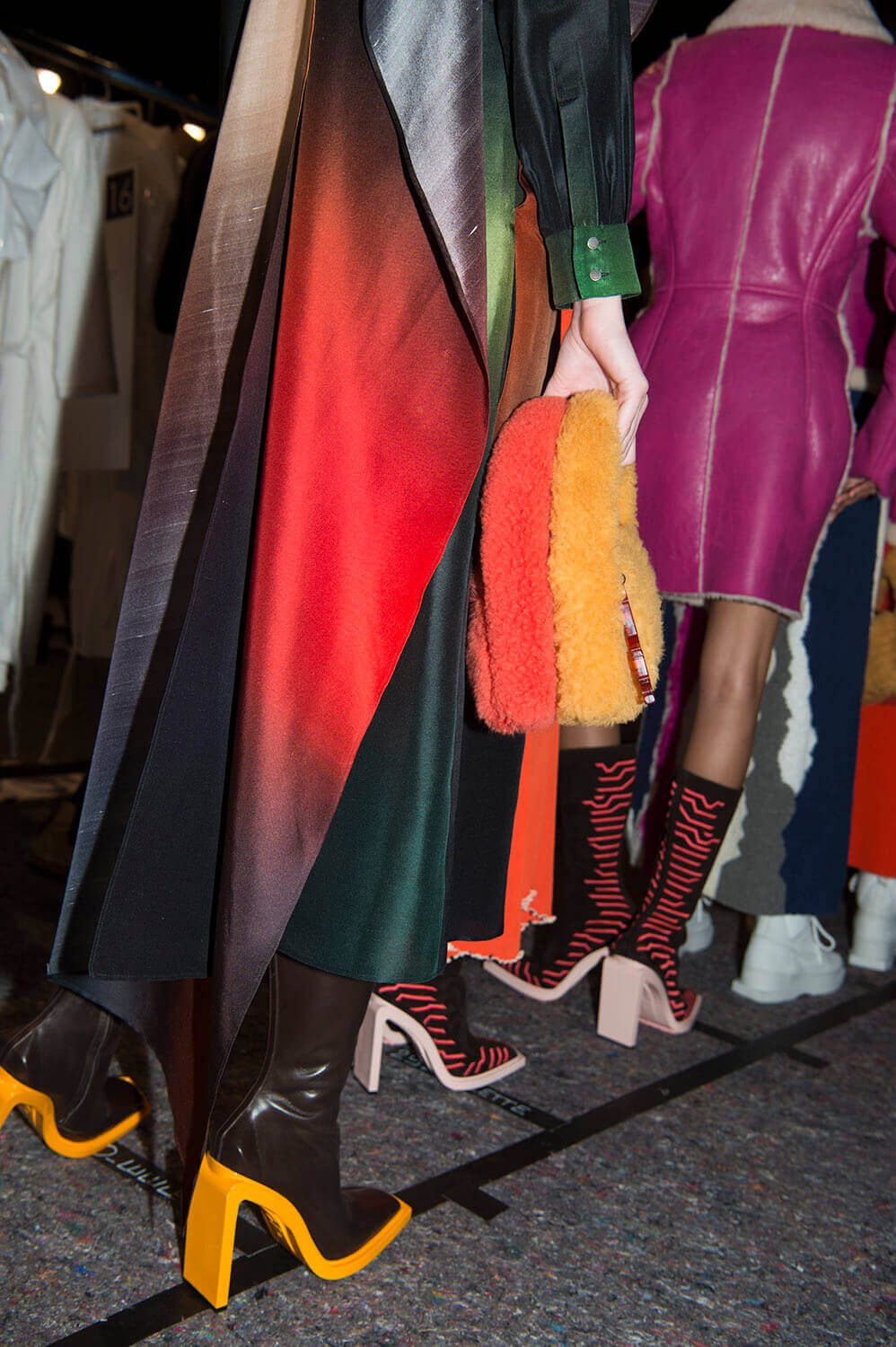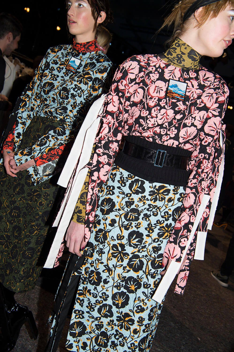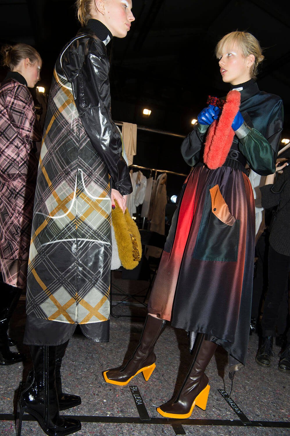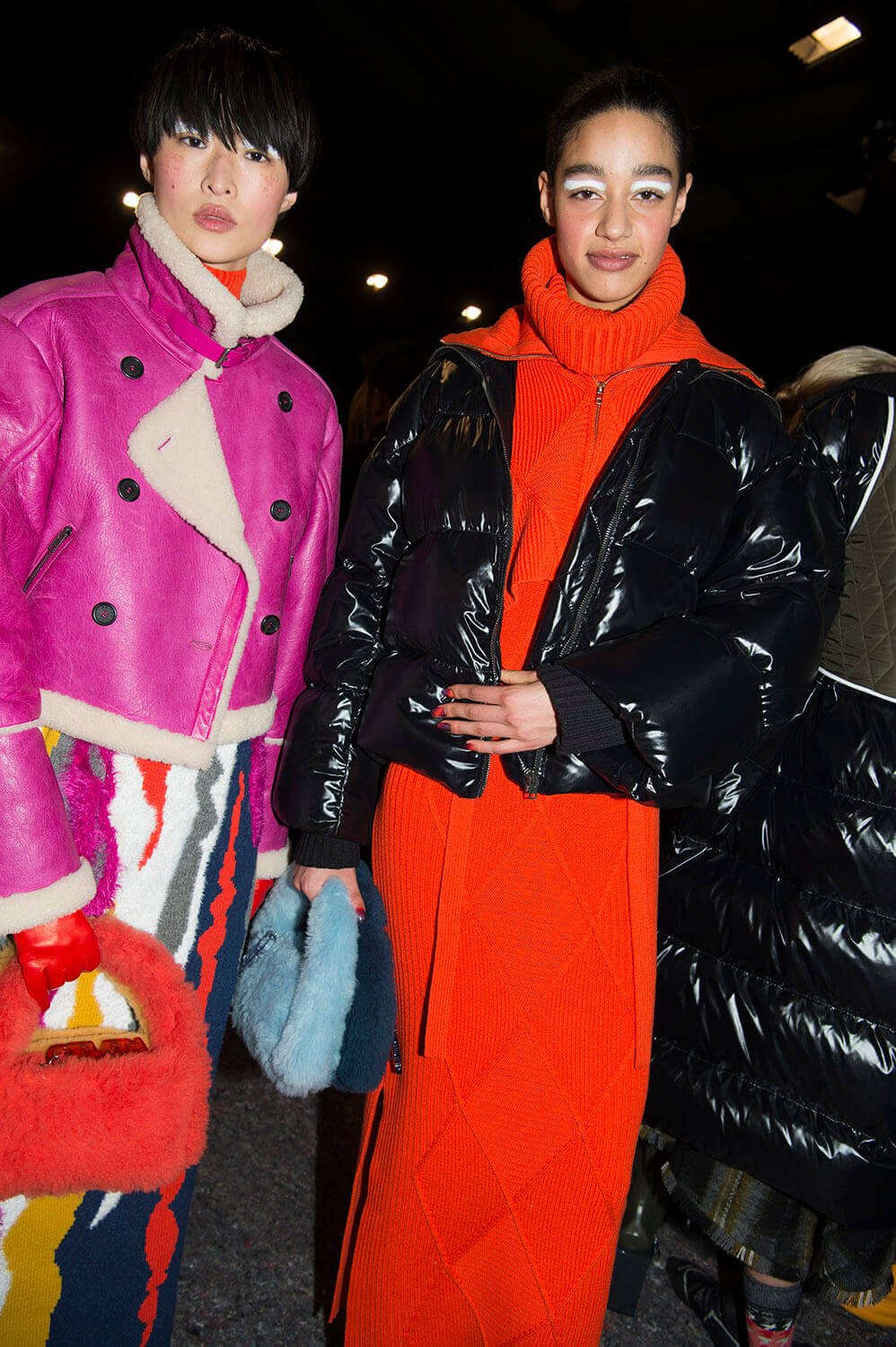 Correct me if I’m wrong, but to (possibly incorrectly) utilise a term learnt in GCSE English, is this not what one would call the breaking down of the fourth wall? The drawing back of the curtain? Because this evening, for Kenzo’s AW17 show (their first combined mens and womenswear outing) the backstage became front of stage. Line-up, hair and make-up, backstage photogs. All on show. A meta-moment. Which was a choice, apparently, made for sustainability purposes in association with charity Ideas For Us. Makes sense – who needs a fuck off fashion show when you have some really great clothes? And really great clothes Humberto and Carol gave us, inspired by, as the notes told us, a subculture of Arctic surfers. Which, from what we can gather, are like the normal type of surfers, but a bit colder. Point Break on ice. And a necessity, one would presume, for such cold weather based pursuits is warmth. Protection against the elements. So that became the kind of raison d’être of the collection – technical outerwear, from puffas to cinched ski jackets, anoraks (one, two, three’s a trend) and heavy snowboard-style boots. Knitwear that extended over the head, balaclava style. But all enlivened with that sort of haze of hippie day-glo surfer – long degrade jumpers, floral Hawaiian prints, harlequin diamonds. A zingy colour palette of orange, lemon yellow and glacier blue. It was rad. And, with that, our adventures in the land of menswear end come to an end for another season. It’s been a blast. Over and out…