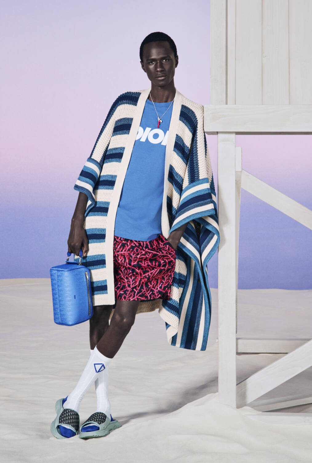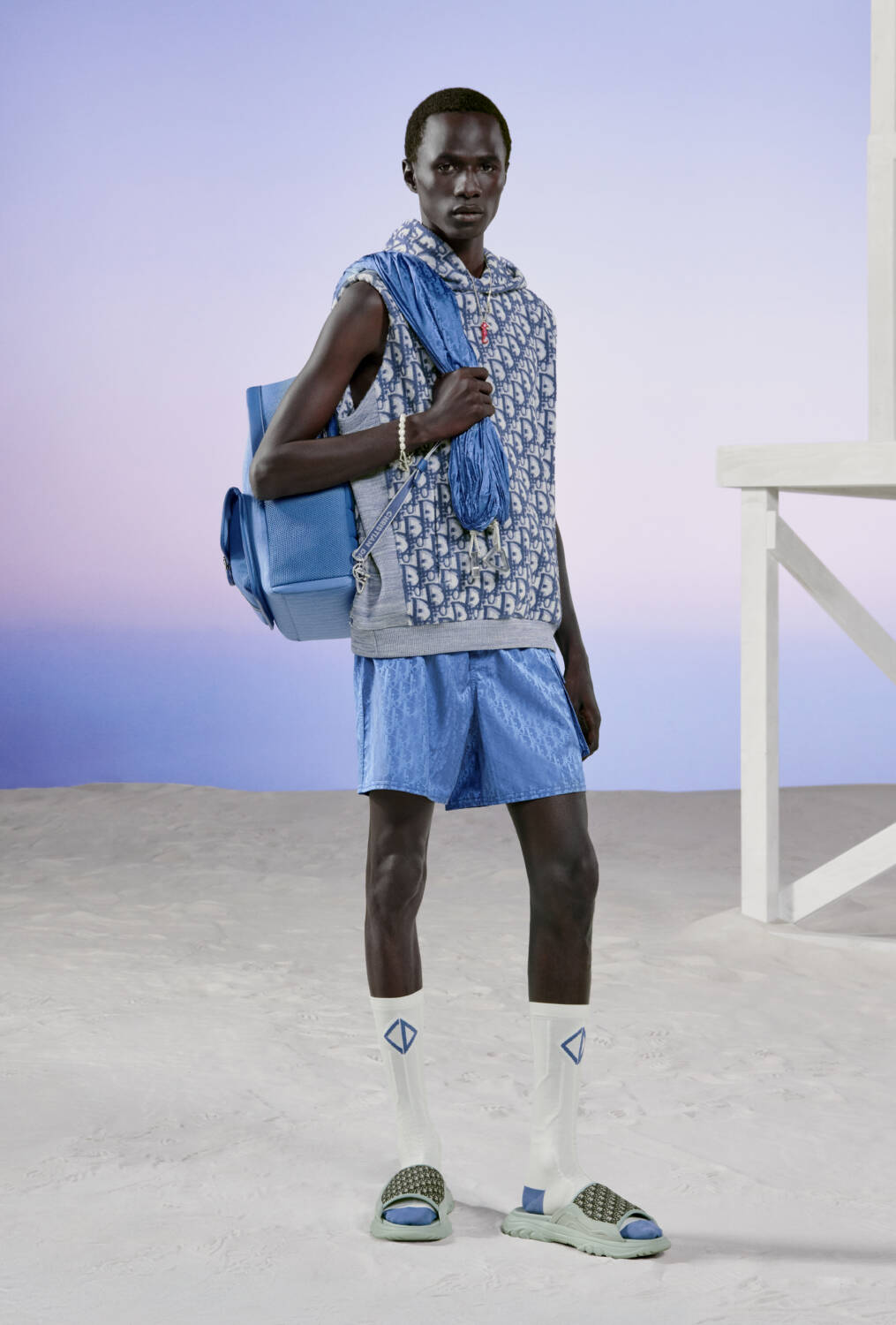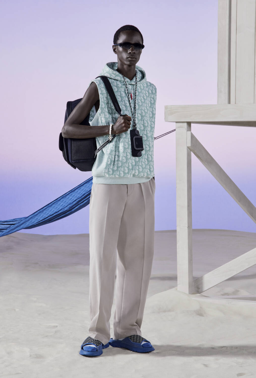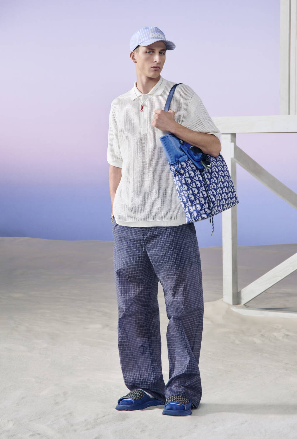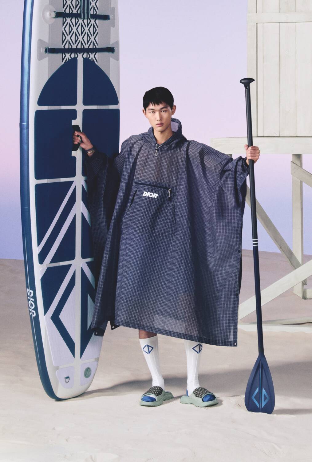 The link-up, which focuses on transforming ocean plastics into luxury fabrics for Fall 2024, features a selection of menswear in mineral from aqua blues to seafoam greens with pops of white, grey and red colourways this time around – ideal for lazy days spent lounging at the beach…especially considering there’s a Dior oblique monogram hammock on offer. And for looking your best while you do it, you can choose from an array of casual clothes made from airy summer-ready materials including waterproof capes, T-shirts, shorts, rubber H-Town sandals and even a Bob surf board. Beach bags include the Dior 8 and the multi-wear reversible tote, great for carrying all your summer essentials.
