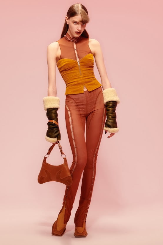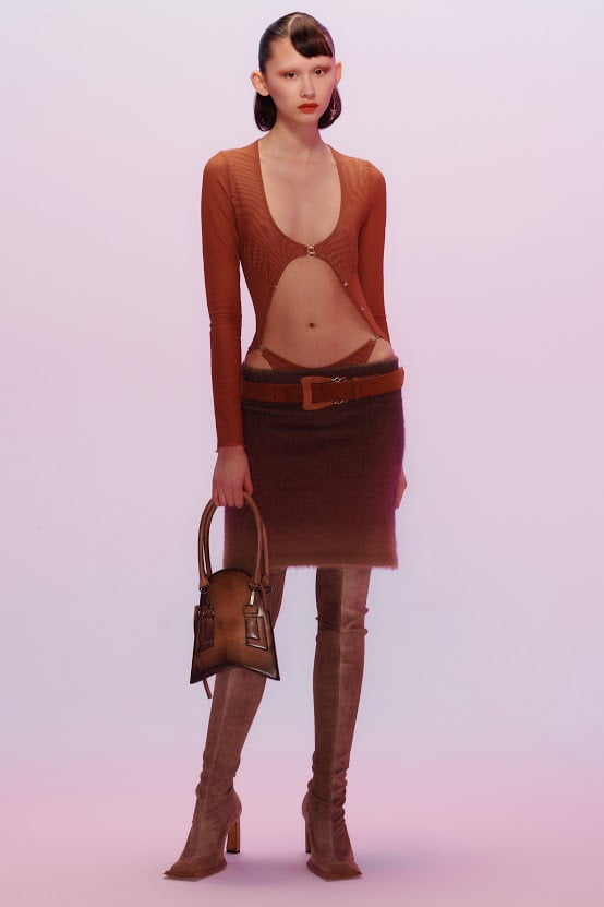 The cuts are as inventive as ever. Their new halter-strap neckline created a fresh frame for familiar erogenous zones. The way KNWLS slices and stretches fabric over the body forces a double-take. This is the label to watch.