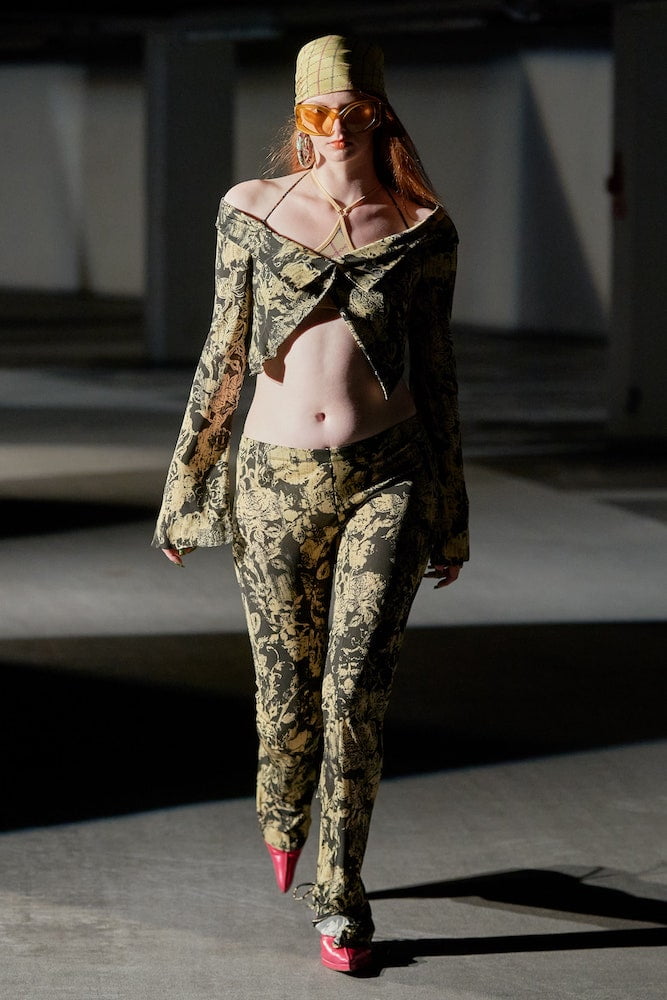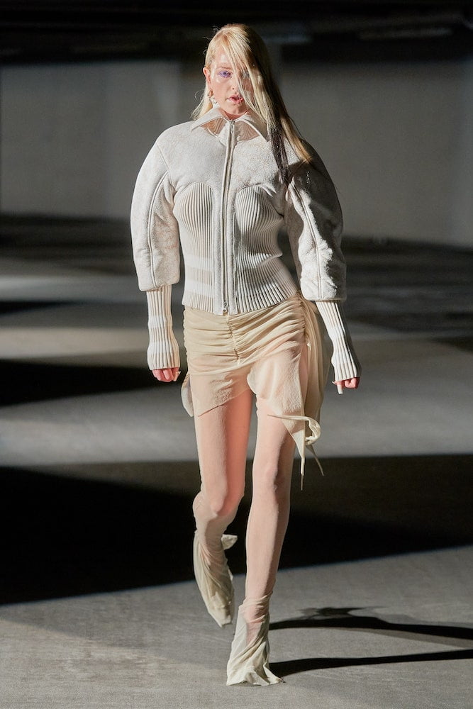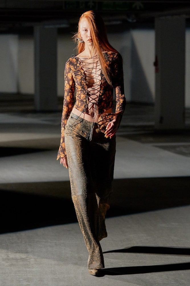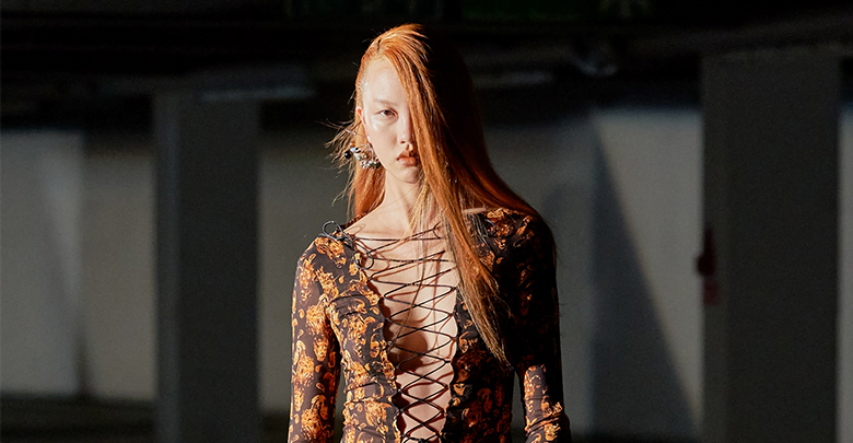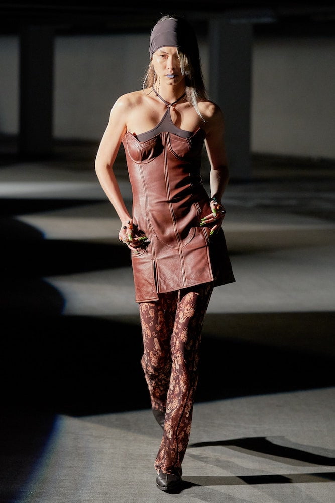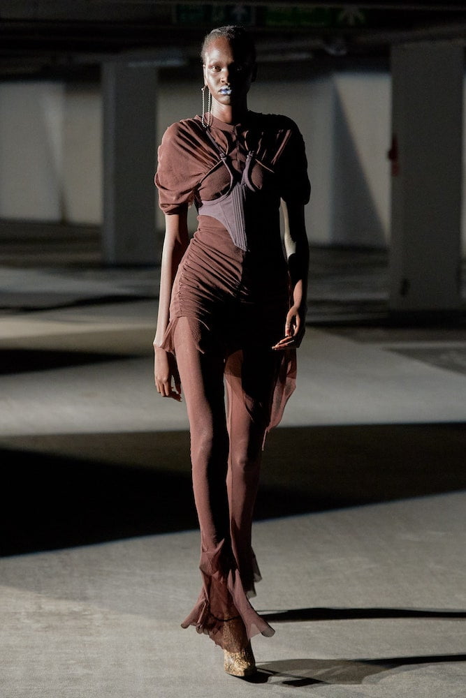 Models stalked a Central London car park in figure-hugging leather flares that looked like they’d been chewed up by a motorcycle’s tyre; handkerchief dresses which danced liked flames; and all the underwear-y elements which have made the brand a best seller on SSENSE.