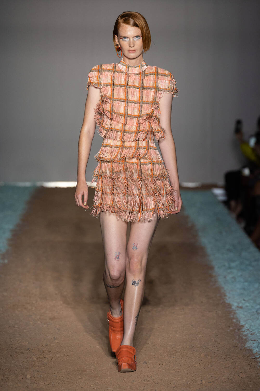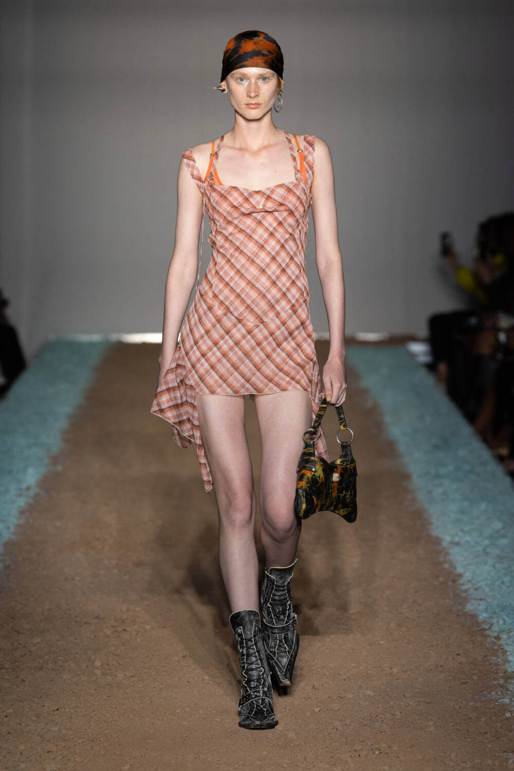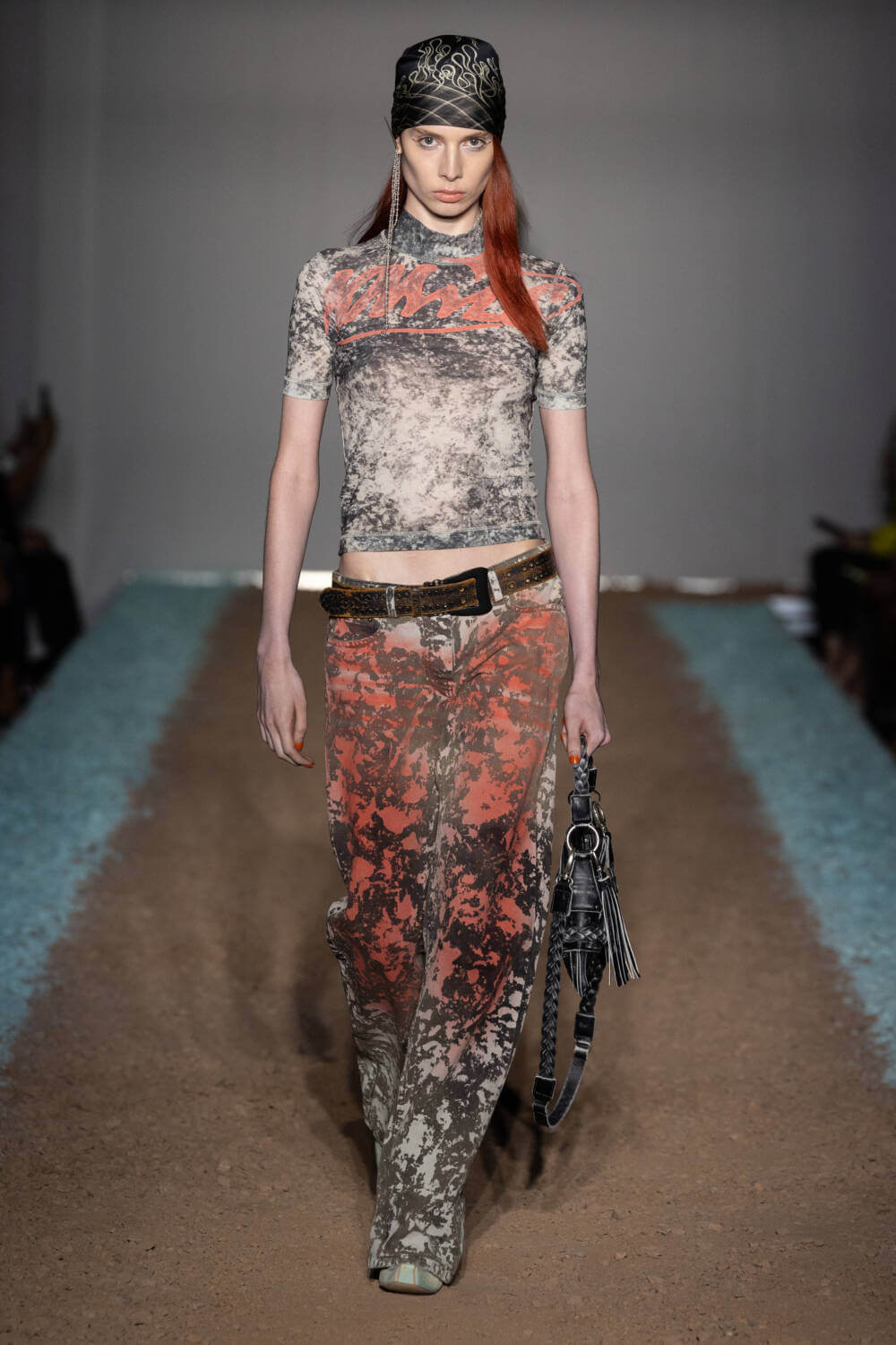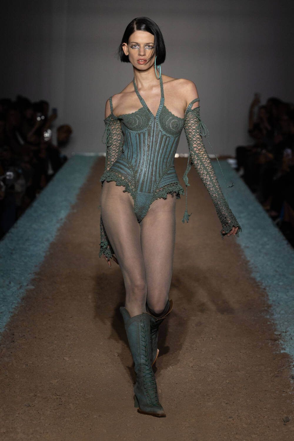 KNWLS designers Charlotte Knowles and Alexandre Arsenault are cruising firmly in the fast lane. Freshly following their stellar team-up with Jean Paul Gaultier, the design duo were back on the London Fashion Week schedule after a season away from the catwalk. This time, the KWNLS girl didn’t just have a need for speed; she was a full-blown petrol head. She came clad in the brand’s armour-like corsets, rustic-hued bodysuits and tye-dye T-shirts and skin-tight trousers that looked like they’d been baked under the intense sun. The brand has a fierce, global following, who will undoubtedly be won over with this season’s cracked leather jackets with “quarter-back shoulders”, as well as the brand’s Fang and Razr bags. It wasn’t all pedal to the metal, though. A black wrap-around evening dress, worn by Mia Khalifa, proved the brand’s prowess for high-octane fashion can be met with more traditionally glamorous wears, too. The KNWLS universe continues to expand.