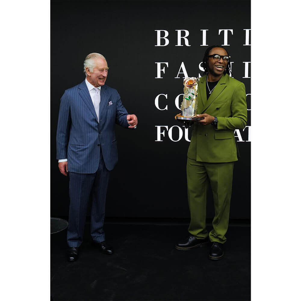 The award is always presented by a senior member of the Royal Family, but so soon after his coronation, it was rather surprising that the King took part. Yet, having launched London’s inaugural menswear fashion week in June 2012 at St James’ Palace and maintaining longstanding ties with the Campaign for Wool and launched the Terra Carta to place sustainability at the heart of the private sector, he has long been involved with the British fashion industry – unlike his mother Queen Elizabeth II who hadn’t attended a fashion show until 2018.