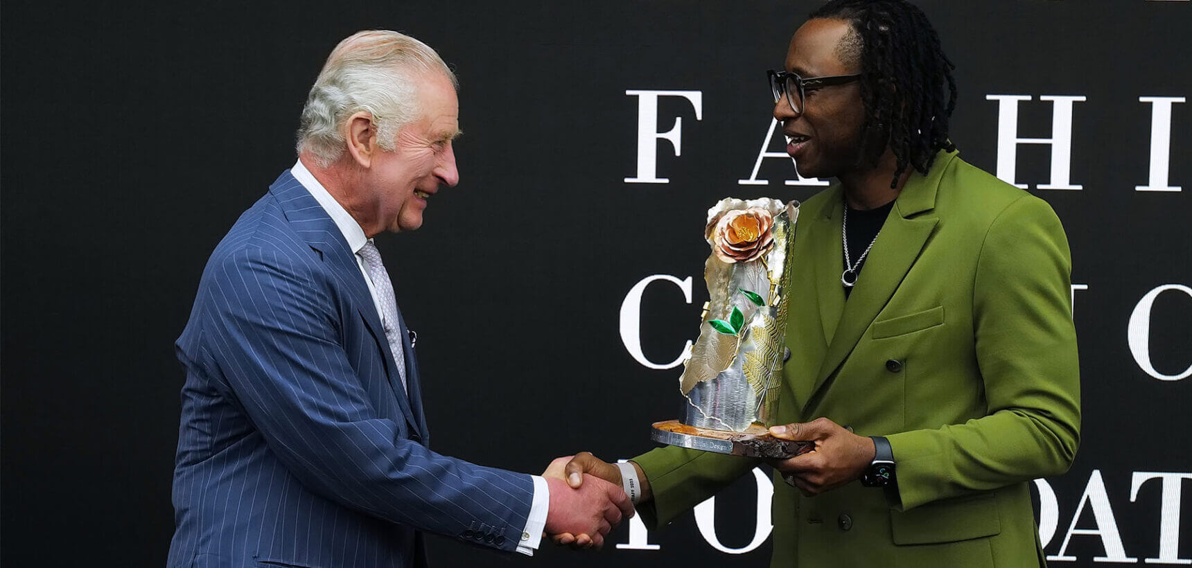 There were tears of joy erupting on the Strand earlier today as London-based brand Labrum, founded in 2014 by Foday Dumbuya, was announced as the recipient of this year’s Queen Elizabeth II Award for British Design. Hailing from Sierra Leone, Dumbuya’s menswear label lavishes in cultural hybridity and is lauded for its ability to bridge the gap between Western and African culture – looking to the designer’s own transnational youth across Freetown, Sierra Leone, London and Cyprus to inform his collections. And who better to hand Dumbaya his gong than his Majesty King Charles III at the brand’s home base, 180 Studios – where the British Fashion Council (BFC) also welcomed Queen Elizabeth II to launch the award in 2018.