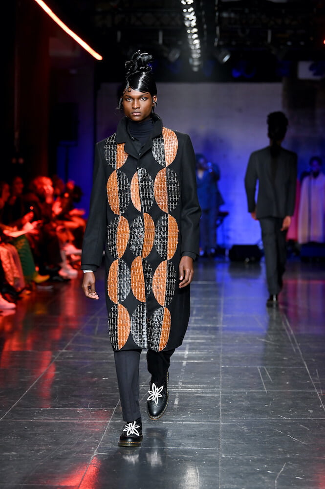 Channelling Labrum’s tagline, “Designed by an immigrant”, its ethos and the learnings of journeys past, the AW22 collection explored the beauty of migration aiming to uplift those who face the societal limitations, complexities and nuances of the unresolved label: immigrant. Crafted in Freetown, Sierra Leone – Dumbuya’s hometown – local artisans developed the fabrics from West African cloth, bridging the gap between Western and African culture.