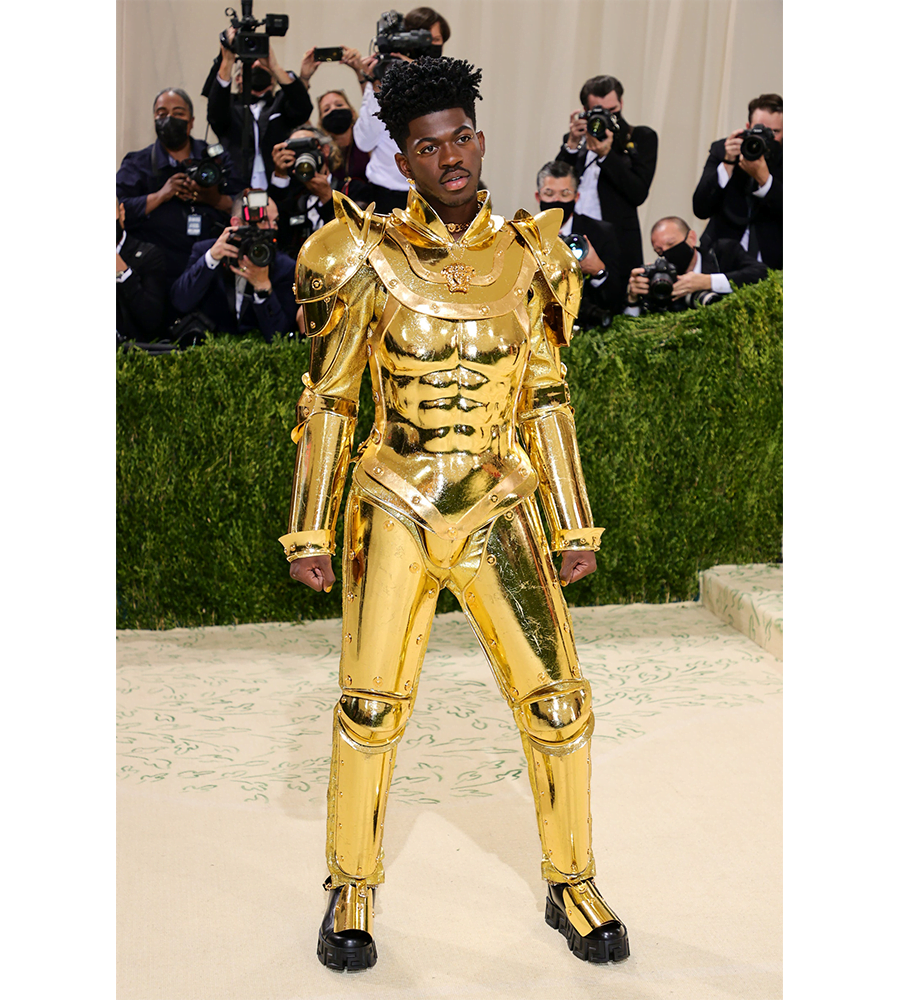 And who could count out the big hitters? Demna Gvasalia’s Balenciaga was a popular choice of the night, worn by Rihanna, Michaela Coel, and a face-less Kim Kardashian. As was Versace, who crafted a three-in-one look for global superstar Lil Nas X.
