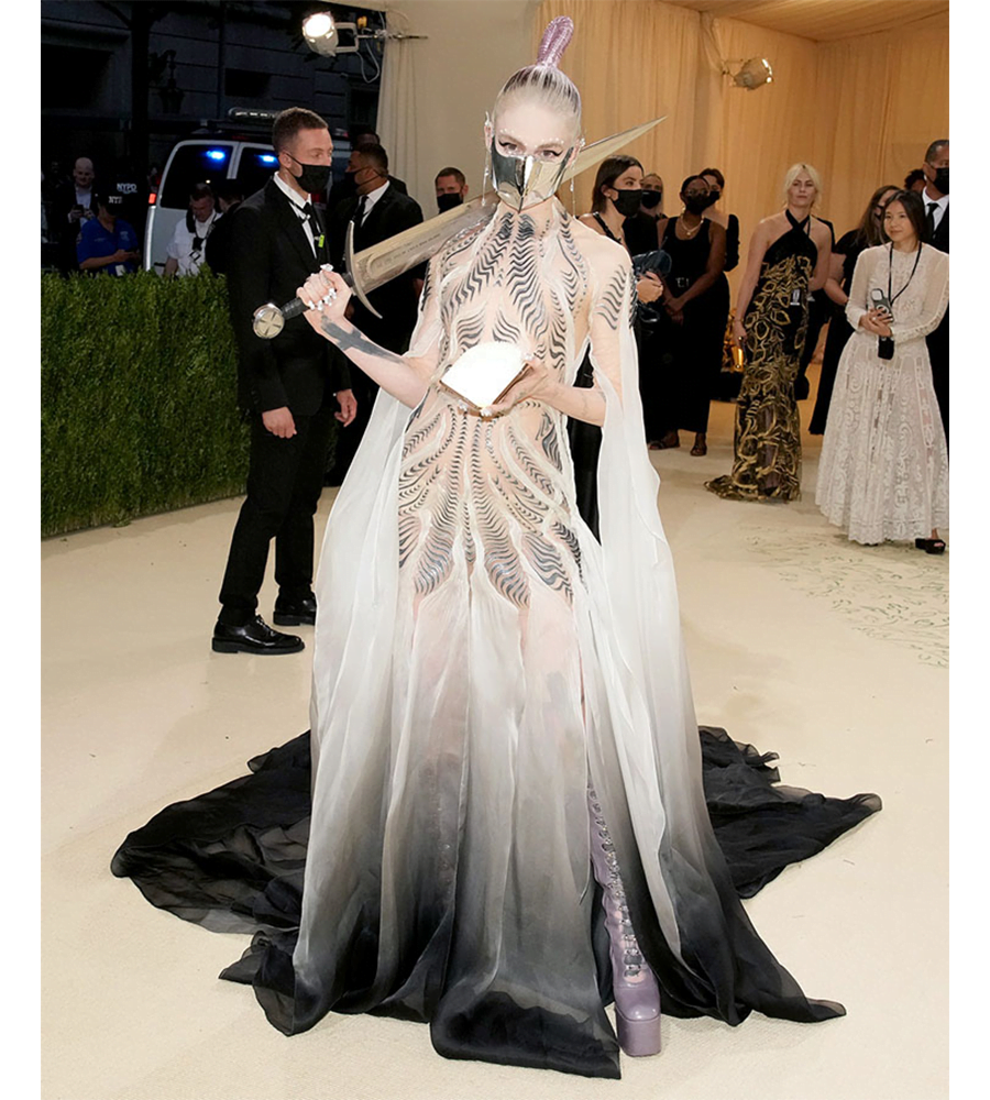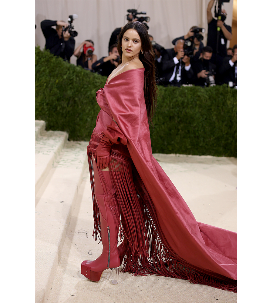 As much as last night was a celebration of the new school, American greats – from Ralph Lauren and Oscar De La Renta through to Rick Owens and Thom Browne – each provided some of the evening’s standout looks, whether it be Owens’ crimson red ensemble for Spanish singer Rosalia or Browne’s kinky get-up for Gossip Girl star Evan Mock.